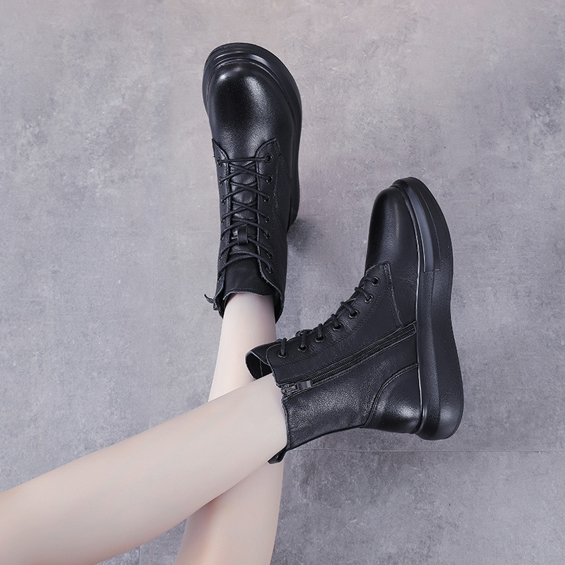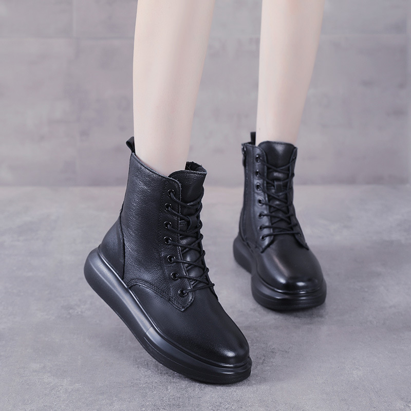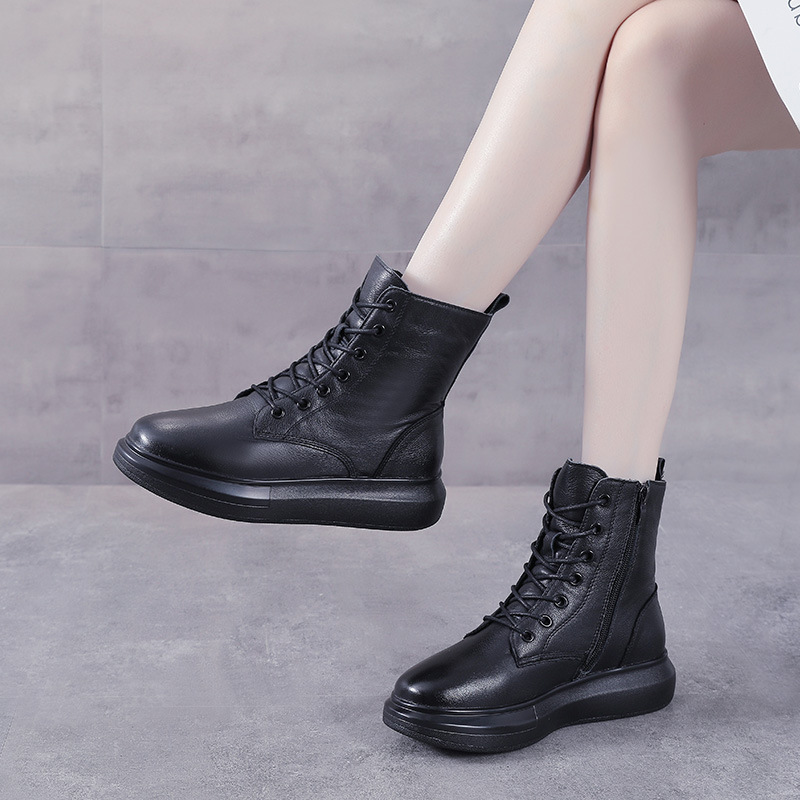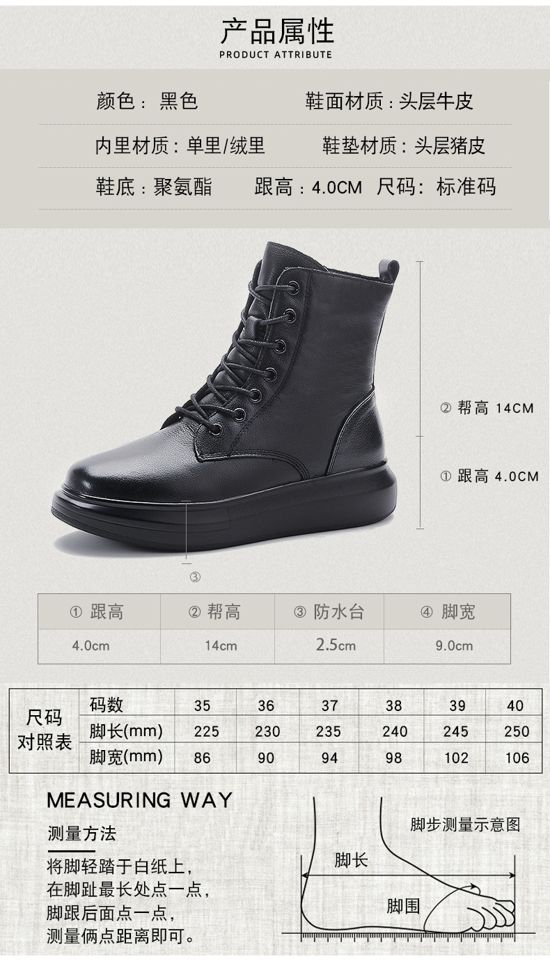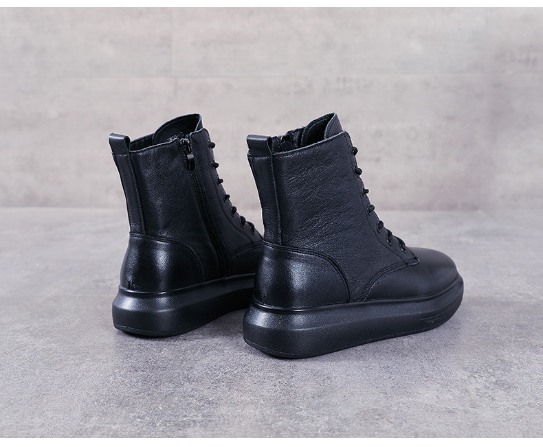 Đôi bốt này mang phong cách Anh cổ điển, dễ dàng phối với nhiều trang phục khác nhau. Sản phẩm làm từ chất da bò mềm mại, phần cổ cao và đế dày vừa phải giúp tạo dáng đứng và thoải mái. Kiểu dáng theo xu hướng mới, ôm chân tôn lên vẻ thon gọn. Bạn có thể mang cùng quần jean, váy hay quần short đều phù hợp. | Tên sản phẩm: Giày Boot Martin Nữ Chất Liệu Da Bò Đế Cao Phong Cách Hàn Quốc - Giày Dép Nữ | Mã sản phẩm: K0365 - Giá: 1.490.000đ | Mã nhà sản xuất: WEDS-G04Hình ảnh sản phẩm