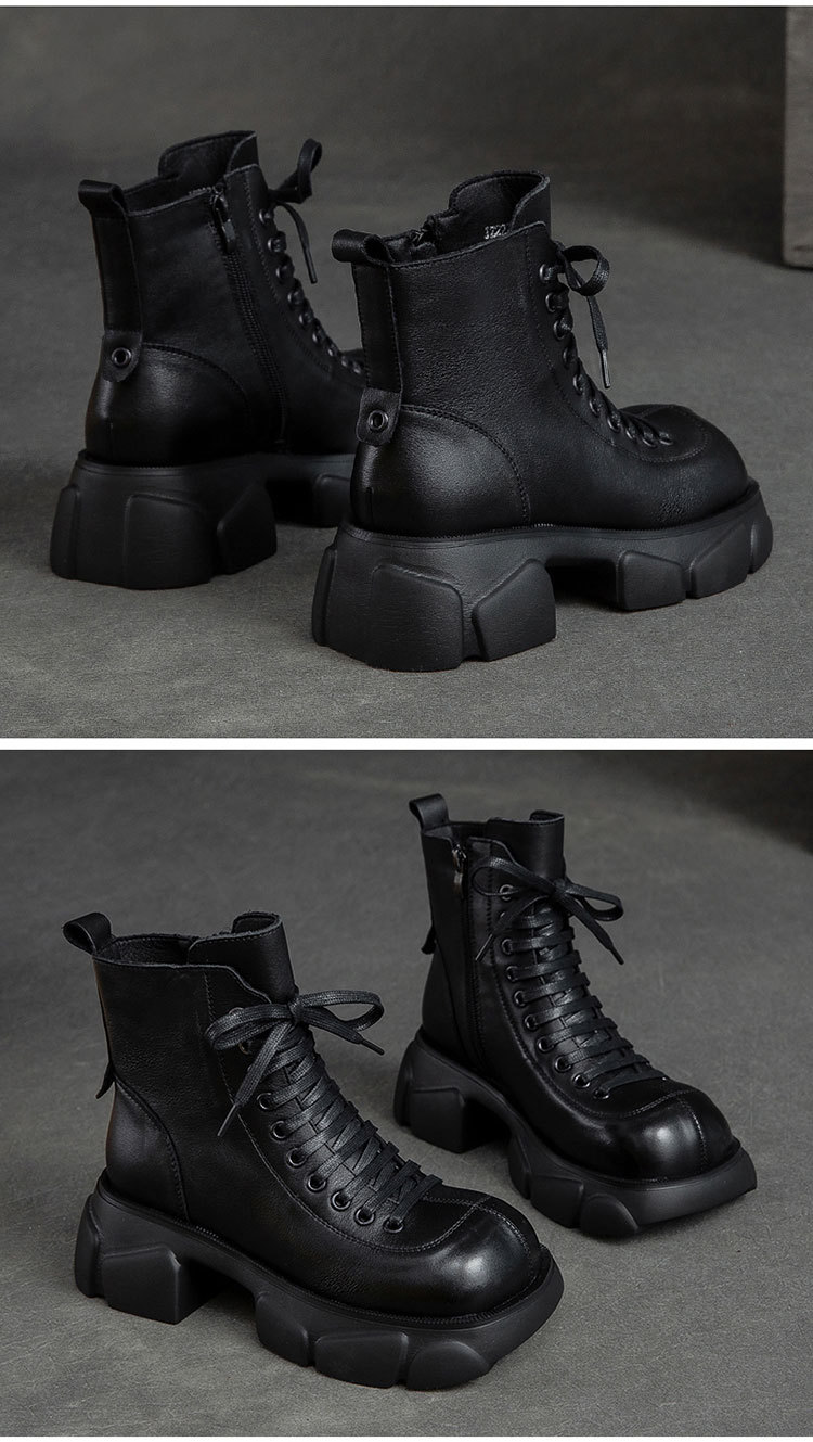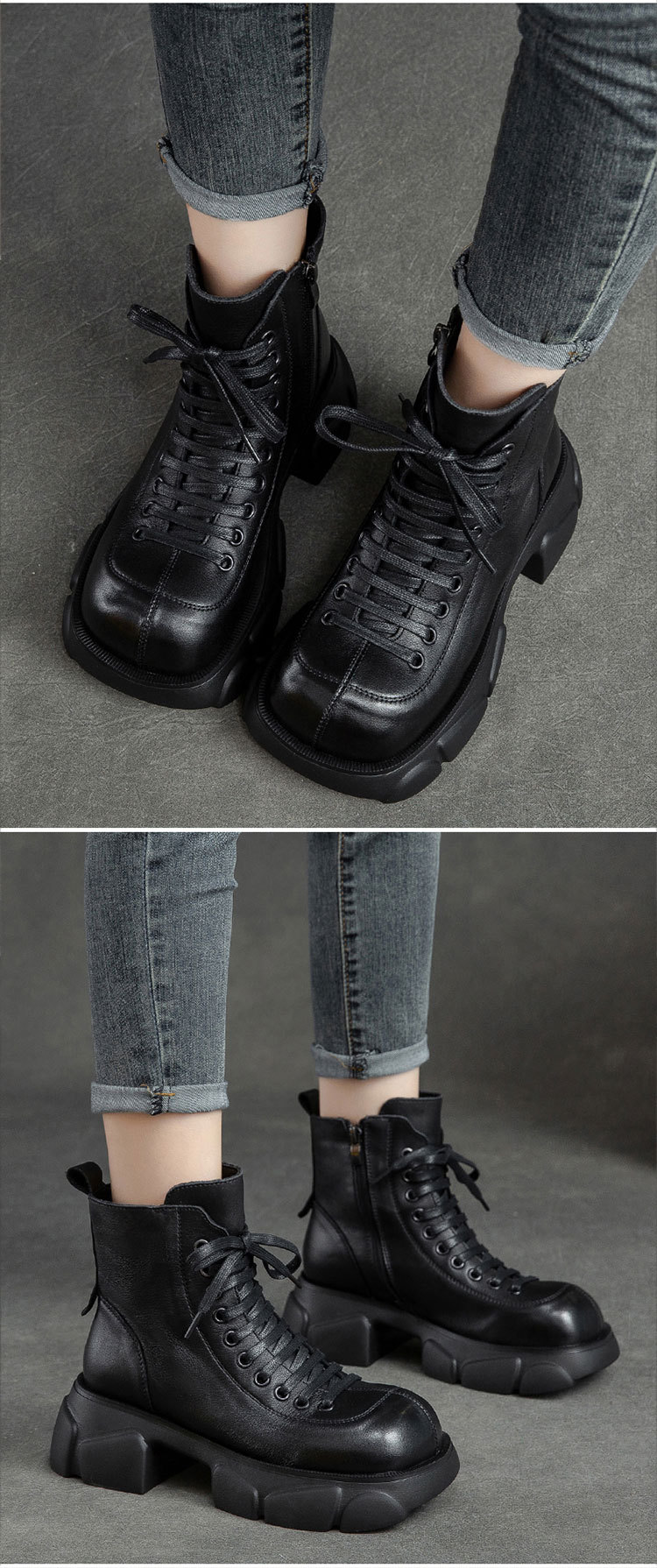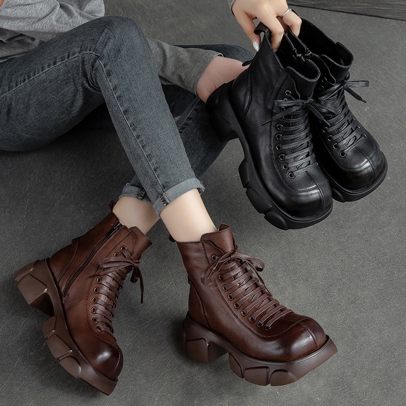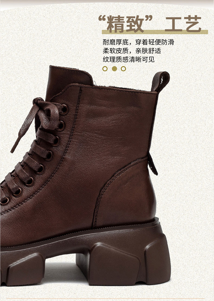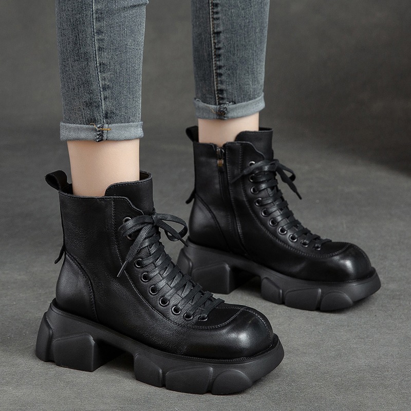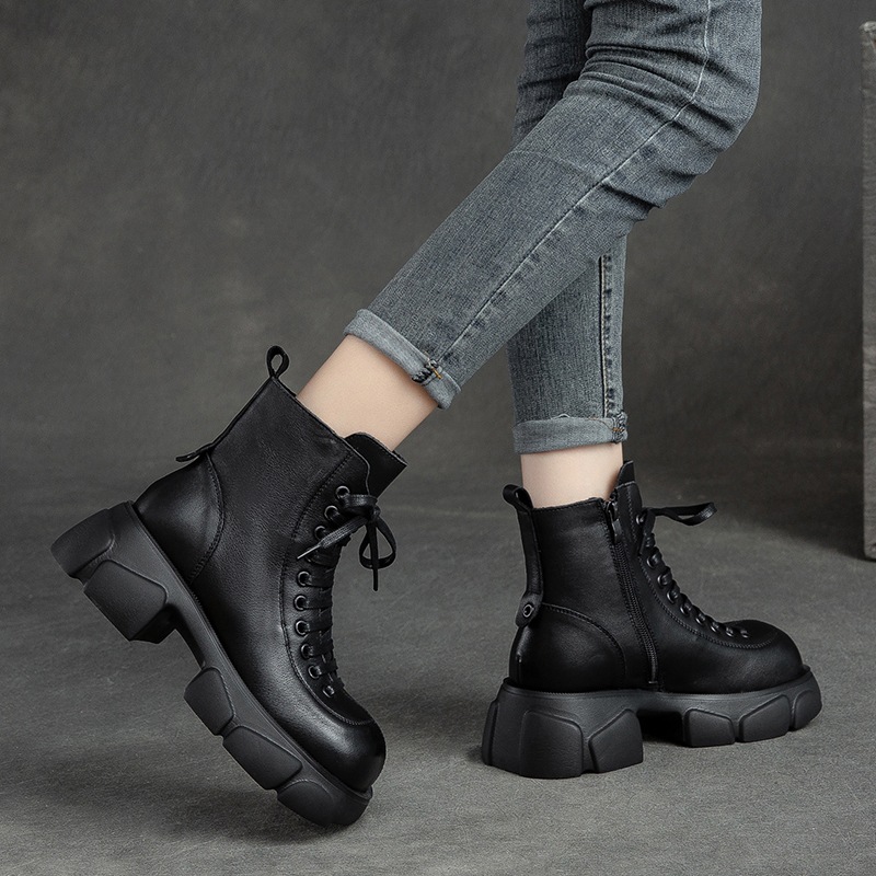Đôi bốt cổ thấp kiểu Hàn này mang phong cách hoài cổ, được làm từ chất da bò mềm mại và bền đẹp. Thiết kế cổ điển với dây buộc giúp ôm chân thoải mái, tạo cảm giác dễ chịu khi mang trong thời gian dài. Kiểu dáng dễ phối đồ, phù hợp cho nhiều hoàn cảnh khác nhau. Bạn chỉ cần buộc dây vừa vặn với chân là có thể sử dụng ngay. | Tên sản phẩm: Giày Boot Martin Nữ Chất Liệu Da Bò Phong Cách Hàn Quốc - Giày Dép Nữ | Mã sản phẩm: B1951 - Giá: 1.710.000đ | Mã nhà sản xuất: SHDU-G05Hình ảnh sản phẩm
