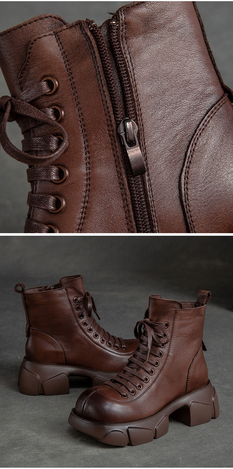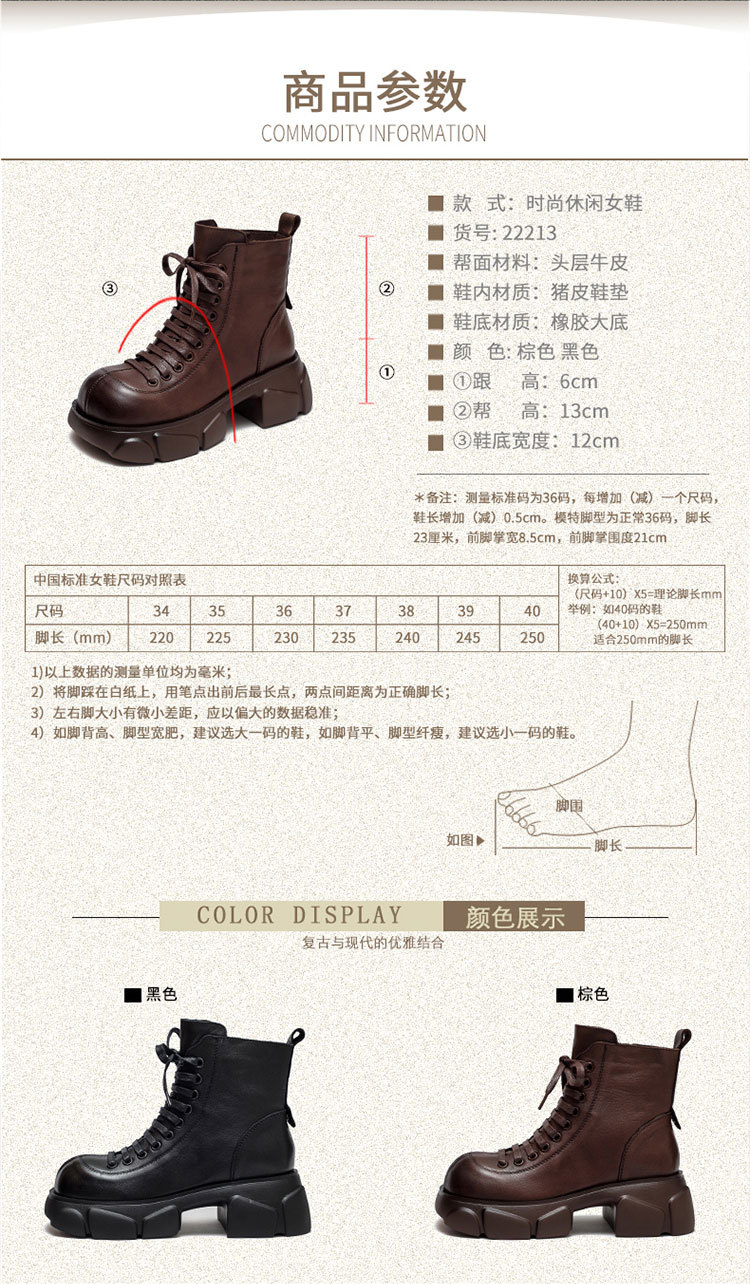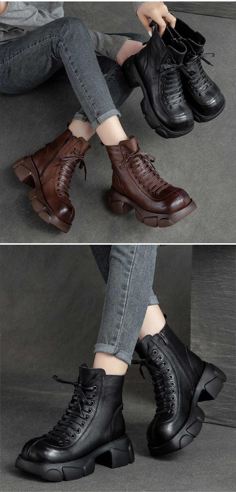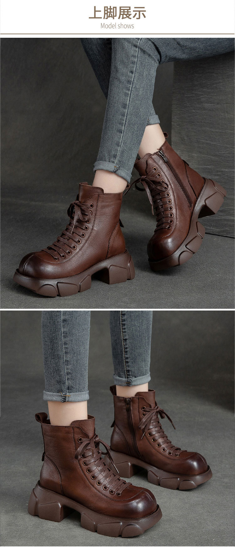Đôi bốt cổ thấp kiểu Hàn này mang phong cách hoài cổ, được làm từ chất da bò mềm mại và bền đẹp. Thiết kế cổ điển với dây buộc giúp ôm chân thoải mái, tạo cảm giác dễ chịu khi mang trong thời gian dài. Kiểu dáng dễ phối đồ, phù hợp cho nhiều hoàn cảnh khác nhau. Bạn chỉ cần buộc dây vừa vặn với chân là có thể sử dụng ngay. | Tên sản phẩm: Giày Boot Martin Nữ Chất Liệu Da Bò Phong Cách Hàn Quốc - Giày Dép Nữ | Mã sản phẩm: B1951 - Giá: 1.710.000đ | Mã nhà sản xuất: SHDU-G05Hình ảnh sản phẩm