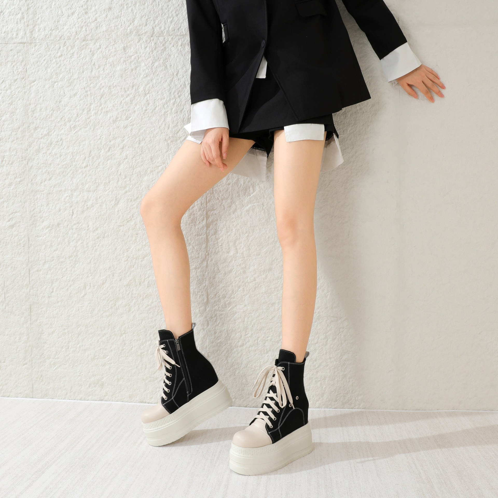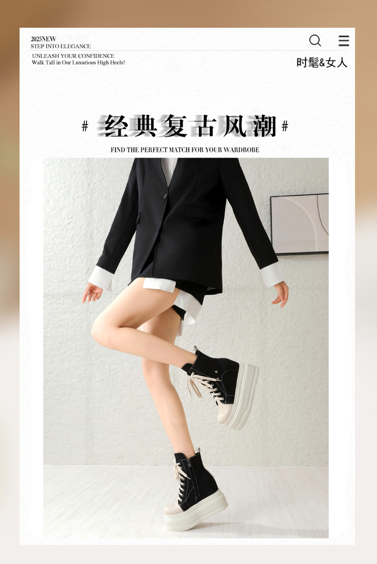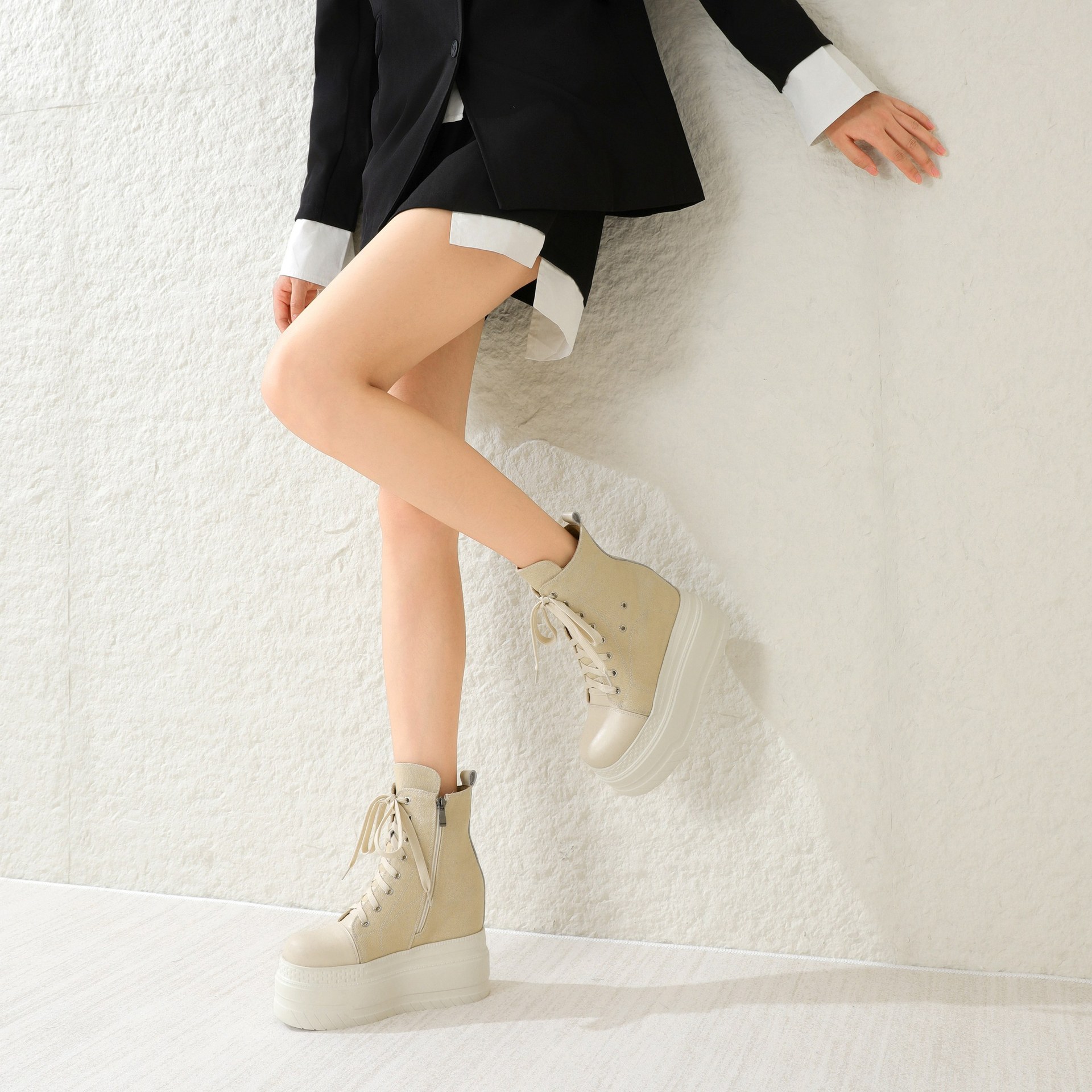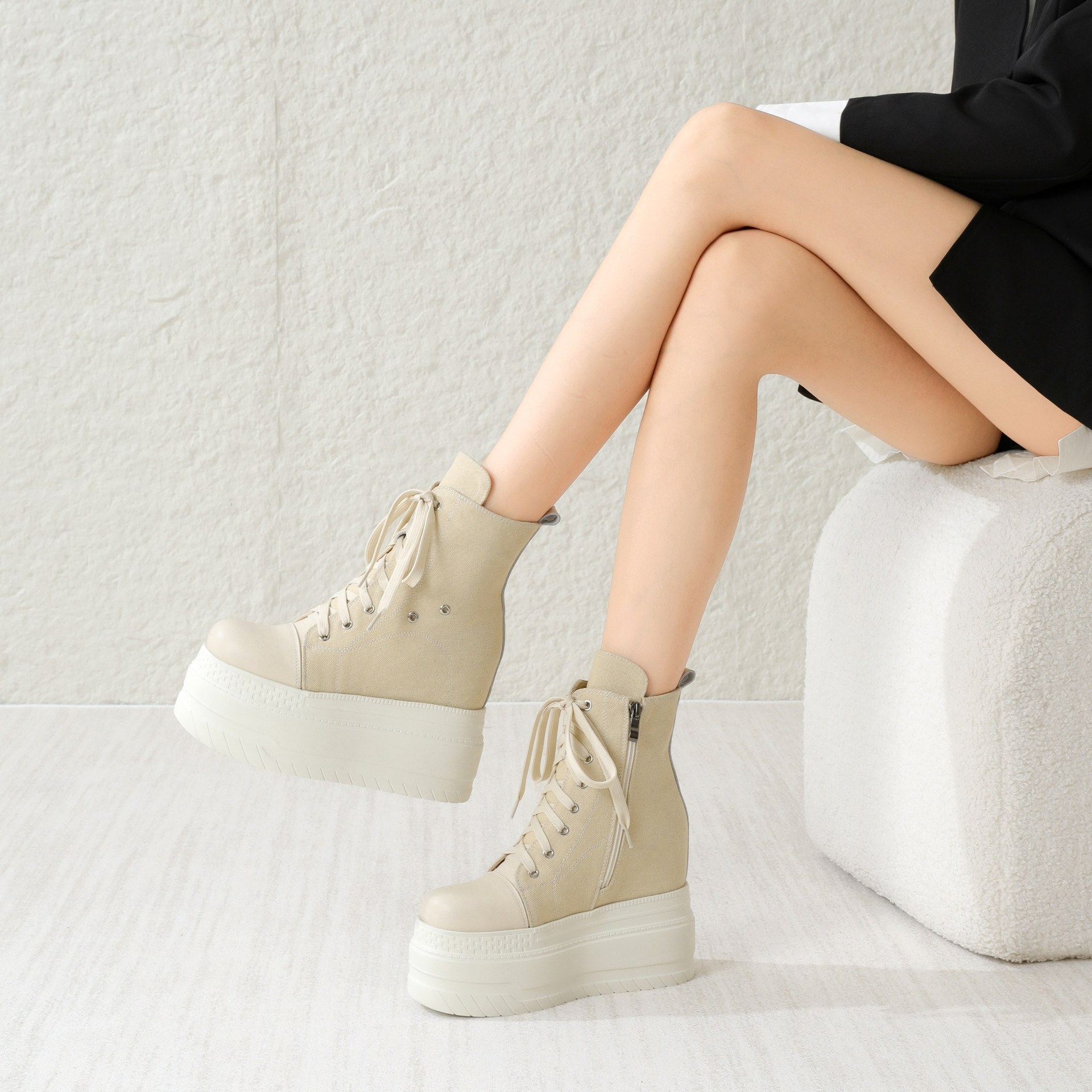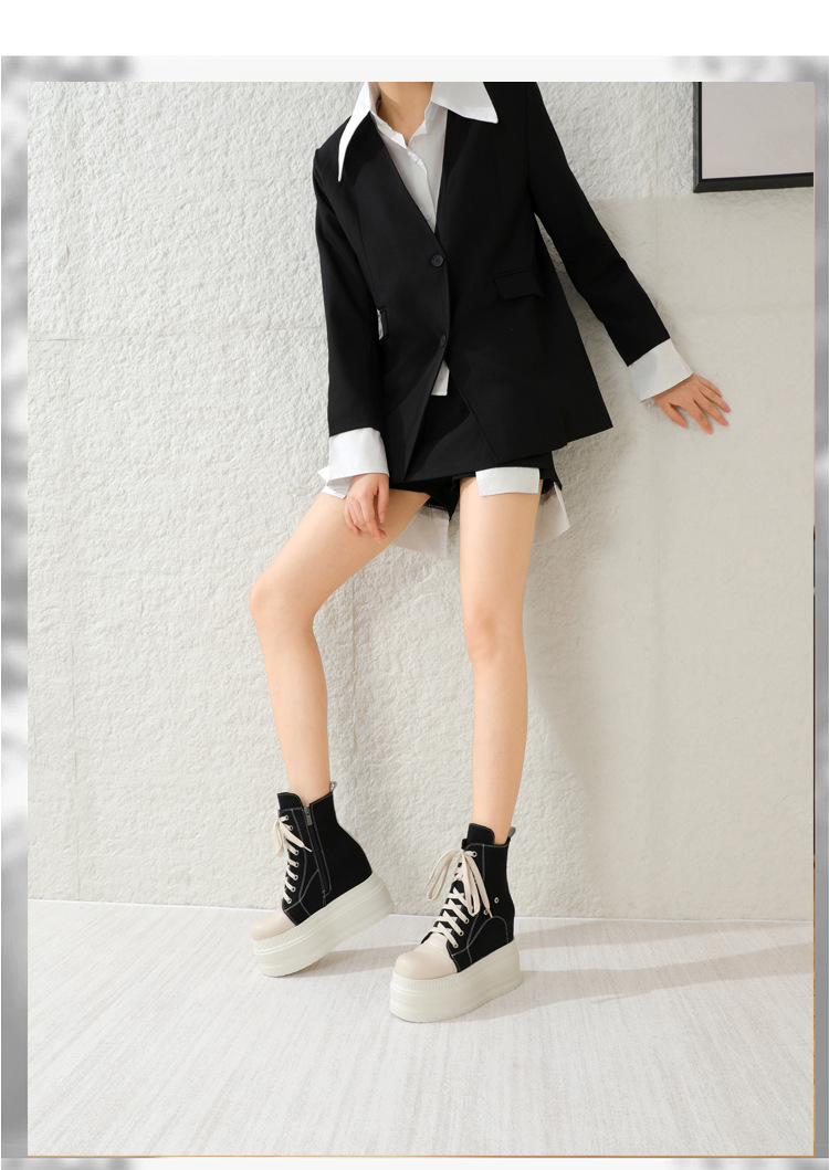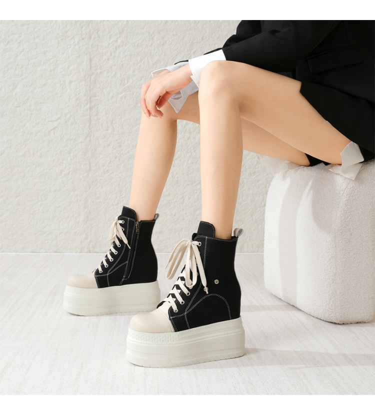 Đôi giày này có phần đế dày và cổ cao, giúp tăng chiều cao một cách tinh tế. kiểu dáng linh hoạt giữa giày bốt và giày vải, kết hợp nhiều màu sắc trên chất liệu vải bố bền chắc. Thiết kế cổ điển dễ dàng phối hợp với nhiều trang phục khác nhau như quần jeans hay váy. Sản phẩm phù hợp để mang hằng ngày, cho bạn di chuyển thoải mái mà vẫn nổi bật. | Tên sản phẩm: Giày Boot Martin Nữ Chất Liệu Vải Thô Cao 12cm Tăng Chiều Cao Đế Cao - Giày Dép Nữ | Mã sản phẩm: B4091 - Giá: 2.120.000đ | Mã nhà sản xuất: QIDNG-G05Hình ảnh sản phẩm