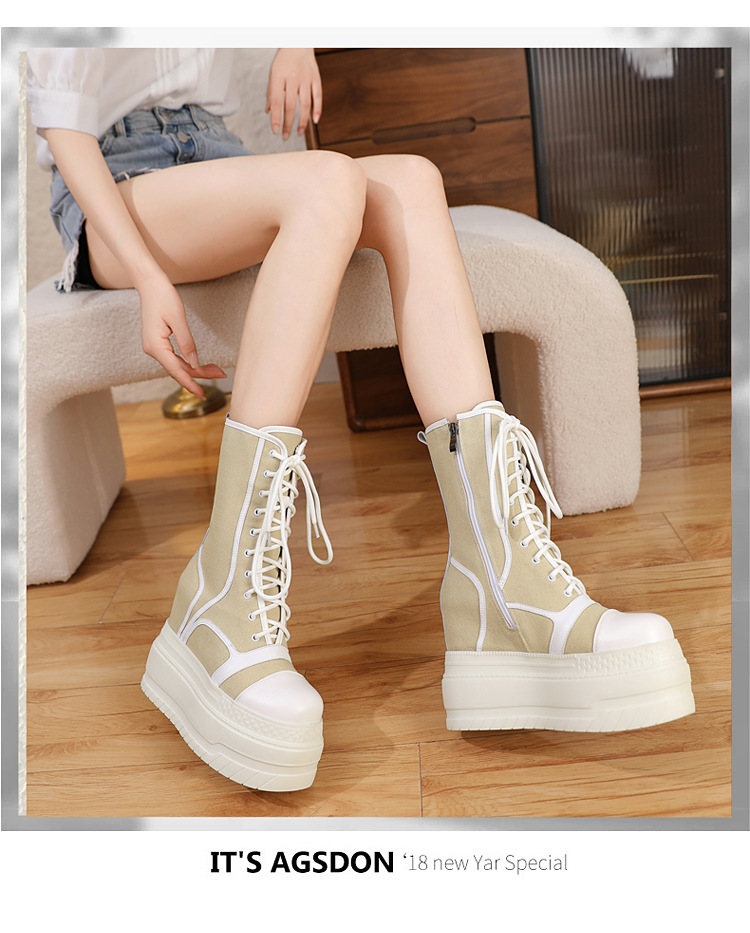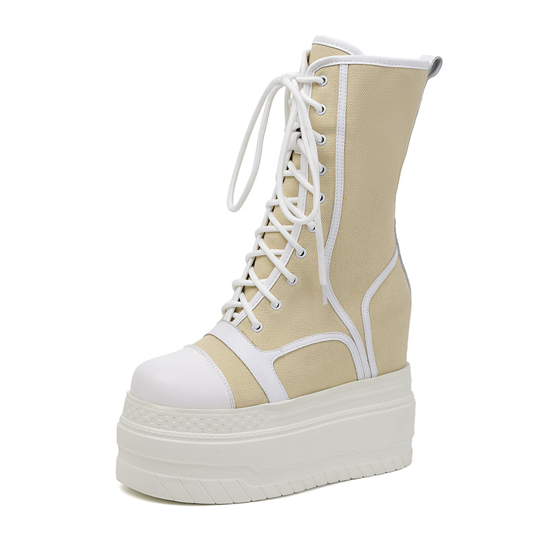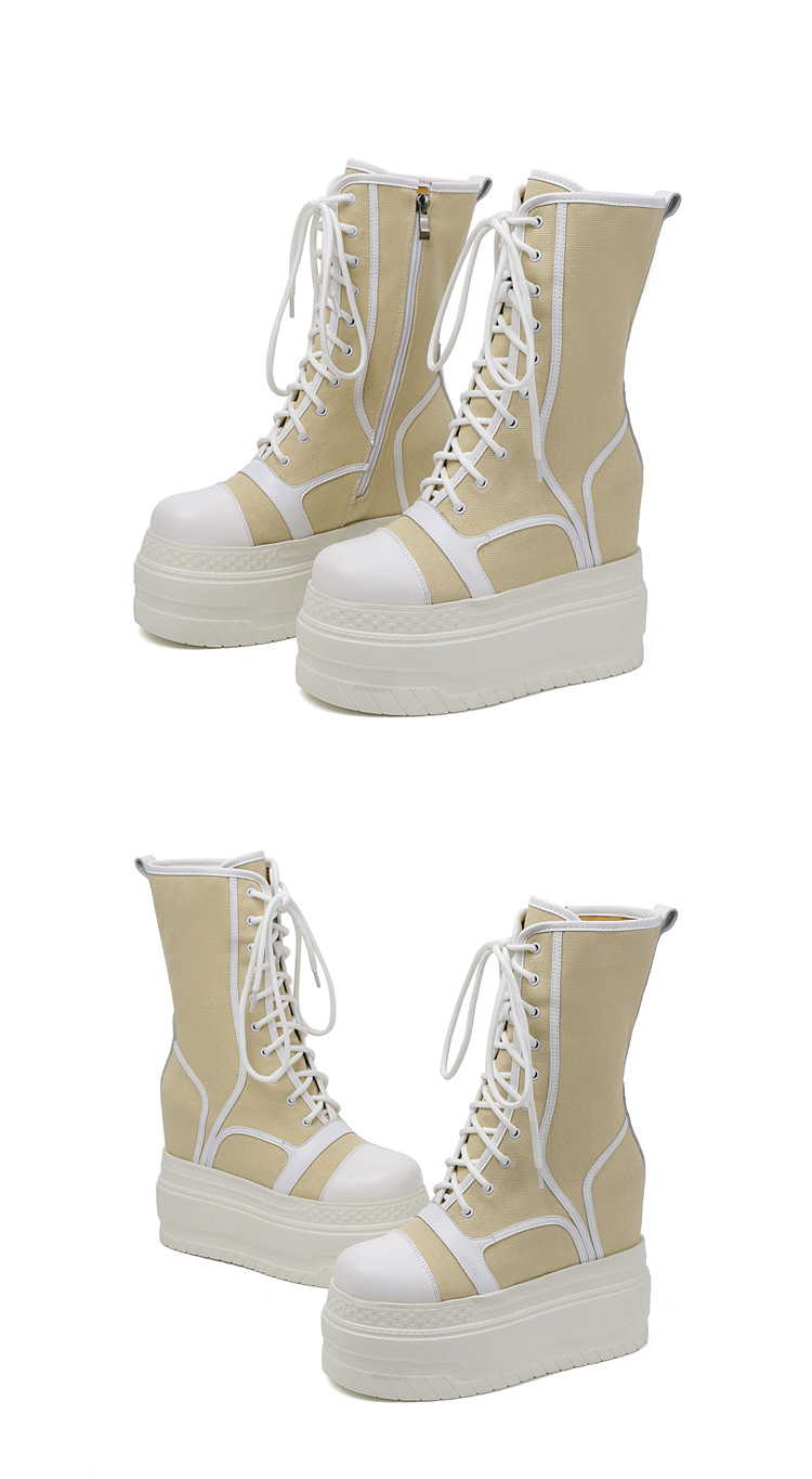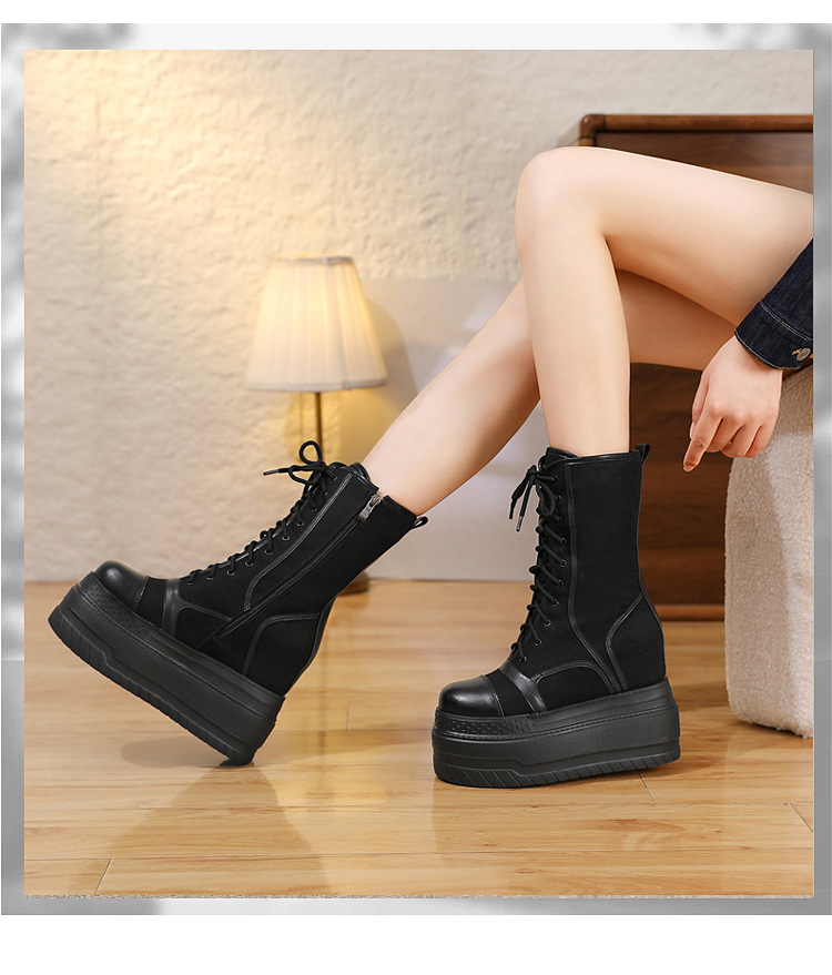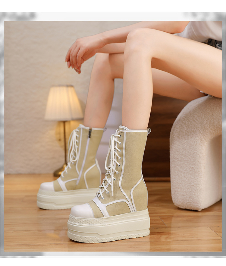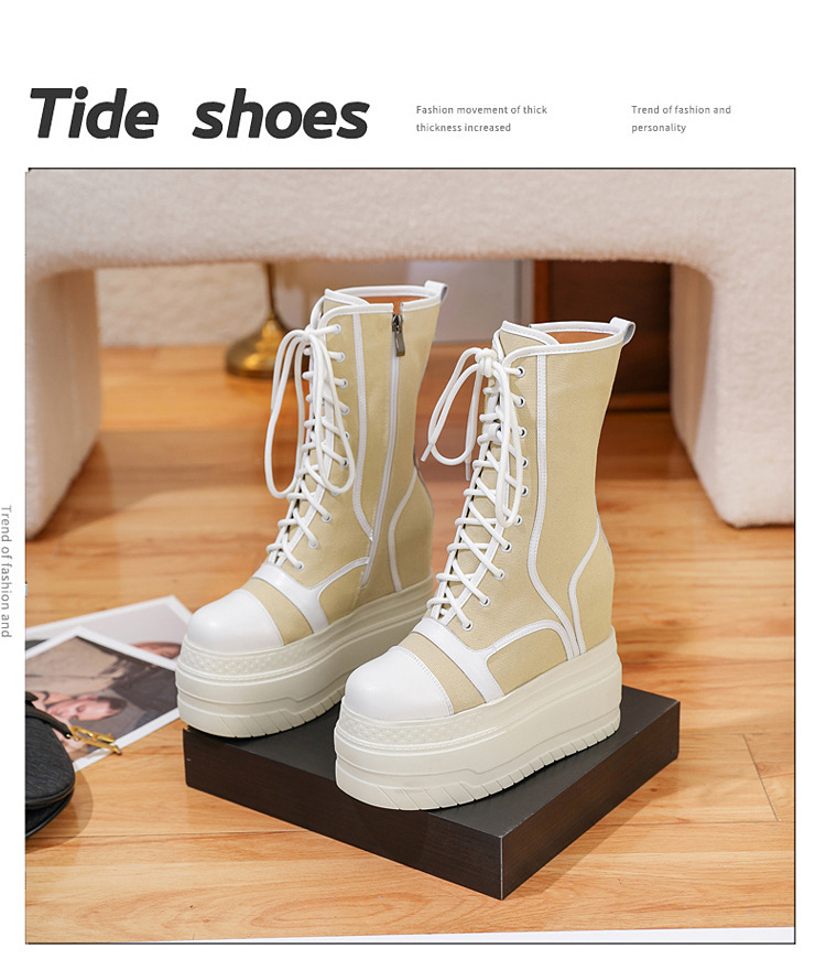 Đôi bốt cổ cao này có phần đế dày vừa phải, giúp tăng thêm chiều cao một cách nhẹ nhàng. Được làm từ chất liệu vải bố bền chắc, kiểu dáng mang phong cách thoải mái, dễ dàng kết hợp với nhiều loại trang phục khác nhau. Bạn có thể mang cùng quần jeans, váy hay quần short đều phù hợp. Cách sử dụng rất đơn giản, chỉ cần xỏ chân vào và buộc dây theo ý thích là đã có ngay vẻ ngoại cá tính. | Tên sản phẩm: Giày Boot Martin Nữ Chất Liệu Vải Thô Cao 12cm Tăng Chiều Cao Đế Cao - Giày Dép Nữ | Mã sản phẩm: B4198 - Giá: 2.120.000đ | Mã nhà sản xuất: QIDNG-G05Hình ảnh sản phẩm