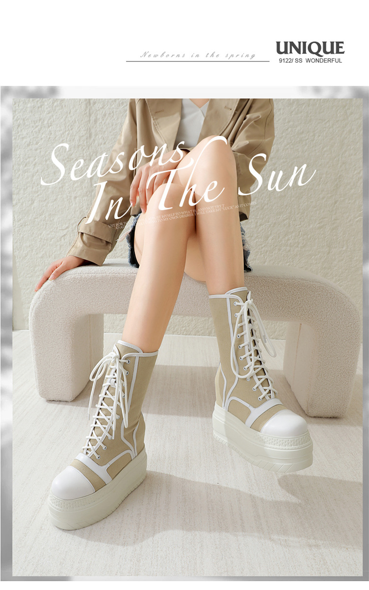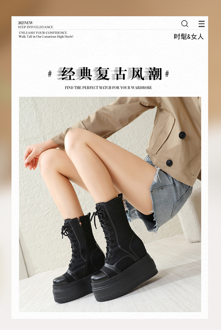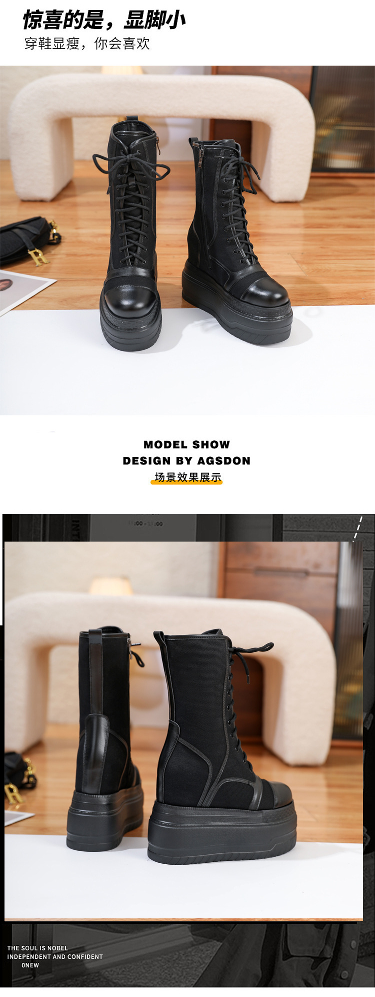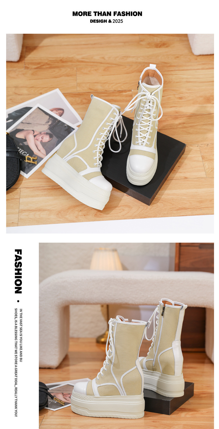 Đôi bốt cổ cao này có phần đế dày vừa phải, giúp tăng thêm chiều cao một cách nhẹ nhàng. Được làm từ chất liệu vải bố bền chắc, kiểu dáng mang phong cách thoải mái, dễ dàng kết hợp với nhiều loại trang phục khác nhau. Bạn có thể mang cùng quần jeans, váy hay quần short đều phù hợp. Cách sử dụng rất đơn giản, chỉ cần xỏ chân vào và buộc dây theo ý thích là đã có ngay vẻ ngoại cá tính. | Tên sản phẩm: Giày Boot Martin Nữ Chất Liệu Vải Thô Cao 12cm Tăng Chiều Cao Đế Cao - Giày Dép Nữ | Mã sản phẩm: B4198 - Giá: 2.120.000đ | Mã nhà sản xuất: QIDNG-G05Hình ảnh sản phẩm