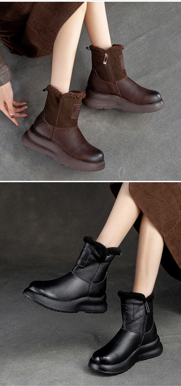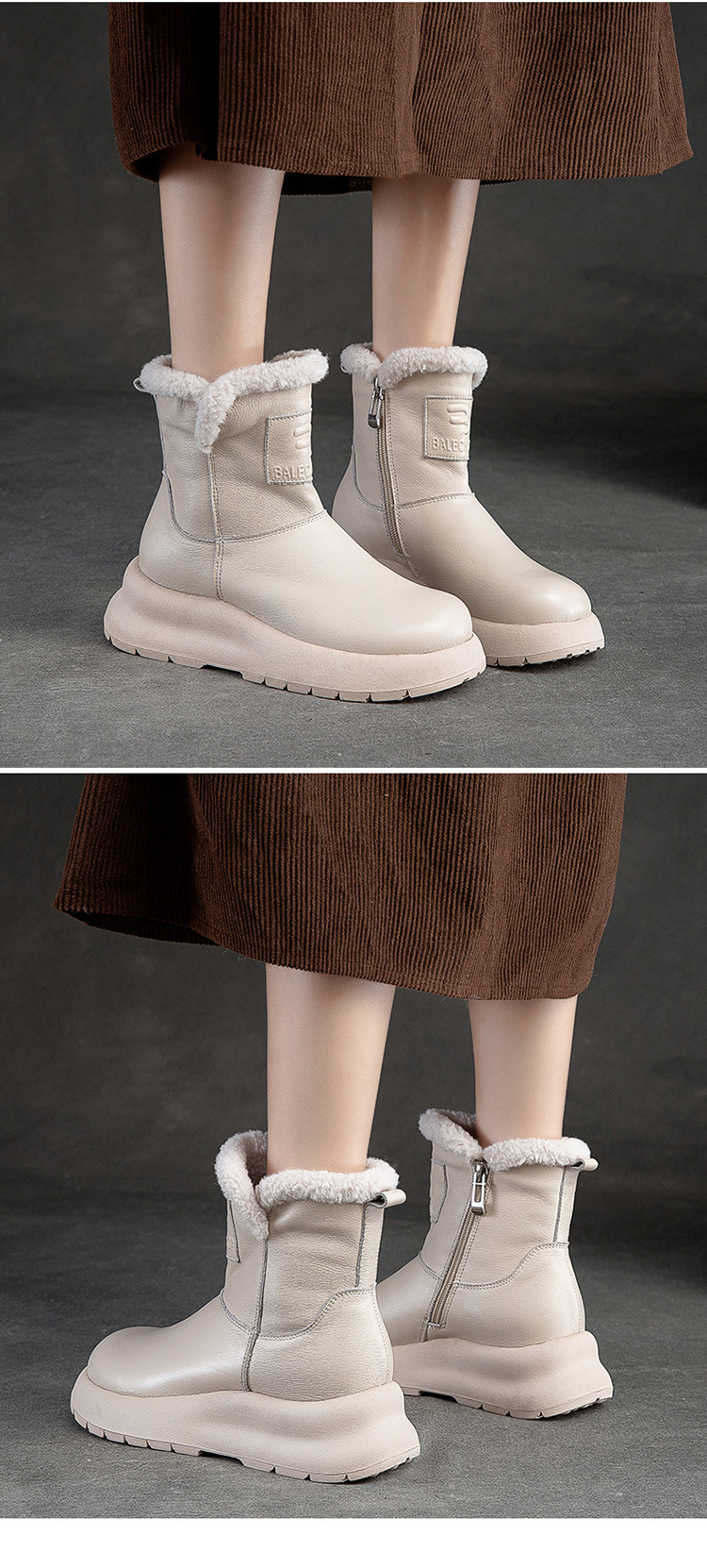 Đôi bốt mùa đông này có thiết kế cổ thấp, đế dày chắc chắn. Sản phẩm được làm với lớp lót bên trong bằng vải dệt kim mềm mại và có phần lót lông ấm áp, giúp giữ nhiệt tốt cho đôi chân trong thời tiết lạnh. Kiểu dáng đơn giản với màu trơn, dễ dàng phối hợp cùng nhiều trang phục khác nhau. Bạn có thể sử dụng hằng ngày như một đôi giày đi lại thông thường, phù hợp cho nhiều hoạt động. | Tên sản phẩm: Giày Boot Martin Nữ Dày Ấm Đế Cao Hàng Mùa Xuân Thu Đông - Giày Dép Nữ | Mã sản phẩm: B2345 - Giá: 1.520.000đ | Mã nhà sản xuất: SHDU-G04Hình ảnh sản phẩm
