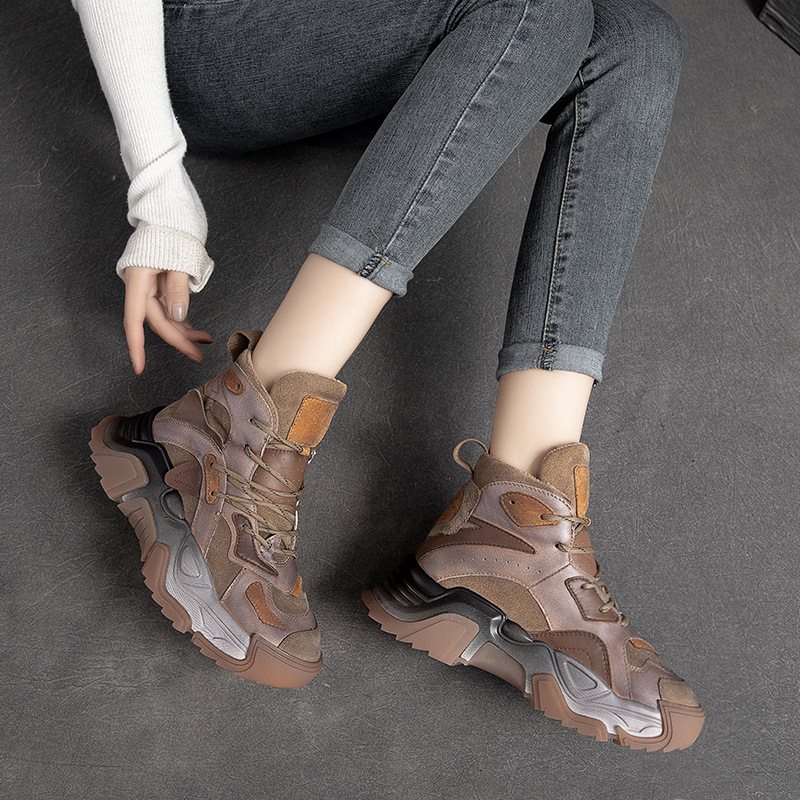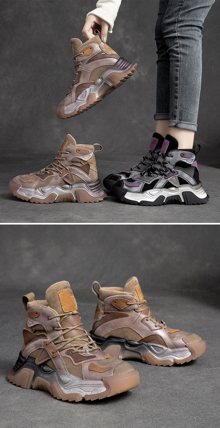 Giày mang phong cách cổ điển với sự kết hợp màu sắc độc đáo và hài hòa. Đế giày được thiết kế có phần dày dặn, tạo dáng đẹp và giúp tăng chiều cao nhẹ nhàng. Phần thân giày có các mảng ghép màu tinh tế, phía trước có dây buộc kiểu truyền thống. Kiểu dáng này dễ dàng phối hợp với nhiều loại trang phục khác nhau như quần jeans, quần short hay váy. Sử dụng bằng cách xỏ chân vào và buộc dây thật chặt để có cảm giác thoải mái và vững chãi khi di chuyển. | Tên sản phẩm: Giày Boot Martin Nữ Đế Cao Hàng Mùa Xuân Thu Đông Phong Cách Hàn Quốc - Giày Dép Nữ | Mã sản phẩm: B1825 - Giá: 1.710.000đ | Mã nhà sản xuất: SHDU-G05Hình ảnh sản phẩm