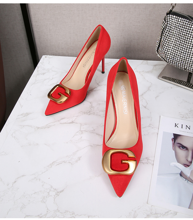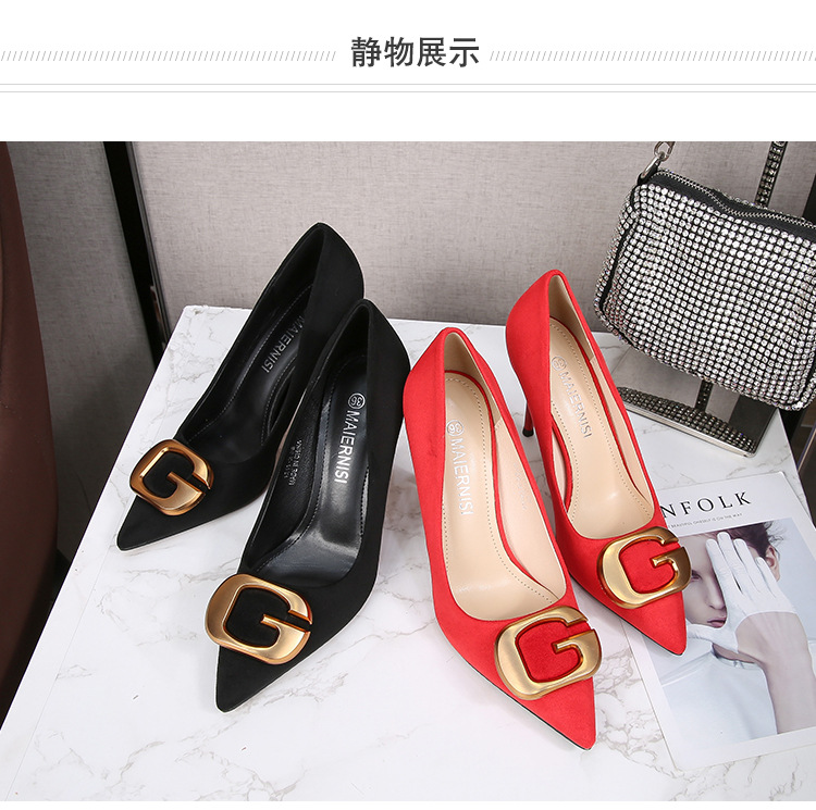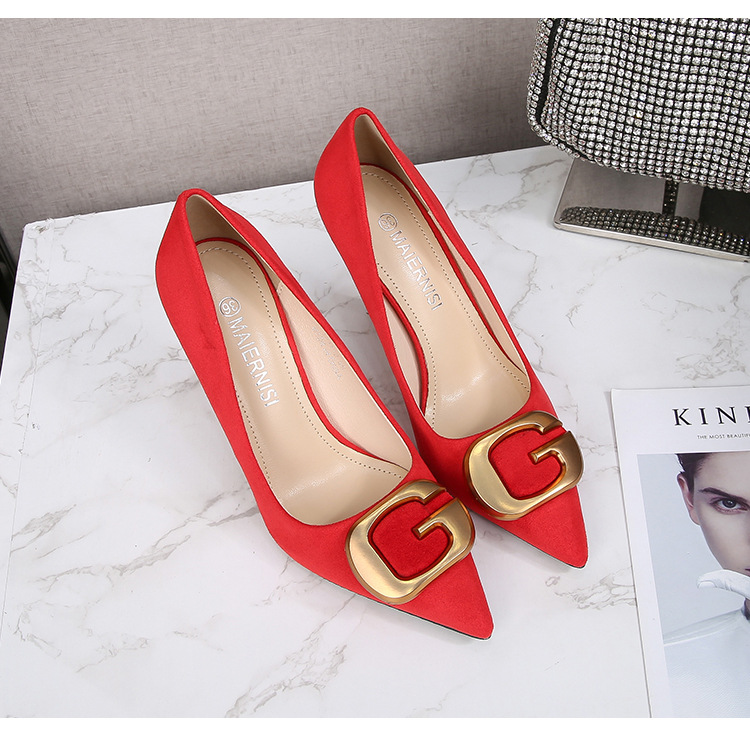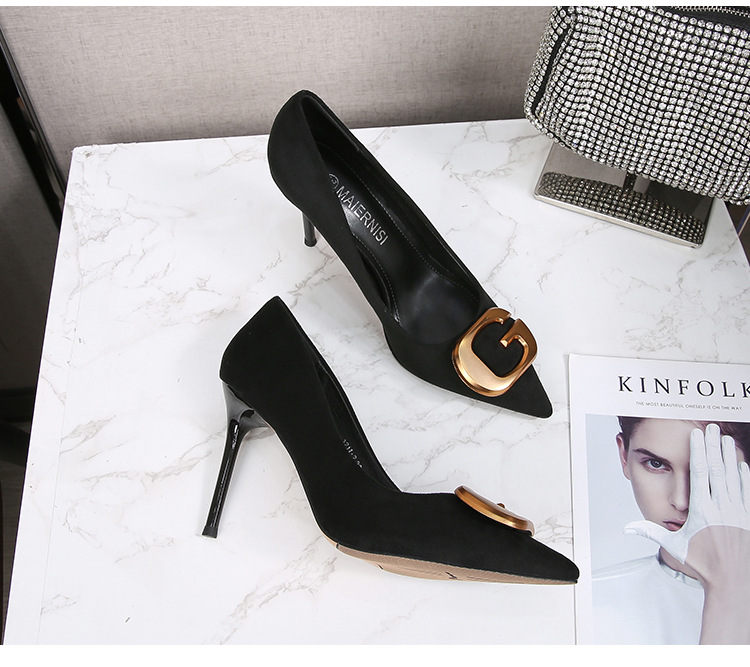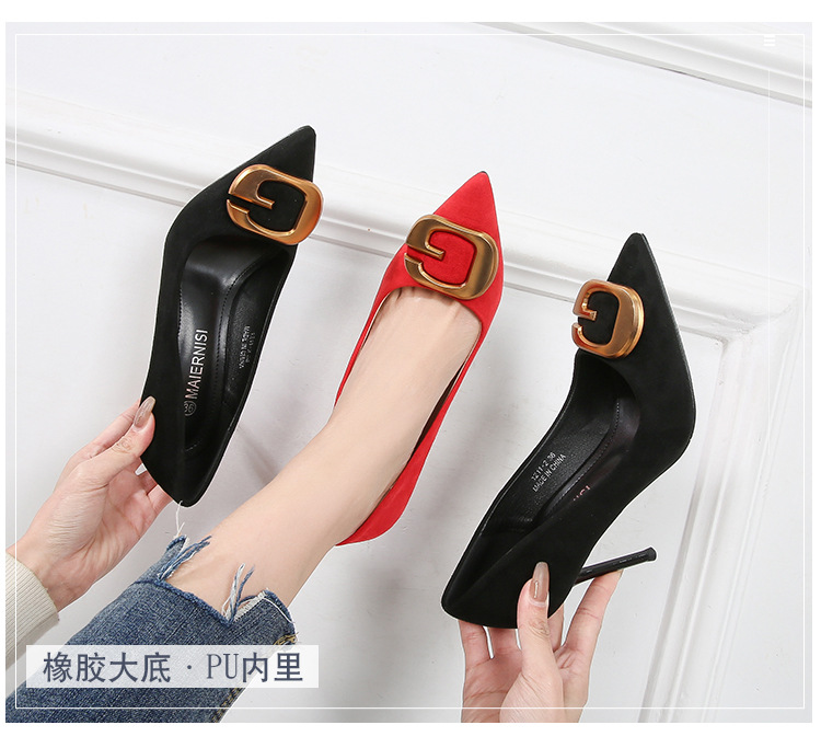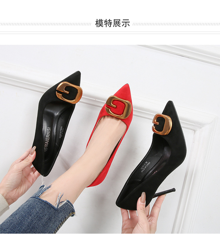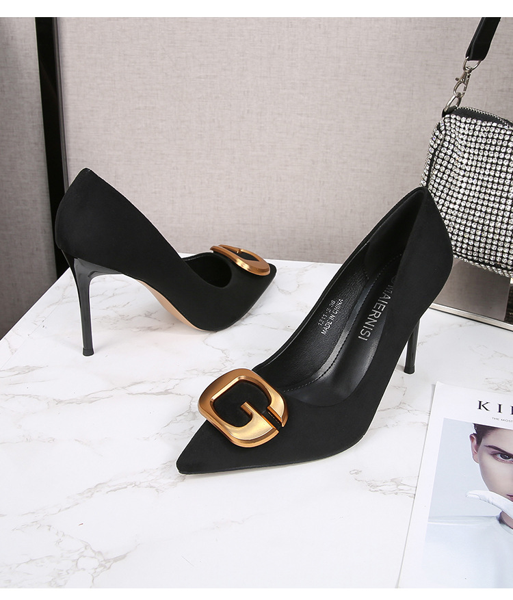 Đôi giày này có phần mũi nhọn thanh lịch, điểm nhấn là chiếc khóa kim loại tinh tế, tạo nên nét đẹp hiện đại và lịch sự cho người dùng. Kiểu dáng phù hợp cho môi trường công sở, mang lại cảm giác thoải mái và tự tin khi sử dụng. Sản phẩm có đa dạng kích cỡ, bao gồm cả những số lớn. Bạn có thể dễ dàng phối cùng quần tây, chân váy hoặc những bộ trang phục đi làm khác để hoàn thiện phong cách của mình. | Tên sản phẩm: Giày Cao Gót Nữ Big Size Ngoại Cỡ Mũi Nhọn - Giày Dép Nữ | Mã sản phẩm: B0482 - Giá: 650.000đ | Mã nhà sản xuất: MATYAL-G02Hình ảnh sản phẩm