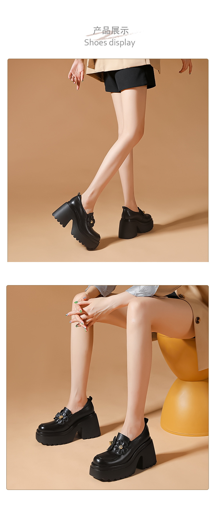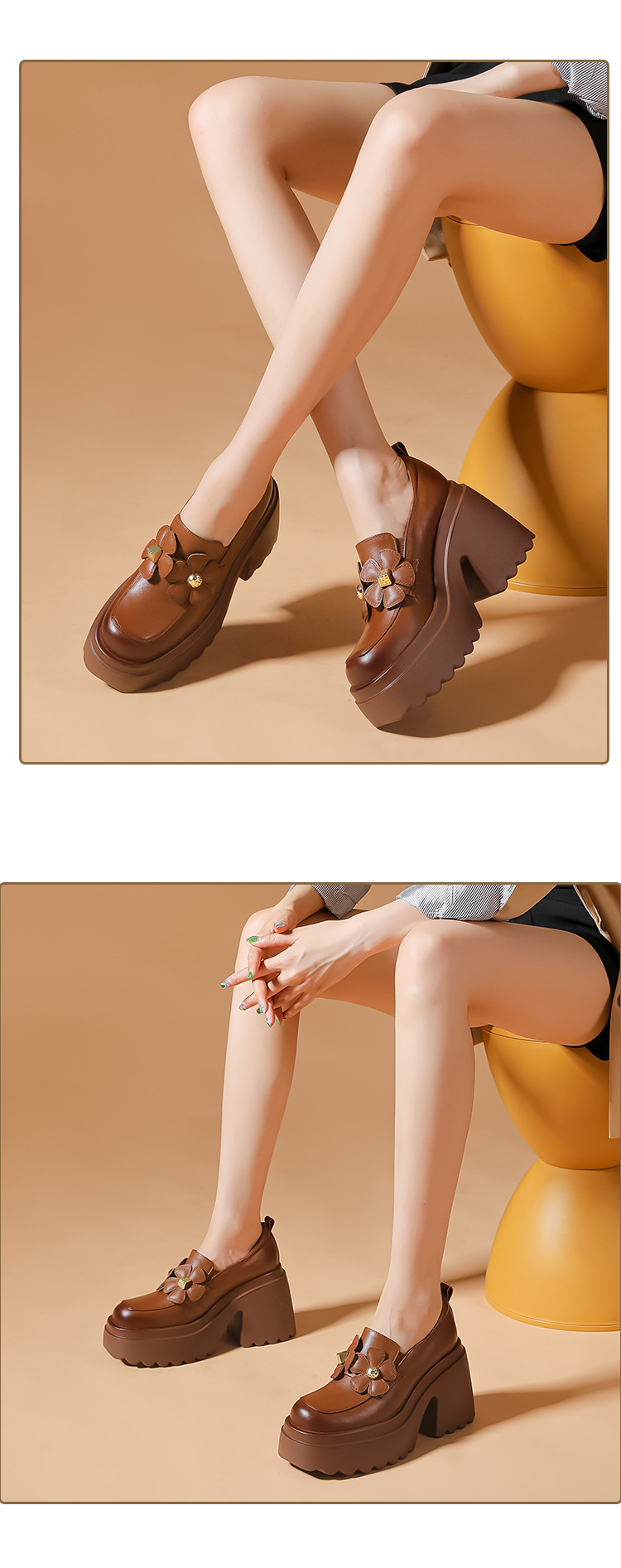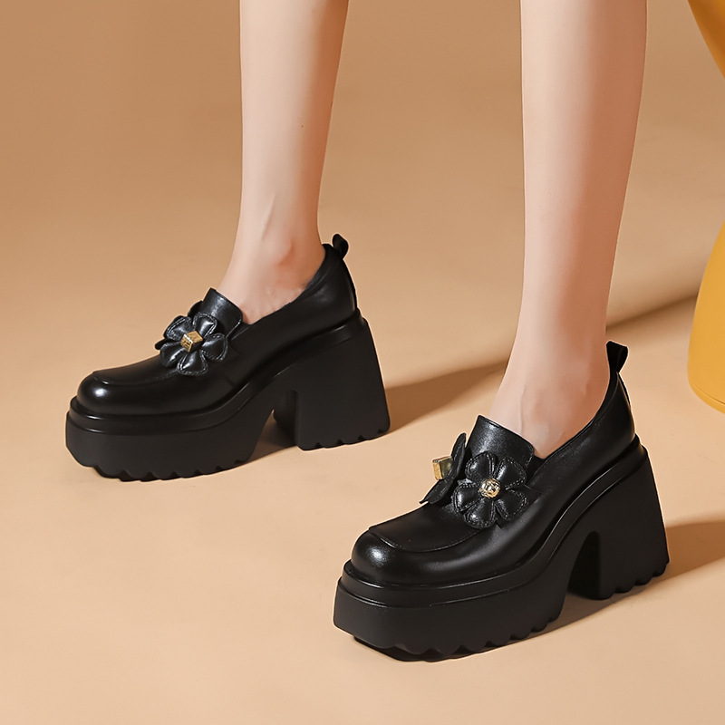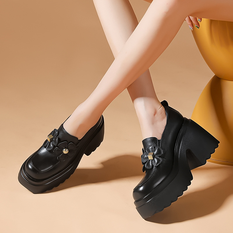 Giày nữ mùa thu với phần đế dày tạo dáng thanh thoát, giúp tôn chiều cao và vóc dáng một cách tinh tế. Form giày ôm chân vừa vặn, thiết kế mũi tròn và gót thô chắc chắn, dễ dàng phối cùng nhiều trang phục khác nhau. Điểm nhấn là họa tiết hoa nhỏ xinh tăng thêm nét duyên dáng. Bạn có thể mang giày để đi làm, đi chơi hoặc dạo phố đều thoải mái và hợp thời. | Tên sản phẩm: Giày Cao Gót Nữ Cao 10cm Mũi Tròn Gót Vuông Họa Tiết Hoa Đế Cao Hàng Mùa Xuân Thu Đông - Giày Dép Nữ | Mã sản phẩm: B4407 - Giá: 1.730.000đ | Mã nhà sản xuất: QIDNG-G05Hình ảnh sản phẩm