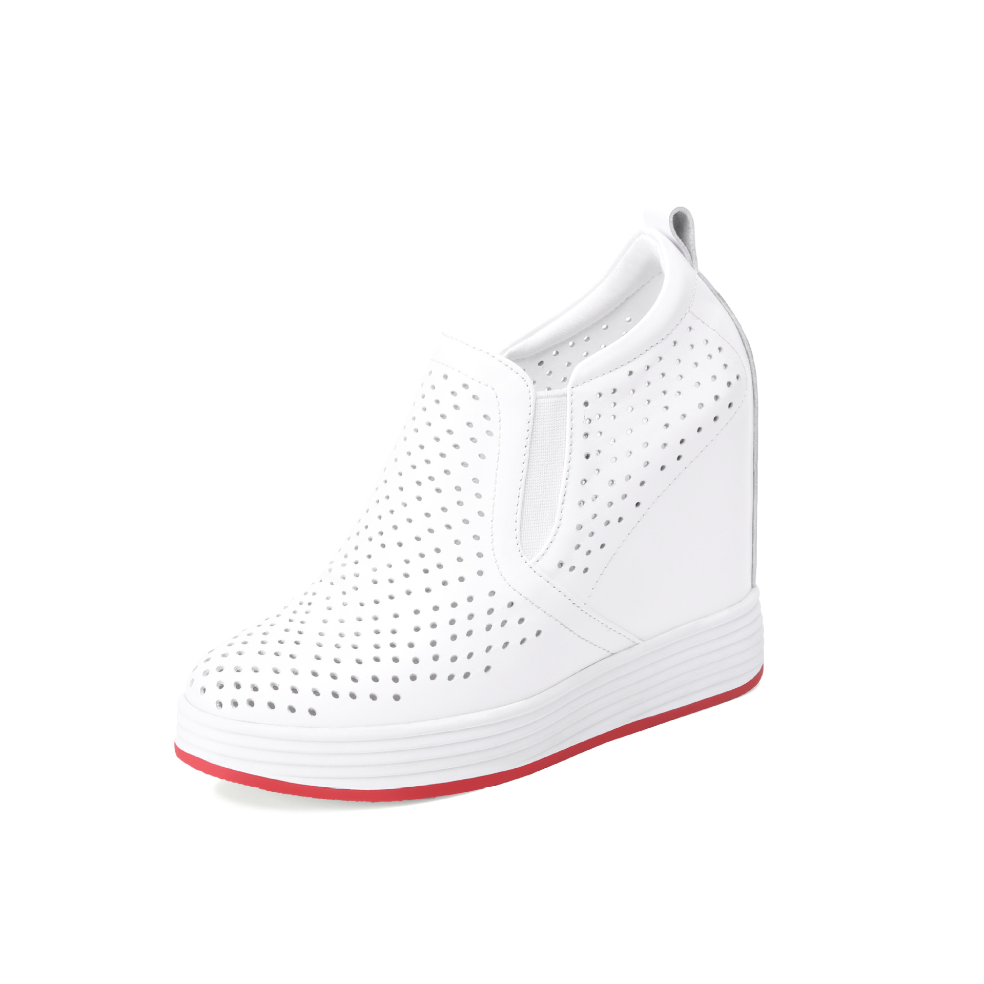Đôi giày nữ này có phần đế dày bên trong giúp tăng chiều cao một cách tinh tế. Kiểu dáng trẻ trung với phần trên làm từ chất liệu nhẹ, có các lỗ thông hơi tạo cảm giác thoải mái khi mang. Đây là mẫu giày bệt đế bằng phù hợp cho những ngày hè. Bạn có thể dễ dàng phối cùng nhiều loại trang phục khác nhau để tạo nên vẻ ngoài năng động. | Tên sản phẩm: Giày Cao Gót Nữ Cao 12cm Tăng Chiều Cao Thoáng Khí Đế Cao Hàng Mùa Hè - Giày Dép Nữ | Mã sản phẩm: B4119 - Giá: 1.440.000đ | Mã nhà sản xuất: QIDNG-G04Hình ảnh sản phẩm