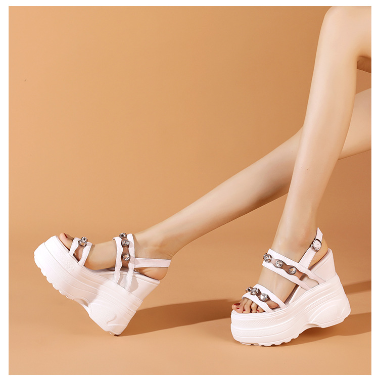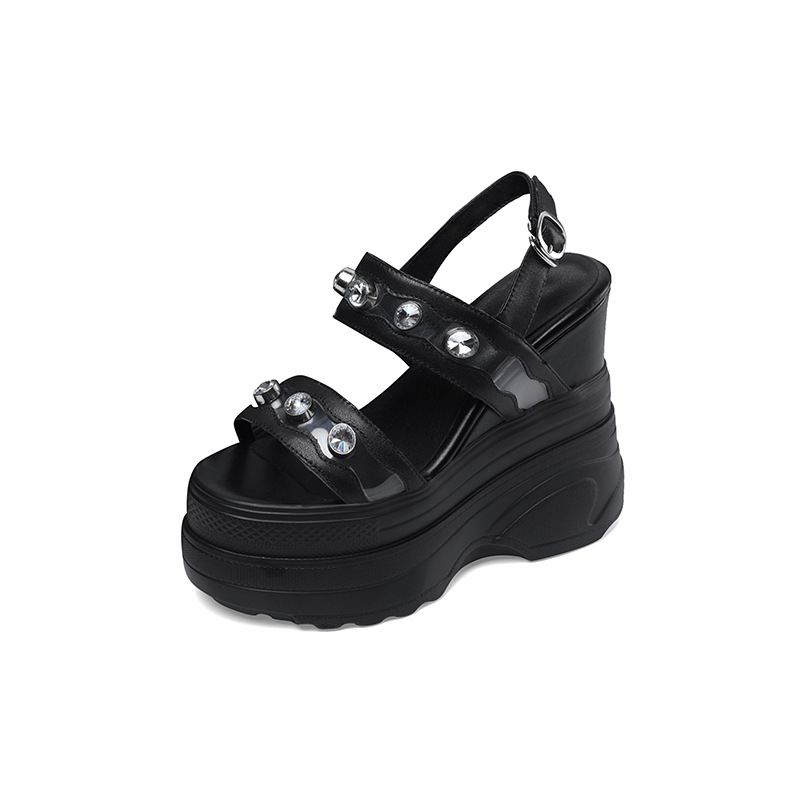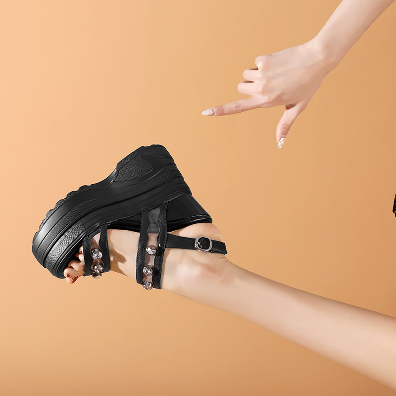 Đôi dép qu ngang có phần đế dày và vững chãi, kết hợp cùng thiết kế gót cao tạo điểm nhấn. Mẫu mã phù hợp cho những ngày hè, kiểu dáng thoải mái và dễ phối đồ. Trên thân dép được điểm xuyến bằng các chi tiết phụ kiện lấp lánh nhỏ. Bạn có thể sử dụng làm dép đi dạo phố, dự tiệc hoặc trong nhiều hoàn cảnh khác nhau. | Tên sản phẩm: Giày Cao Gót Nữ Cao 14cm Gắn Đá Đế Cao Hàng Mùa Hè - Giày Dép Nữ | Mã sản phẩm: B4423 - Giá: 1.730.000đ | Mã nhà sản xuất: QIDNG-G05Hình ảnh sản phẩm