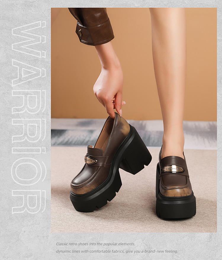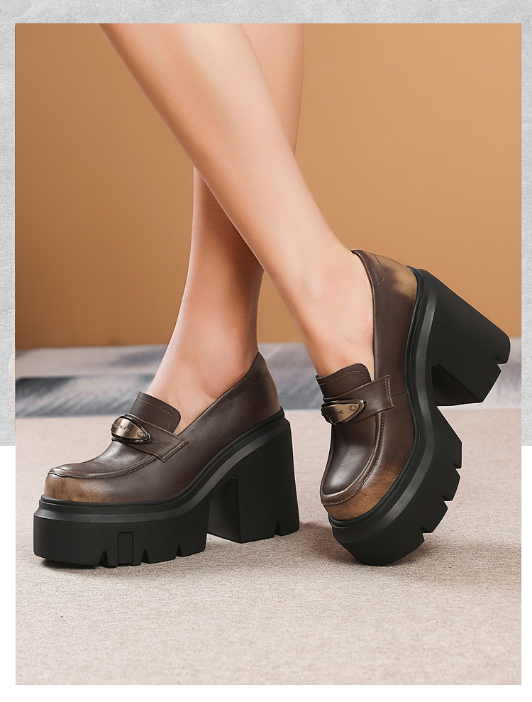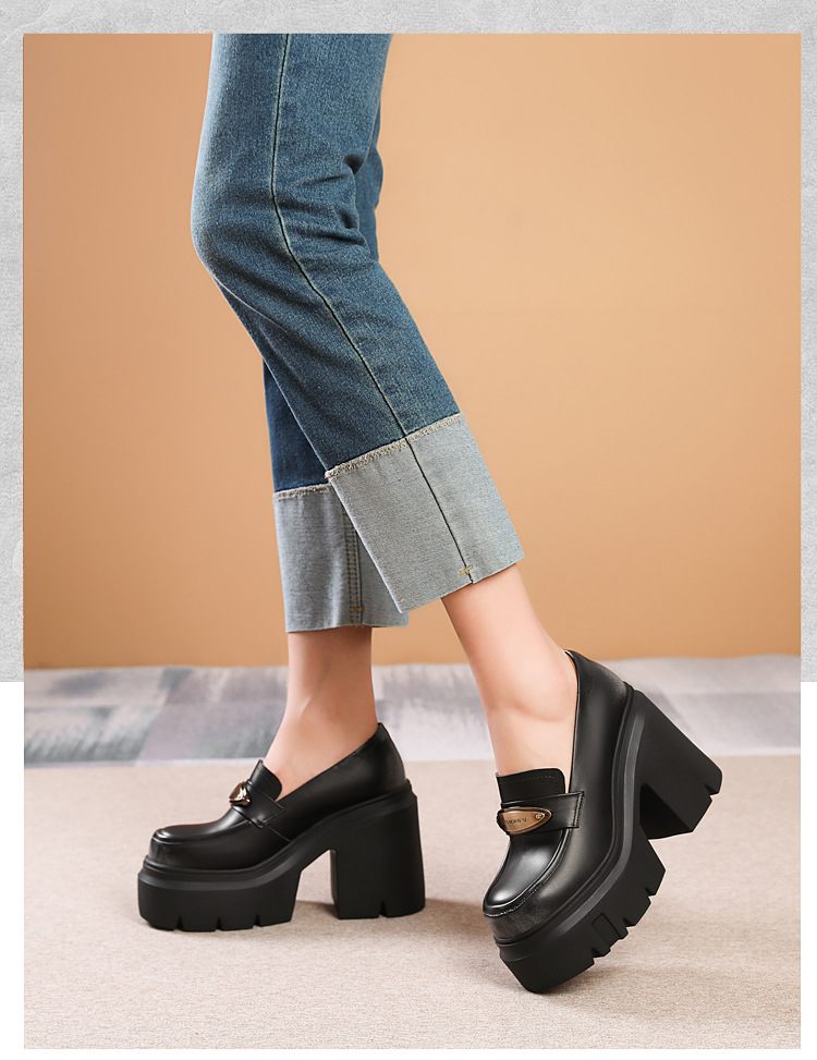 Đôi giày da thật này có phần đế dày phía dưới giúp tăng chiều cao một cách tinh tế. Phần gót chắc chắn tạo dáng đẹp và dễ dàng di chuyển. Kiểu dáng giày loafer cổ điển, dễ phối đồ và phù hợp cho thời tiết mát mẻ. Sản phẩm được làm từ chất liệu da mềm mại, ôm chân nhưng không gây khó chịu. Bạn chỉ cần xỏ chân vào và kéo khóa nhẹ nhàng là đã có ngay vẻ ngoài chỉn chu, thanh lịch. | Tên sản phẩm: Giày Cao Gót Nữ Chất Liệu Da Bò Cao 12cm Gót Vuông Tăng Chiều Cao Đế Cao Hàng Mùa Xuân Thu Đông - Giày Dép Nữ | Mã sản phẩm: B4056 - Giá: 2.120.000đ | Mã nhà sản xuất: QIDNG-G05Hình ảnh sản phẩm