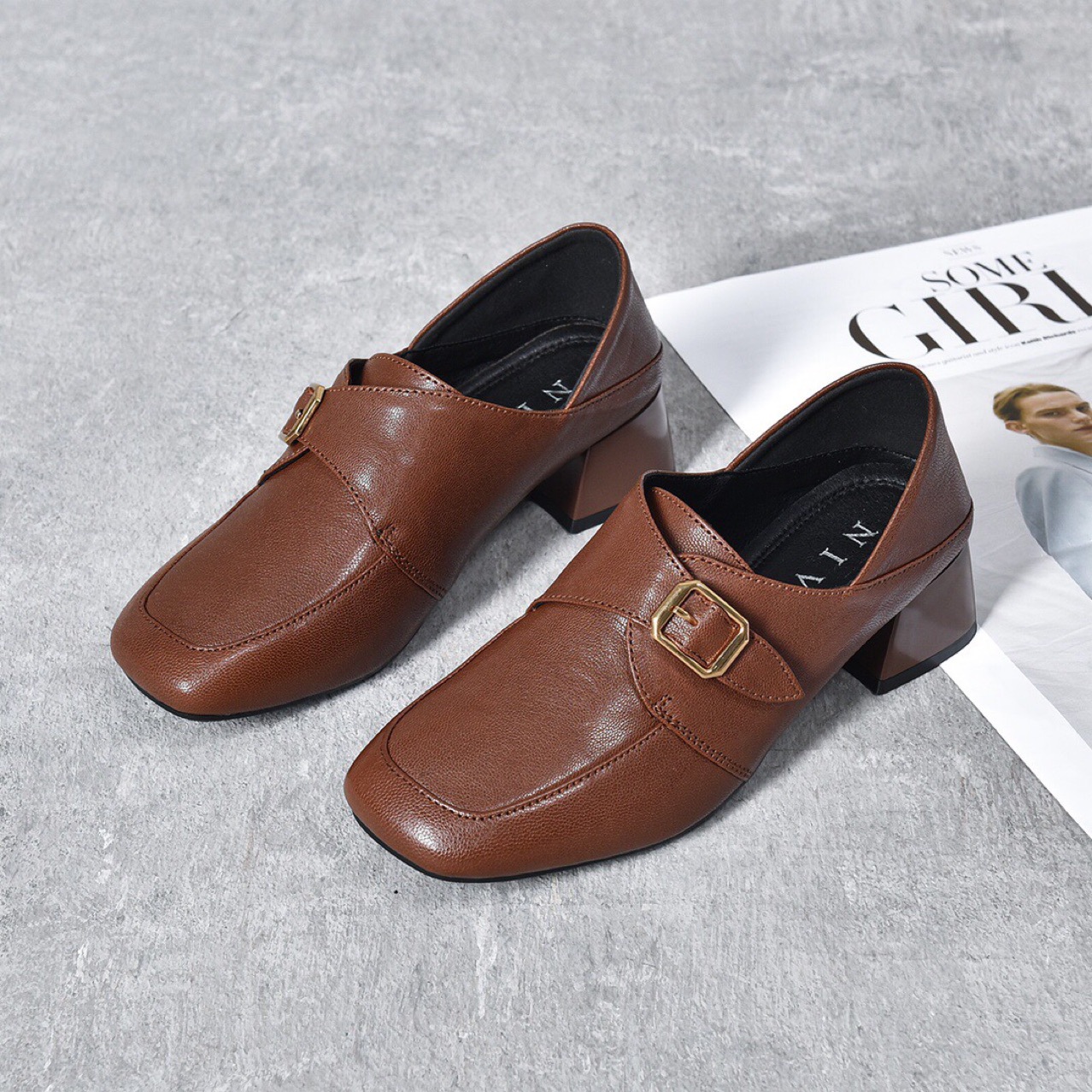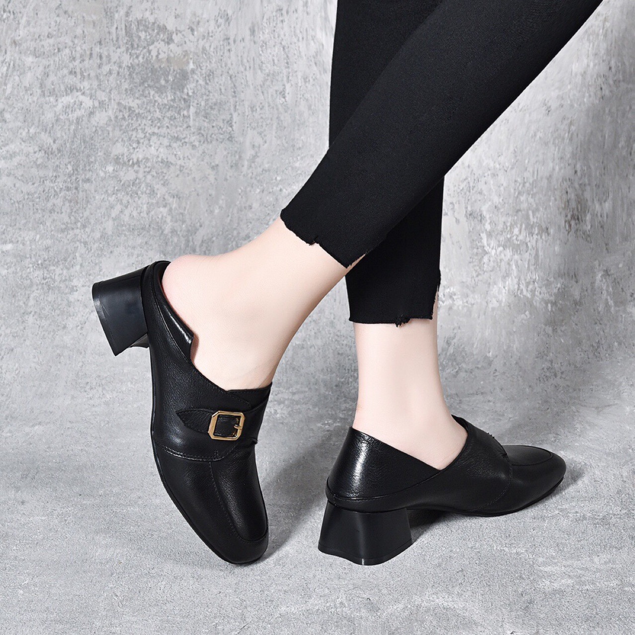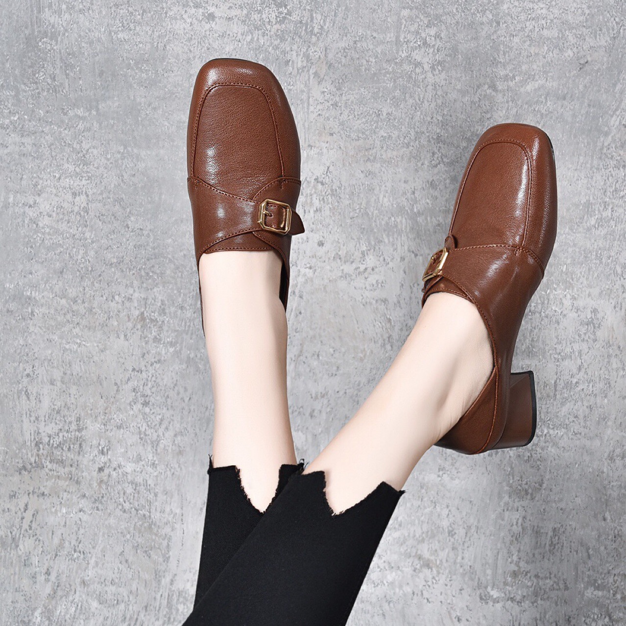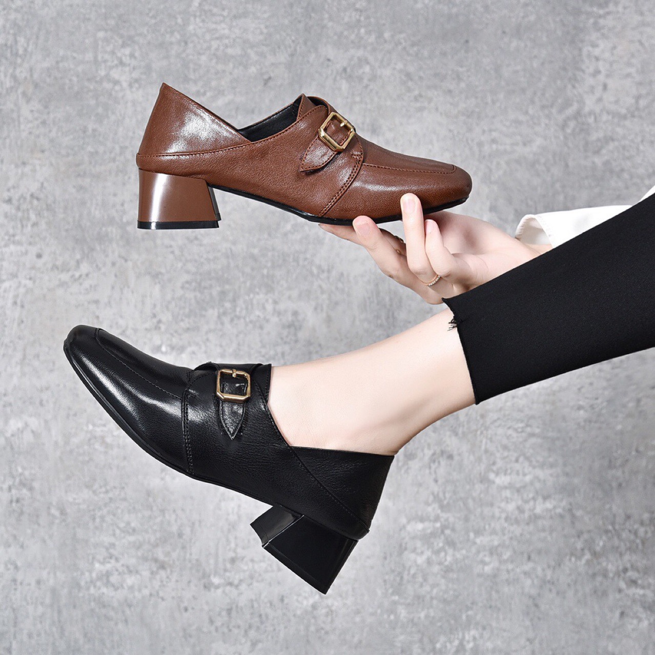 Giày da thật dành cho nữ, kiểu dáng cổ điển phù hợp cho cả mùa thu và mùa xuân. Mẫu giày có phần mũi vuông thanh lịch, kết hợp với đế thấp vững chãi tạo dáng đứng đắn. Chất liệu da mềm mại ôm chân nhẹ nhàng, mang lại cảm giác dễ chịu khi sử dụng. Bạn có thể kết hợp cùng nhiều loại trang phục khác nhau như quần âu, váy liền để tạo phong cách riêng. Chỉ cần vệ sinh nhẹ bằng khăn mềm sau khi dùng. | Tên sản phẩm: Giày Cao Gót Nữ Chất Liệu Da Bò Gót Vuông Hàng Mùa Xuân Thu Đông - Giày Dép Nữ | Mã sản phẩm: D6985 - Giá: 1.490.000đ | Mã nhà sản xuất: TOREHU-G04Hình ảnh sản phẩm