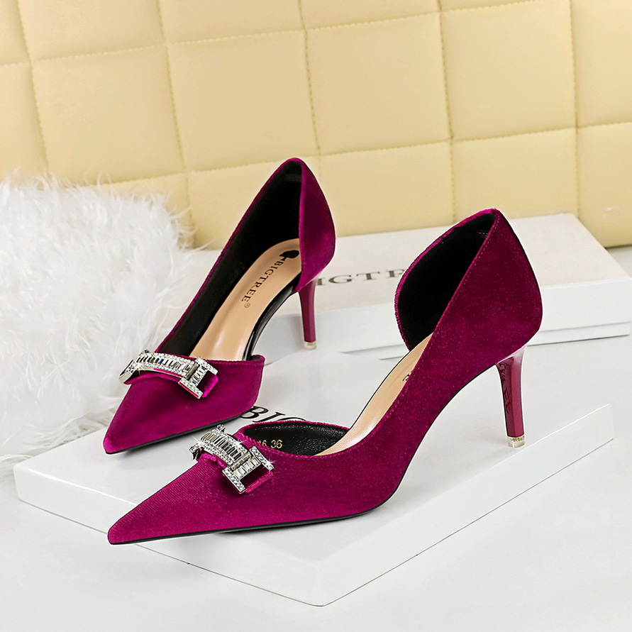 Đôi giày này mang phong cách châu Âu hiện đại với phần mũi nhọn và gót thanh mảnh, tôn dáng người đi. Chất liệu bề mặt được làm từ loại vải mịn có độ dày vừa phải, ôm chân nhẹ nhàng. Thiết kế cổ thấp kết hợp khoét hờ hai bên tạo điểm nhấn tinh tế, cùng khóa kết bằng pha lê lấp lánh. Sản phẩm dễ dàng phối cùng nhiều trang phục như quần âu hay váy liền để đi làm, dự tiệc hoặc hẹn hò. | Tên sản phẩm: Giày Cao Gót Nữ Gắn Đá Mũi Nhọn Gót Nhọn Dày Ấm Phong Cách Âu Mỹ - Giày Dép Nữ | Mã sản phẩm: C0827 - Giá: 700.000đ | Mã nhà sản xuất: PITYIN-G02Hình ảnh sản phẩm