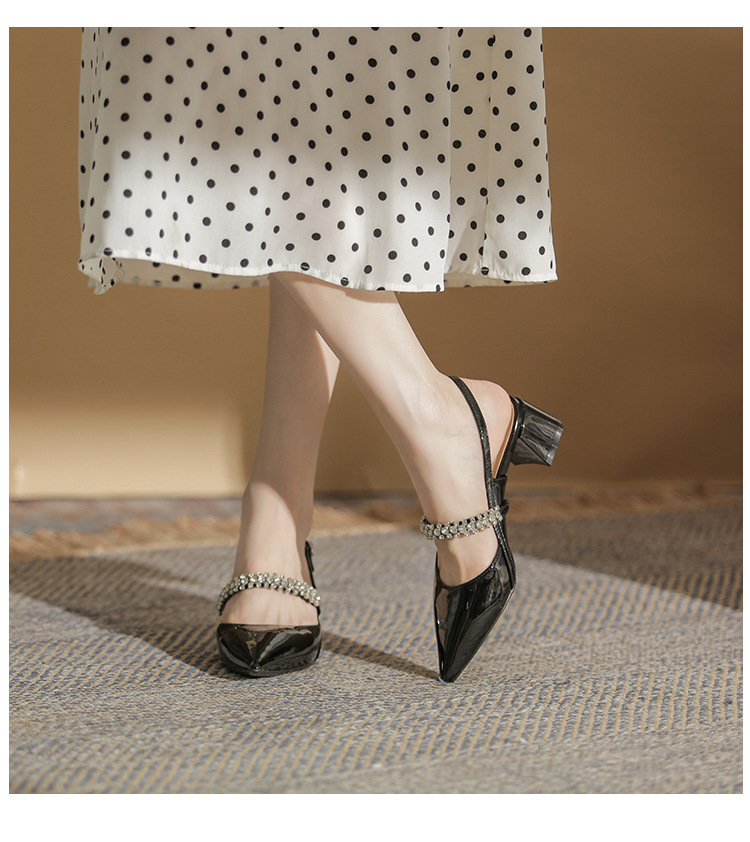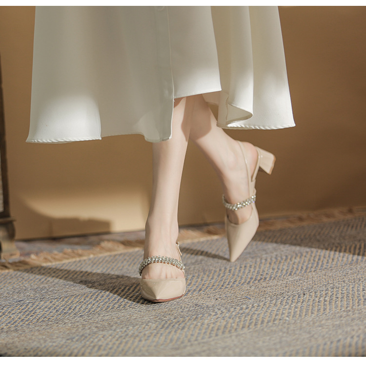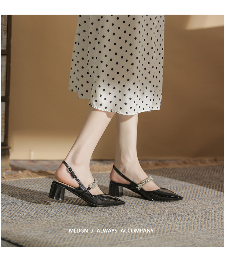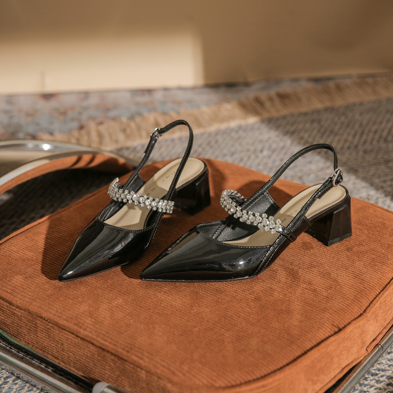 Giày búp mũi nhọn dành cho nữ, kiểu dáng cổ điển với điểm nhấn là viên đá lấp lánh gần qu. Sản phẩm có phần gót chắc chắn, tạo dáng đứng đẹp và dễ dàng di chuyển. Chất liệu da mềm mại ôm chân một cách thoải mái. Bạn có thể kết hợp cùng nhiều loại trang phục khác nhau như quần âu, chân váy để đi làm, đi chơi hoặc dự tiệc. | Tên sản phẩm: Giày Cao Gót Nữ Gắn Đá Mũi Nhọn Gót Vuông - Giày Dép Nữ | Mã sản phẩm: K2523 - Giá: 890.000đ | Mã nhà sản xuất: HUDS-G03Hình ảnh sản phẩm