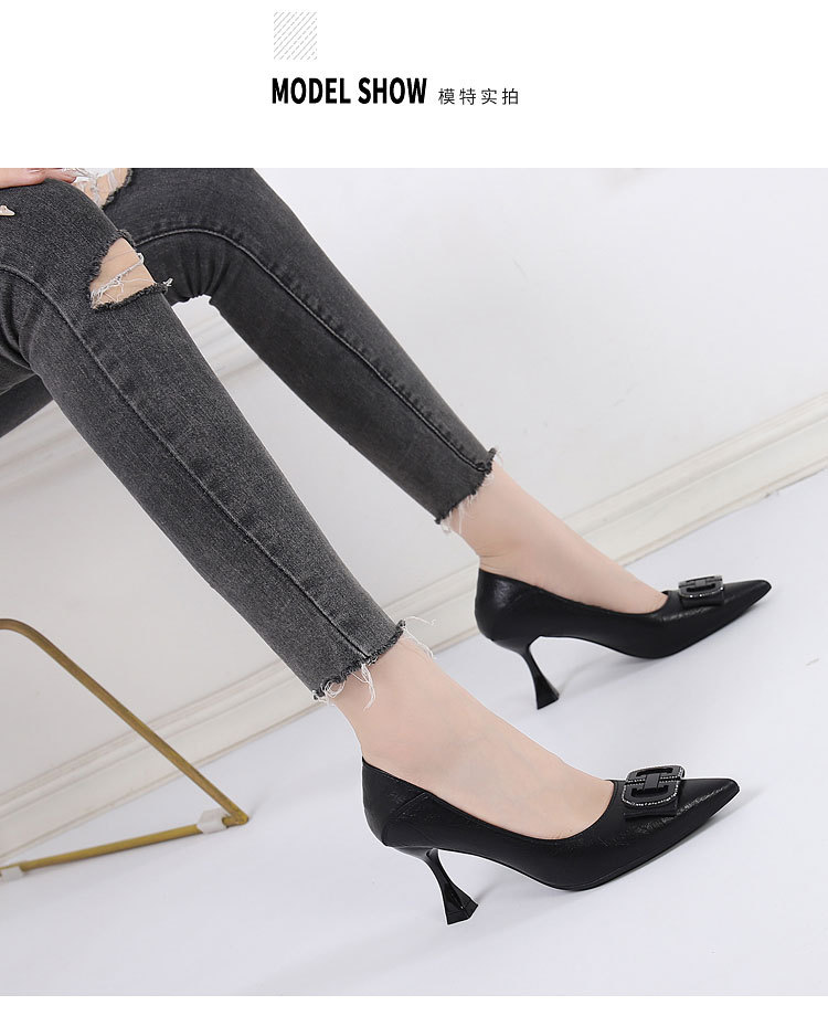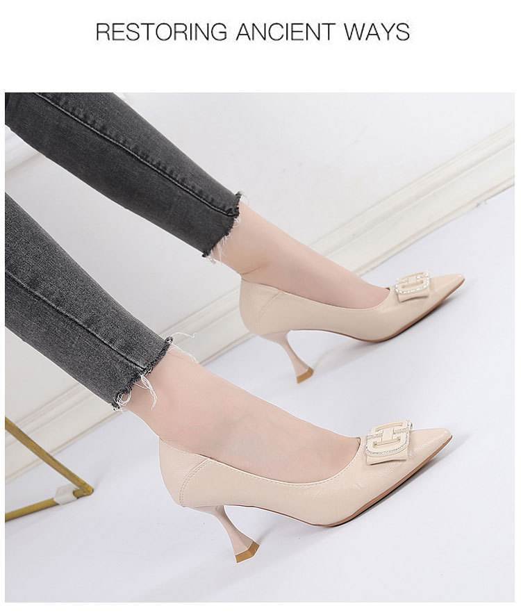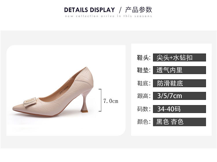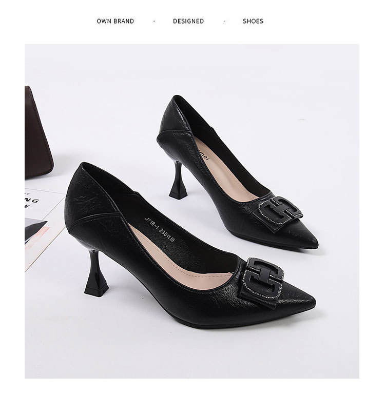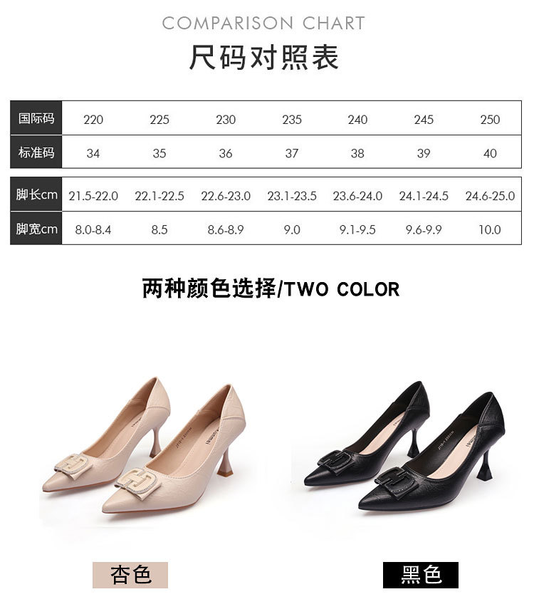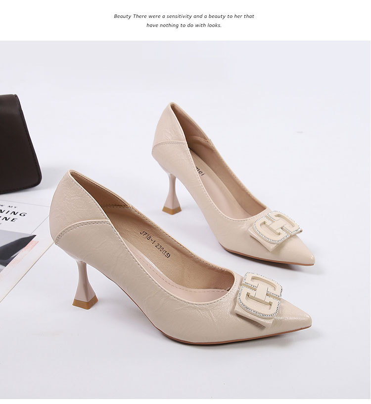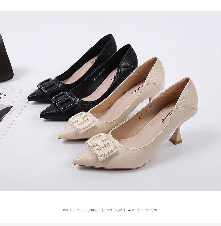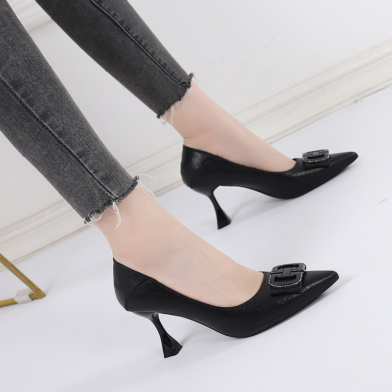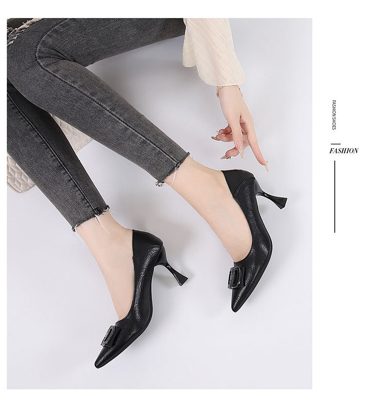 Đôi giày này mang phong cách thanh lịch, phù hợp cho môi trường công sở và nhiều dịp khác. Kiểu dáng thiết kế nhẹ nhàng với phần mũi thon, gót nhỏ và chi tiết khóa đá tinh xảo. Chất da mềm mại ôm chân, mang lại cảm giác dễ chịu khi mang trong thời gian dài. Bạn có thể kết hợp giày cùng nhiều loại trang phục như quần tây, chân váy để tạo vẻ ngoài chỉn chu và lịch sự. | Tên sản phẩm: Giày Cao Gót Nữ Gót Nhọn Hàng Mùa Xuân Thu Đông Đồ Công Sở - Giày Dép Nữ | Mã sản phẩm: K0341 - Giá: 530.000đ | Mã nhà sản xuất: JUTYAL-G01Hình ảnh sản phẩm