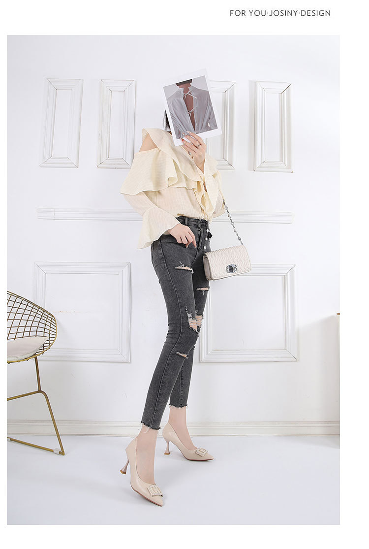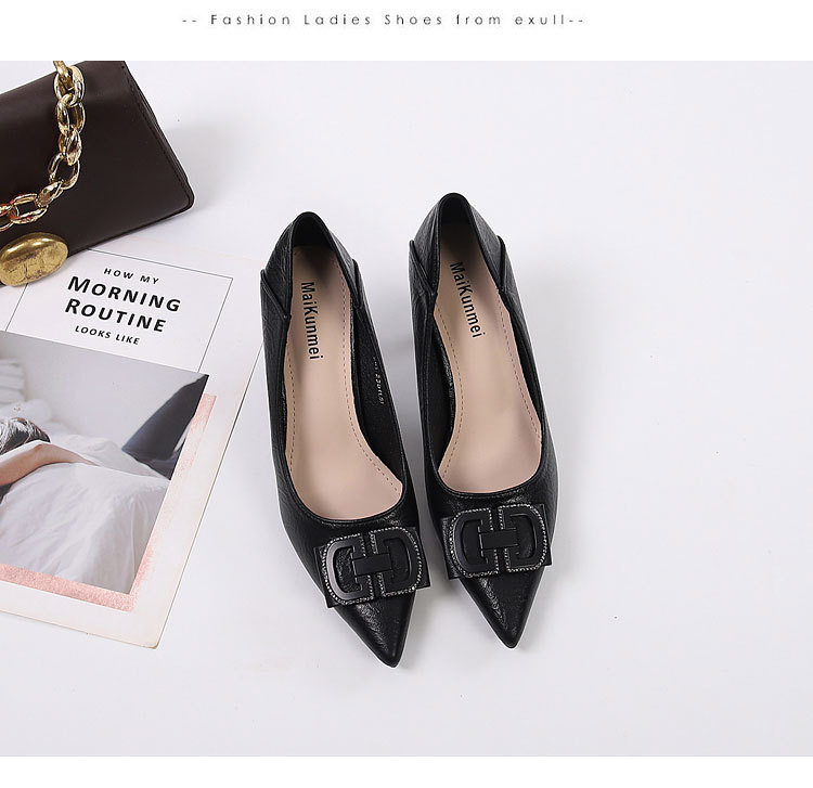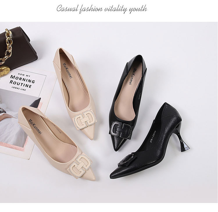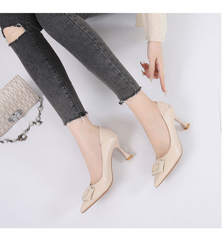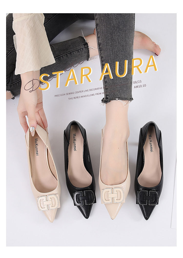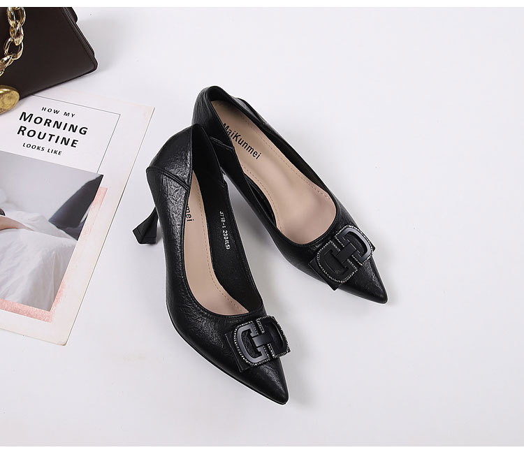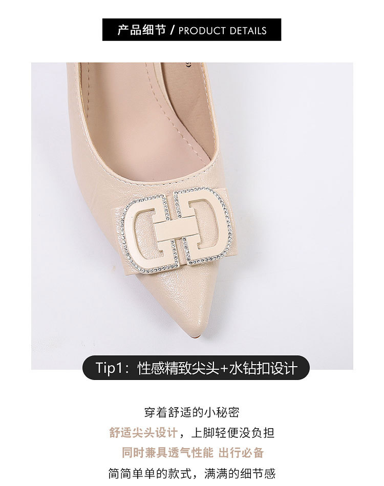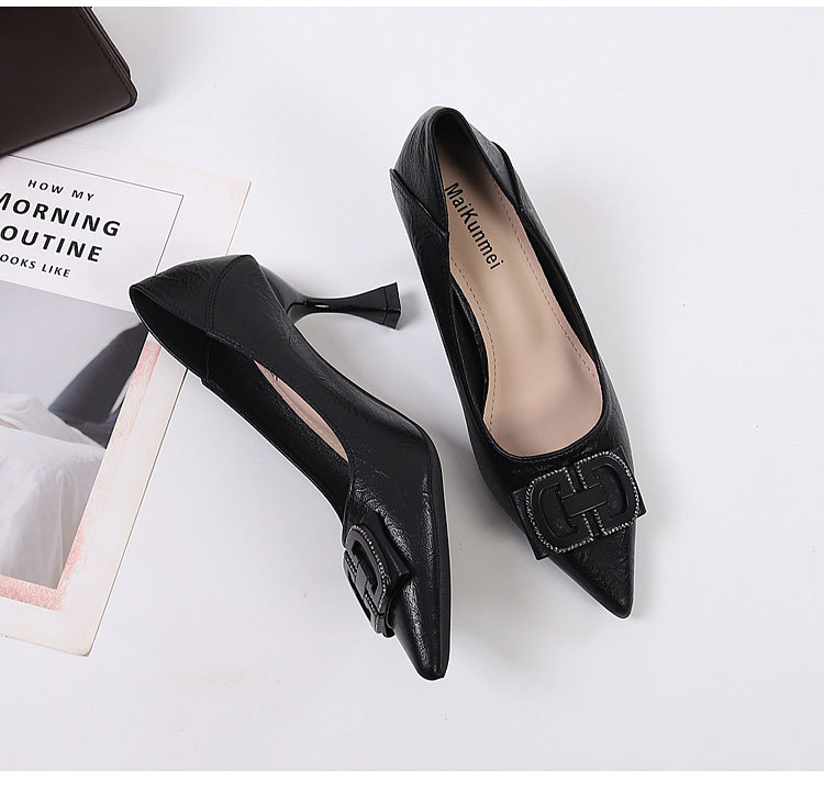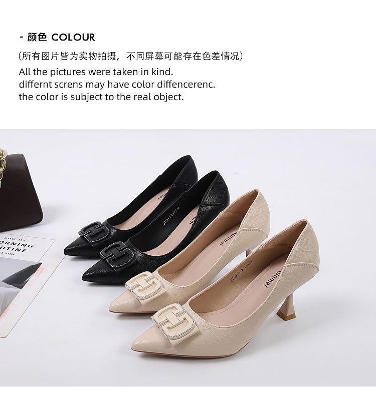 Đôi giày này mang phong cách thanh lịch, phù hợp cho môi trường công sở và nhiều dịp khác. Kiểu dáng thiết kế nhẹ nhàng với phần mũi thon, gót nhỏ và chi tiết khóa đá tinh xảo. Chất da mềm mại ôm chân, mang lại cảm giác dễ chịu khi mang trong thời gian dài. Bạn có thể kết hợp giày cùng nhiều loại trang phục như quần tây, chân váy để tạo vẻ ngoài chỉn chu và lịch sự. | Tên sản phẩm: Giày Cao Gót Nữ Gót Nhọn Hàng Mùa Xuân Thu Đông Đồ Công Sở - Giày Dép Nữ | Mã sản phẩm: K0341 - Giá: 530.000đ | Mã nhà sản xuất: JUTYAL-G01Hình ảnh sản phẩm