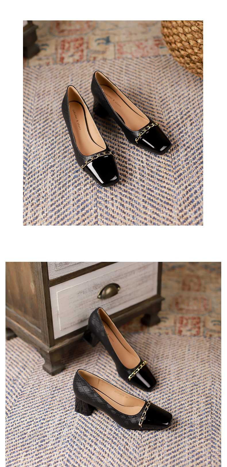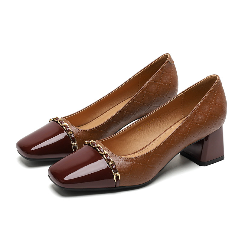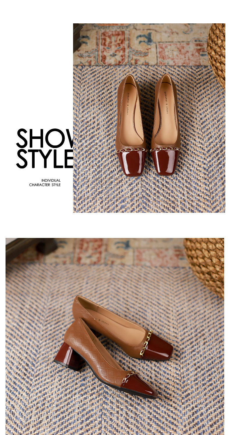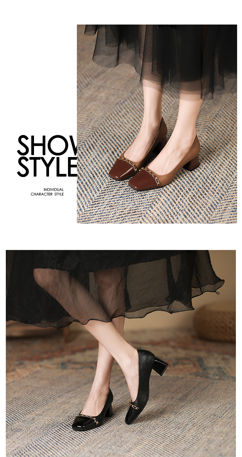 Giày Mary Jane cho nữ, kiểu dáng cổ điển phong cách Anh, điểm nhấn là dây kim loại bản nhỏ tinh tế. Mẫu giày này kết hợp hai tông màu hài hòa, tạo nên vẻ đẹp mới lạ. Đế thấp vừa phải, kiểu đế thô chắc chắn giúp bạn di chuyển thoải mái cả ngày. Phù hợp để phối cùng nhiều trang phục như váy, quần âu trong tiết trời thu. Sử dụng bằng cách xỏ chân và cài khóa dây kim loại cho vừa vặn. | Tên sản phẩm: Giày Cao Gót Nữ Gót Vuông Hàng Mùa Xuân Thu Đông Phục Cổ Cổ Điển - Giày Dép Nữ | Mã sản phẩm: L0542 - Giá: 890.000đ | Mã nhà sản xuất: HURYAN-G03Hình ảnh sản phẩm