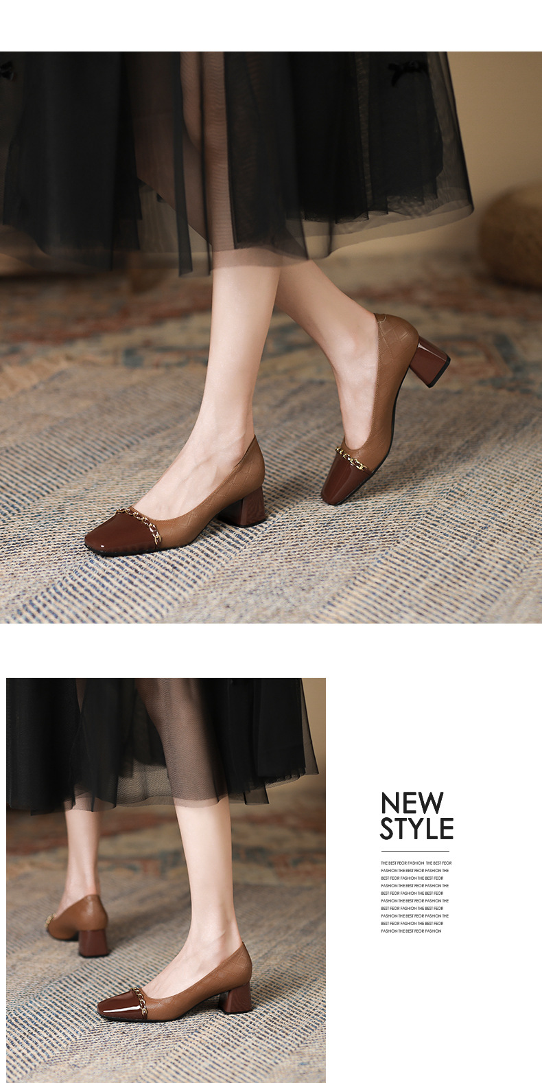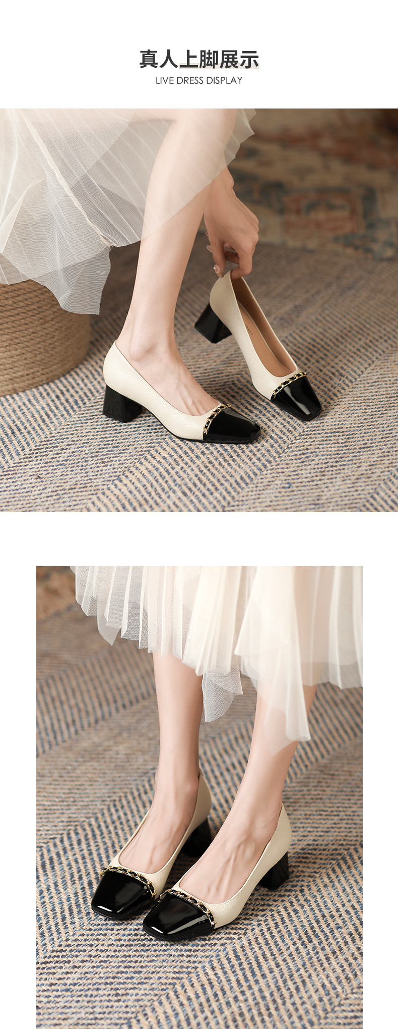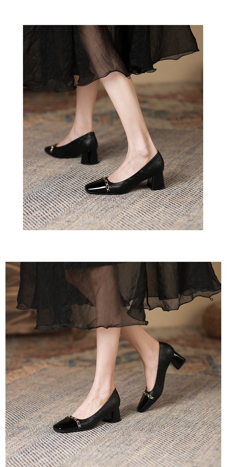 Giày Mary Jane cho nữ, kiểu dáng cổ điển phong cách Anh, điểm nhấn là dây kim loại bản nhỏ tinh tế. Mẫu giày này kết hợp hai tông màu hài hòa, tạo nên vẻ đẹp mới lạ. Đế thấp vừa phải, kiểu đế thô chắc chắn giúp bạn di chuyển thoải mái cả ngày. Phù hợp để phối cùng nhiều trang phục như váy, quần âu trong tiết trời thu. Sử dụng bằng cách xỏ chân và cài khóa dây kim loại cho vừa vặn. | Tên sản phẩm: Giày Cao Gót Nữ Gót Vuông Hàng Mùa Xuân Thu Đông Phục Cổ Cổ Điển - Giày Dép Nữ | Mã sản phẩm: L0542 - Giá: 890.000đ | Mã nhà sản xuất: HURYAN-G03Hình ảnh sản phẩm