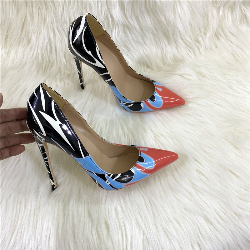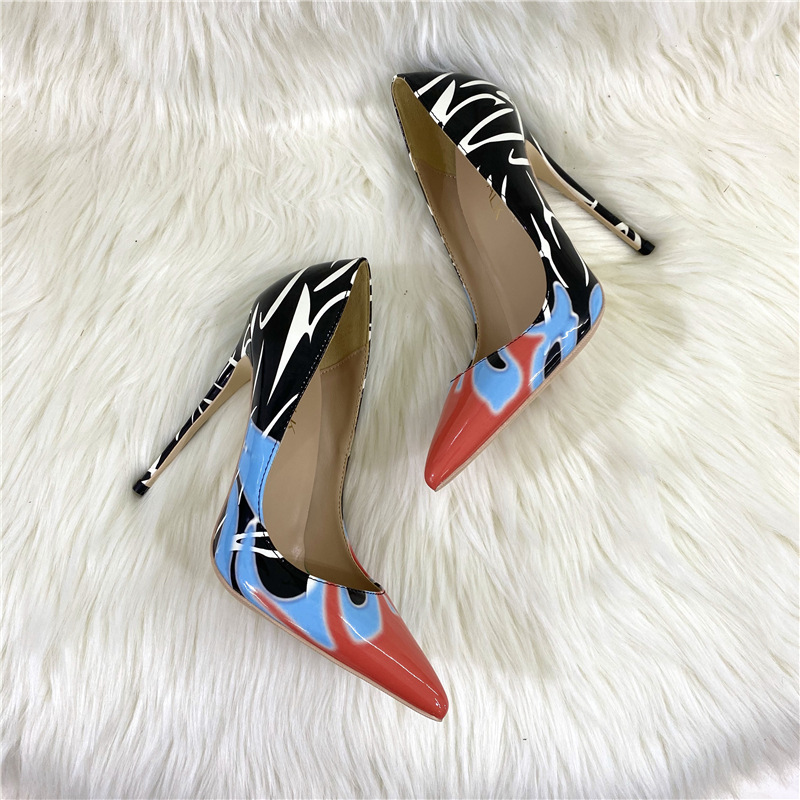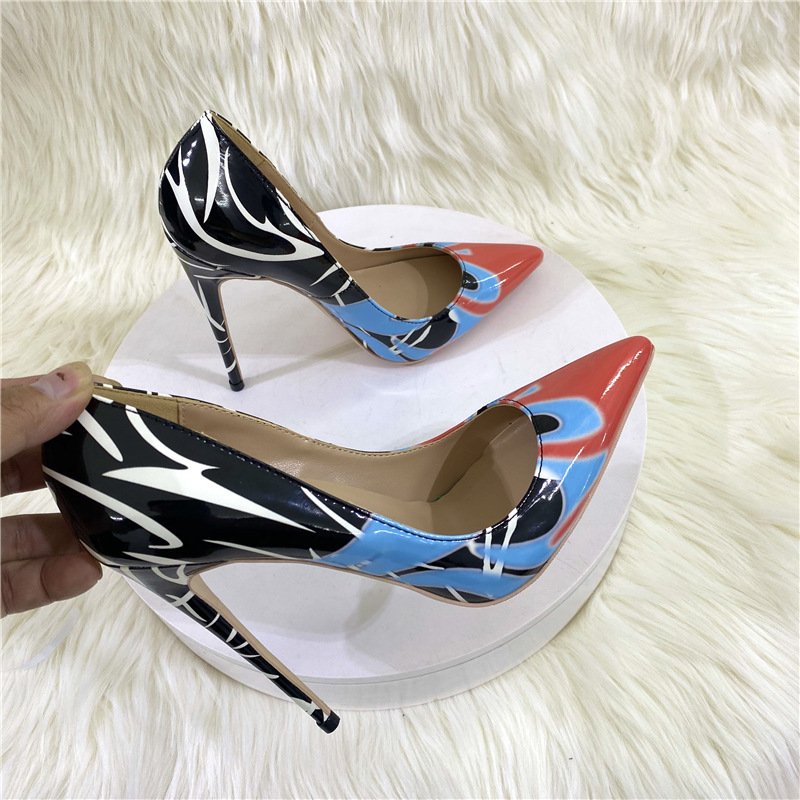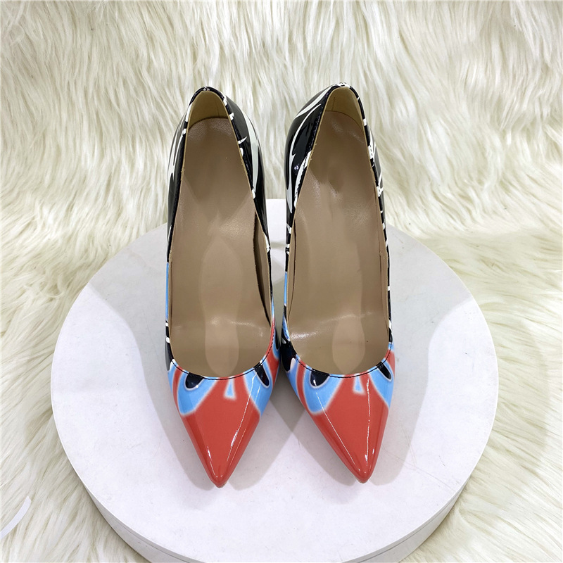 Đôi giày cao gót này có màu sắc chuyển sắc độc đáo, phối hợp họa tiết vẽ tay phóng khoáng. Phần mũi giày nhọn thanh thoát kết hợp với gót nhọn cao mười hai phân, tạo dáng vẻ hiện đại và năng động. Kiểu dáng cổ thấp ôm trọn bàn chân, phù hợp để đi làm hoặc dự tiệc. Bạn có thể kết hợp cùng nhiều loại trang phục khác nhau để tạo điểm nhấn nổi bật. | Tên sản phẩm: Giày Cao Gót Nữ Mũi Nhọn Gót Nhọn - Giày Dép Nữ | Mã sản phẩm: E9563 - Giá: 1.280.000đ | Mã nhà sản xuất: HURYNG-G04Hình ảnh sản phẩm