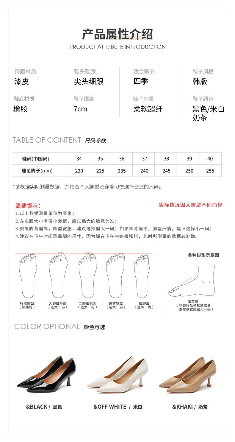 Đôi giày cao gót này mang phong cách Pháp thanh lịch, được làm từ chất liệu da bóng đẹp mắt. Mũi giày nhọn và gót thanh mảnh tôn dáng người đi một cách tinh tế. Thiết kế đơn màu dễ dàng phối hợp với nhiều trang phục khác nhau như váy, quần âu. Bạn có thể sử dụng để đi làm, dự tiệc hoặc trong những dịp giao lưu hàng ngày. | Tên sản phẩm: Giày Cao Gót Nữ Mũi Nhọn Gót Nhọn Hàng Mùa Xuân Thu Đông - Giày Dép Nữ | Mã sản phẩm: k0248 - Giá: 810.000đ | Mã nhà sản xuất: HURYAN-G03Hình ảnh sản phẩm