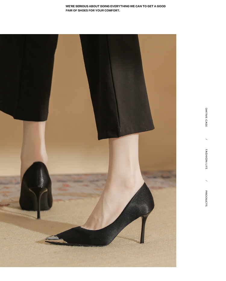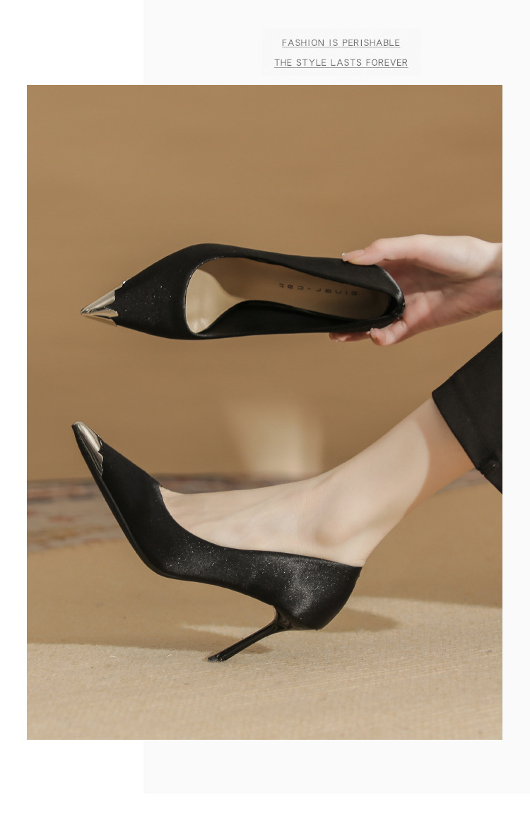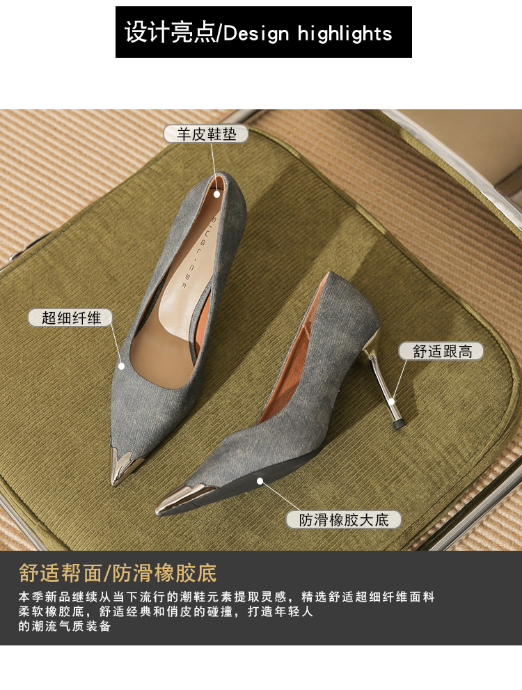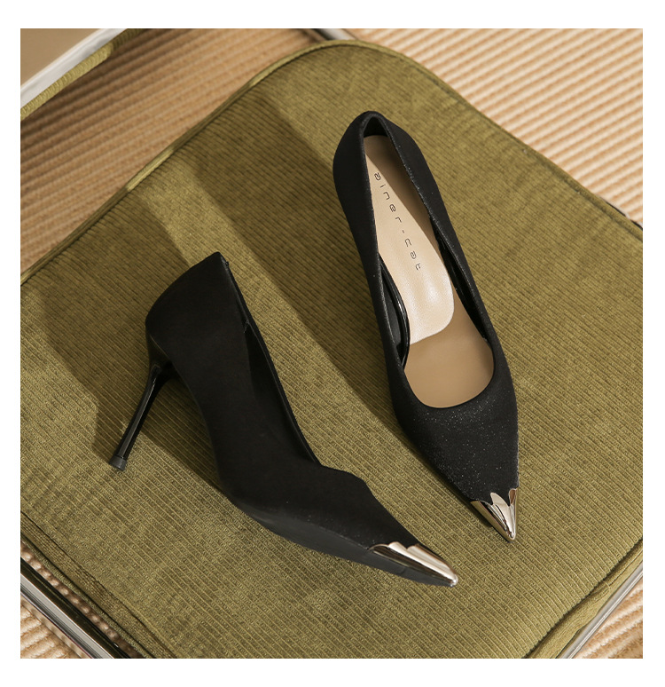 Giày cao gót nữ với phần mũi nhọn thanh lịch, điểm nhấn là chi tiết kim loại sáng tạo ở đầu mũi. Sản phẩm được làm từ chất liệu da mềm mại, mang lại cảm giác dễ chịu khi mang. Kiểu dáng cổ thấp ôm gọn bàn chân, phù hợp để phối cùng nhiều trang phục khác nhau. Bạn có thể sử dụng đôi giày này để đi làm, dự tiệc hoặc trong các dịp gặp mặt thường ngày. | Tên sản phẩm: Giày Cao Gót Nữ Mũi Nhọn Gót Nhọn Hàng Mùa Xuân Thu Đông - Giày Dép Nữ | Mã sản phẩm: A1114 - Giá: 890.000đ | Mã nhà sản xuất: HUDS-G03Hình ảnh sản phẩm