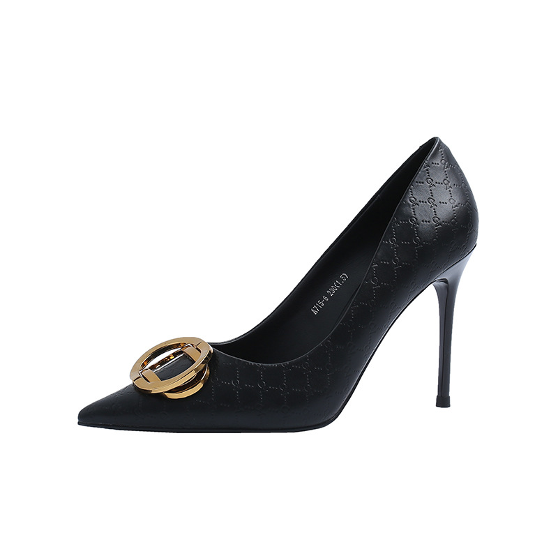 Giày cao gót nữ với điểm nhấn là chi tiết khóa tròn kim loại sáng bóng. Form giày ôm chân, mũi nhọn thanh lịch cùng gót nhọn vững chãi. Thiết kế này có màu đen dễ dàng phối cùng nhiều trang phục khác nhau. Sản phẩm phù hợp để đi làm, dự tiệc hoặc tạo điểm nhấn cho các buổi gặp mặt. Bạn có thể mang cùng quần tây, chân váy hoặc quần jeans để có vẻ ngoài ấn tượng. | Tên sản phẩm: Giày Cao Gót Nữ Mũi Nhọn Gót Nhọn Hàng Mùa Xuân Thu Đông - Giày Dép Nữ | Mã sản phẩm: A4970 - Giá: 1.070.000đ | Mã nhà sản xuất: ZHDIA-G03Hình ảnh sản phẩm