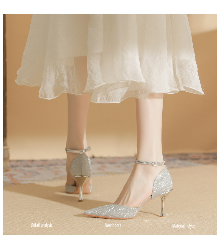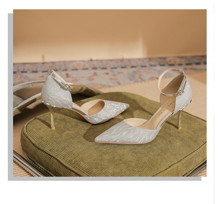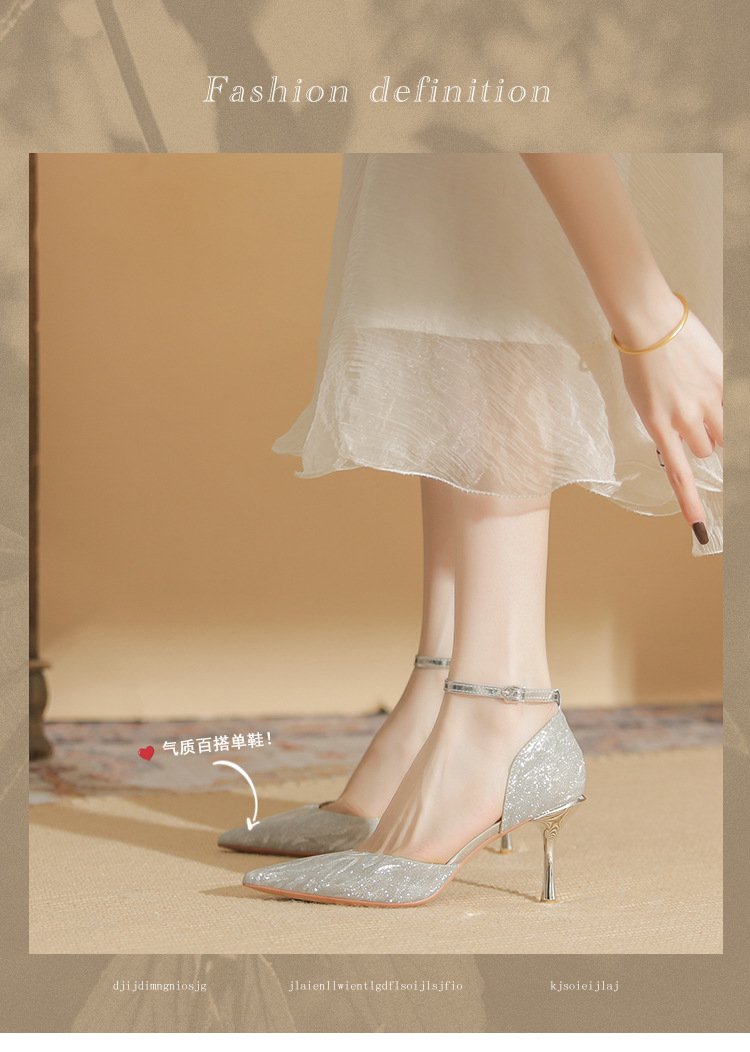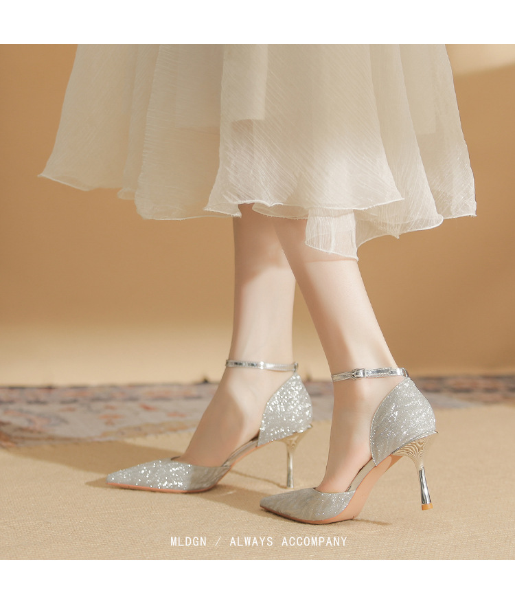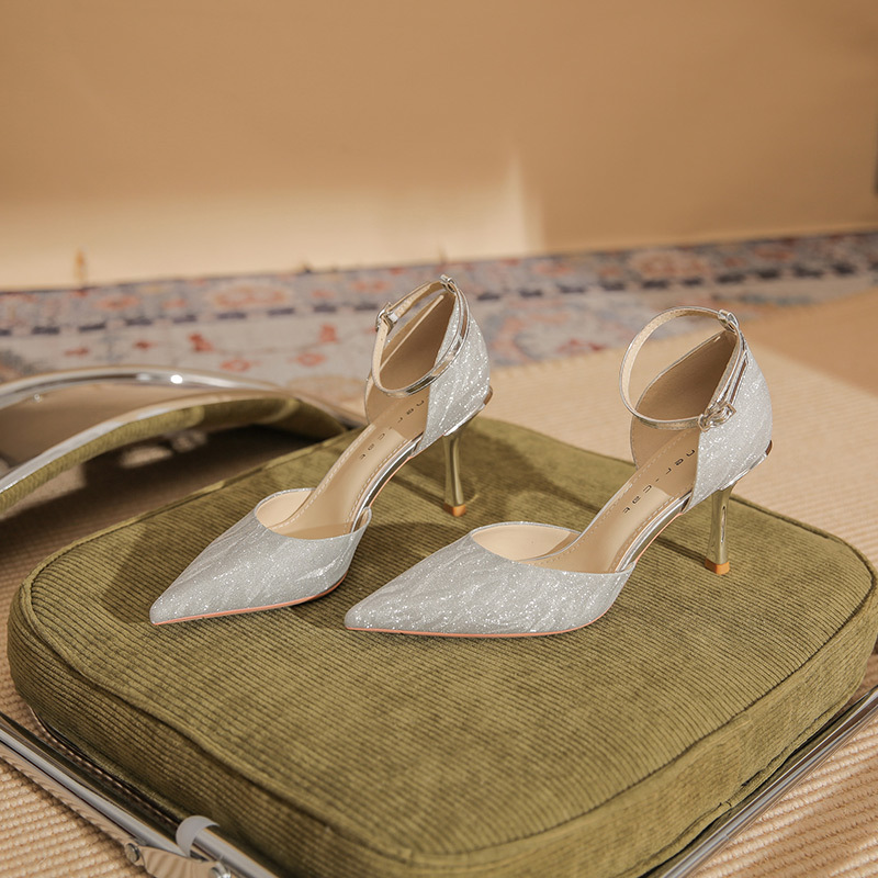 Giày cao gót dành cho nữ, kiểu dáng mới cho mùa xuân. Mũi giày nhọn thanh thoát, phù hợp cho các dịp như cô dâu trong ngày cưới hay đi tiệc. Chất liệu phối hợp vải mềm và điểm nhấn là các chi tiết óng ánh tinh tế. Thiết kế cổ thấp, gót nhọn vừa phải giúp tôn dáng. Sử dụng tốt nhất khi kết hợp cùng váy dự tiệc hoặc trang phục dạo phố. | Tên sản phẩm: Giày Cao Gót Nữ Mũi Nhọn Gót Nhọn Hàng Mùa Xuân Thu Đông Dùng Trong Lễ Cưới - Giày Dép Nữ | Mã sản phẩm: A1072 - Giá: 800.000đ | Mã nhà sản xuất: HUDS-G02Hình ảnh sản phẩm
