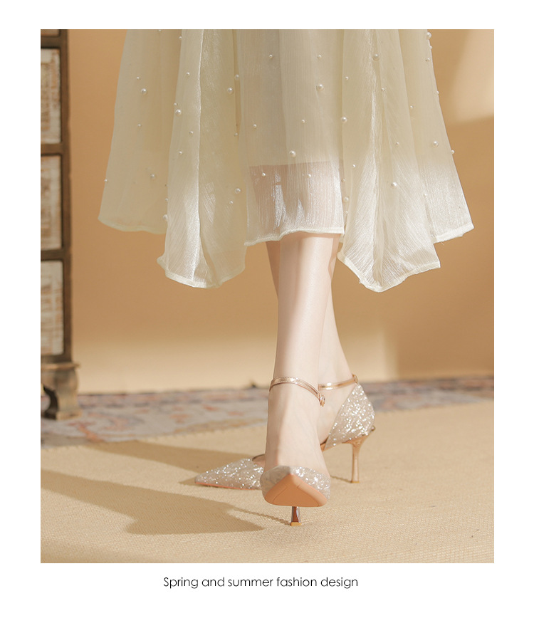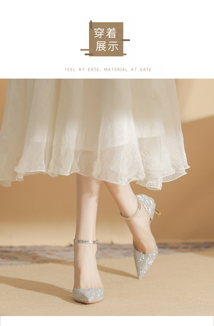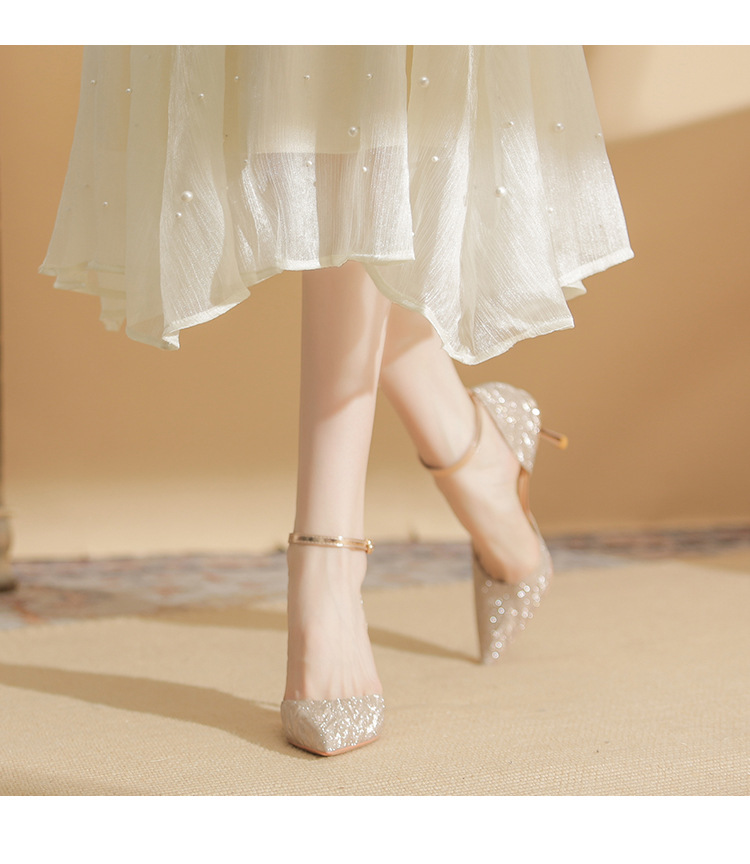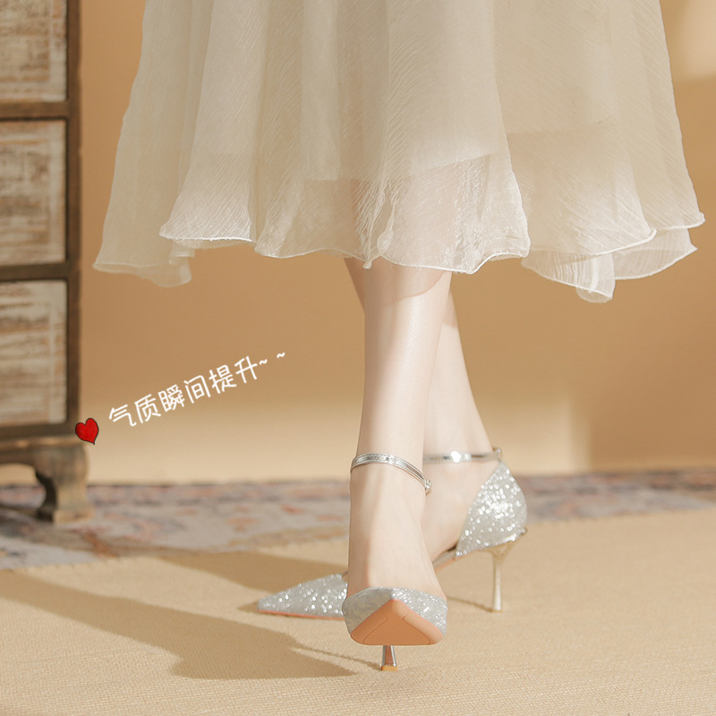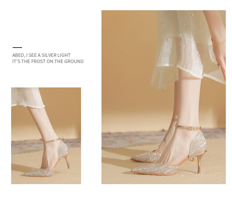 Giày cao gót dành cho nữ, kiểu dáng mới cho mùa xuân. Mũi giày nhọn thanh thoát, phù hợp cho các dịp như cô dâu trong ngày cưới hay đi tiệc. Chất liệu phối hợp vải mềm và điểm nhấn là các chi tiết óng ánh tinh tế. Thiết kế cổ thấp, gót nhọn vừa phải giúp tôn dáng. Sử dụng tốt nhất khi kết hợp cùng váy dự tiệc hoặc trang phục dạo phố. | Tên sản phẩm: Giày Cao Gót Nữ Mũi Nhọn Gót Nhọn Hàng Mùa Xuân Thu Đông Dùng Trong Lễ Cưới - Giày Dép Nữ | Mã sản phẩm: A1072 - Giá: 800.000đ | Mã nhà sản xuất: HUDS-G02Hình ảnh sản phẩm