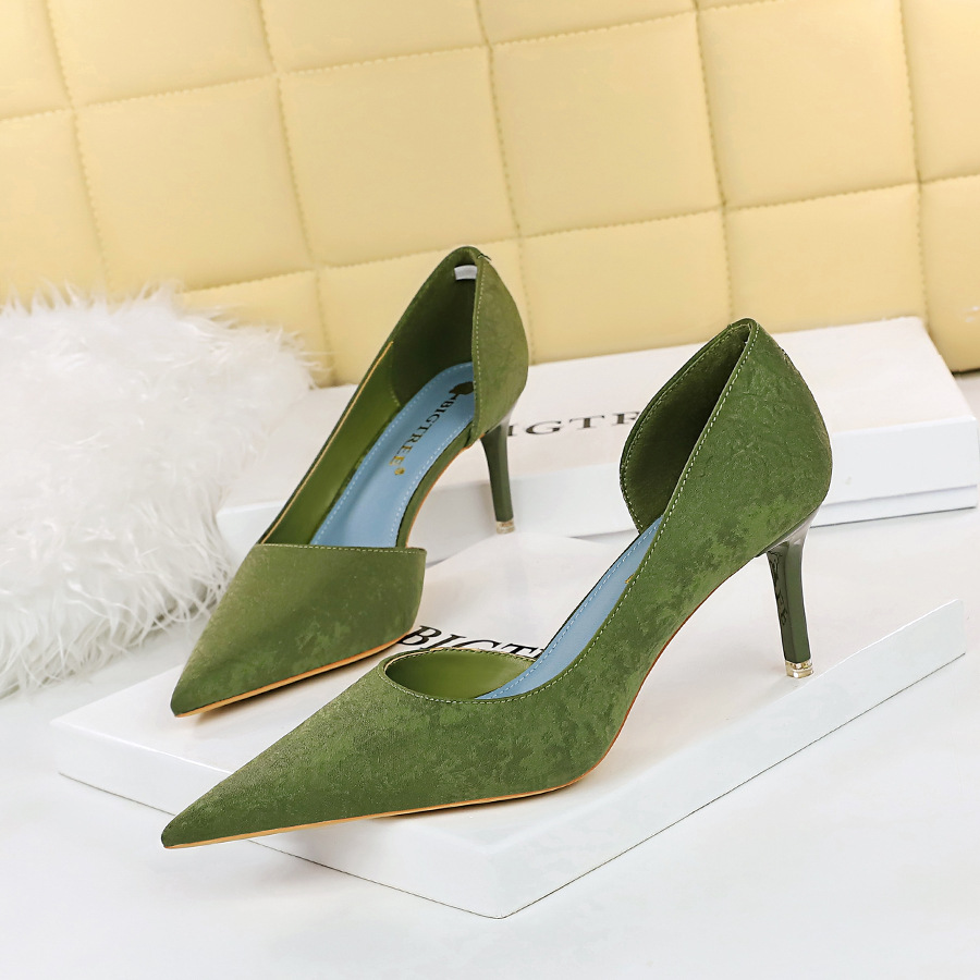 Đôi giày này mang phong cách châu Âu hiện đại, phù hợp cho nhiều dịp. Kiểu dáng mũi nhọn và gót thanh mảnh giúp tôn dáng người mặc. Phần cổ giày ôm vừa phải, kết hợp thiết kế khoét hờ ở hai bên tạo điểm nhấn tinh tế. Bề mặt giày làm từ chất liệu vải mềm, mang lại cảm giác dễ chịu. Bạn có thể phối cùng nhiều loại trang phục như quần âu hay váy liền để tạo vẻ ngoài ưa nhìn. | Tên sản phẩm: Giày Cao Gót Nữ Mũi Nhọn Gót Nhọn Phong Cách Âu Mỹ - Giày Dép Nữ | Mã sản phẩm: B0915 - Giá: 590.000đ | Mã nhà sản xuất: PITYIN-G01Hình ảnh sản phẩm