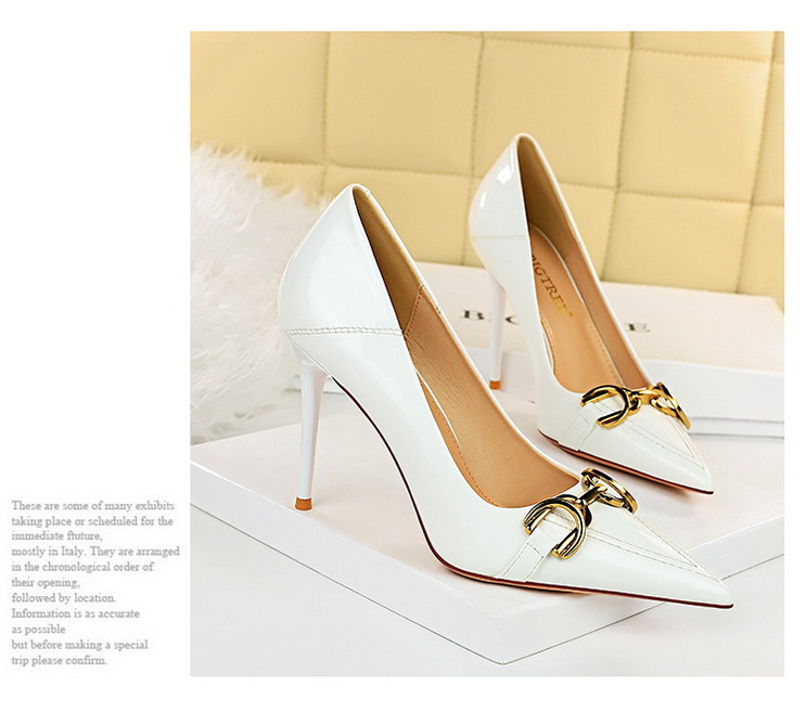 Đôi giày cao gót này có phần mũi nhọn và cổ giày thấp, tạo dáng thanh thoát. Chất liệu bề mặt bóng loáng, kết hợp cùng khóa kim loại mang đến điểm nhấn nổi bật. Kiểu dáng phù hợp cho môi trường công sở hoặc những dịp đi chơi. Bạn có thể dễ dàng phối cùng quần âu hoặc váy để có vẻ ngoài chỉn chu, lịch sự. | Tên sản phẩm: Giày Cao Gót Nữ Mũi Nhọn Gót Nhọn Phong Cách Âu Mỹ - Giày Dép Nữ | Mã sản phẩm: G1870 - Giá: 640.000đ | Mã nhà sản xuất: PITYIN-G02Hình ảnh sản phẩm