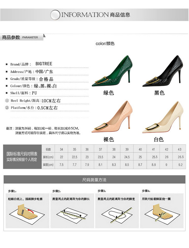 Đôi giày cao gót này mang phong cách trẻ trung, hiện đại. Kiểu dáng mũi nhọn và gót thanh mảnh giúp tôn dáng đôi chân một cách tinh tế. Phần cổ giày ôm nhẹ, kết hợp khóa kim loại tạo điểm nhấn nổi bật. Sản phẩm dễ dàng phối cùng nhiều trang phục như quần âu, váy liền. Khi sử dụng, bạn nên chọn size phù hợp để mang lại cảm giác thoải mái khi di chuyển. | Tên sản phẩm: Giày Cao Gót Nữ Mũi Nhọn Gót Nhọn Phong Cách Hàn Quốc - Giày Dép Nữ | Mã sản phẩm: B0888 - Giá: 650.000đ | Mã nhà sản xuất: PITYIN-G02Hình ảnh sản phẩm