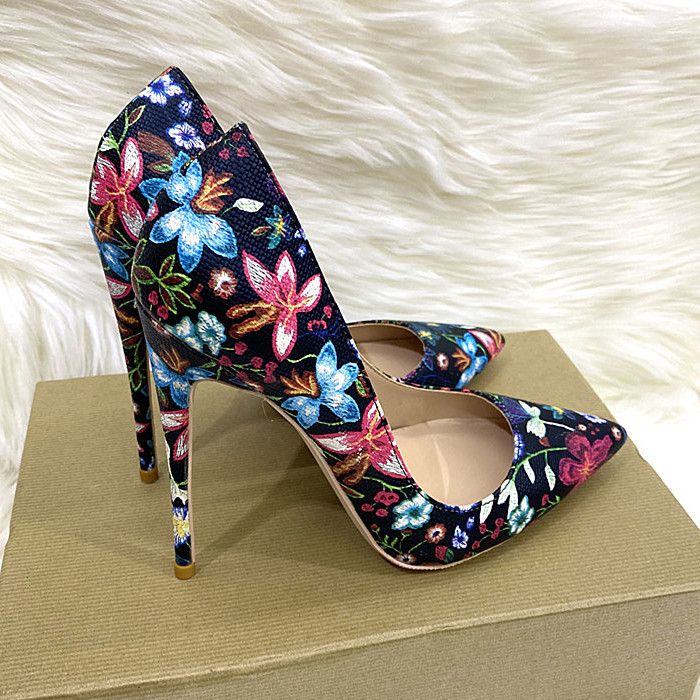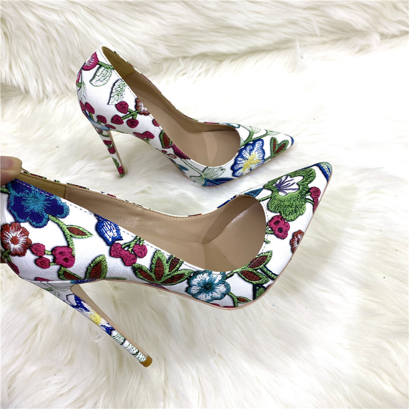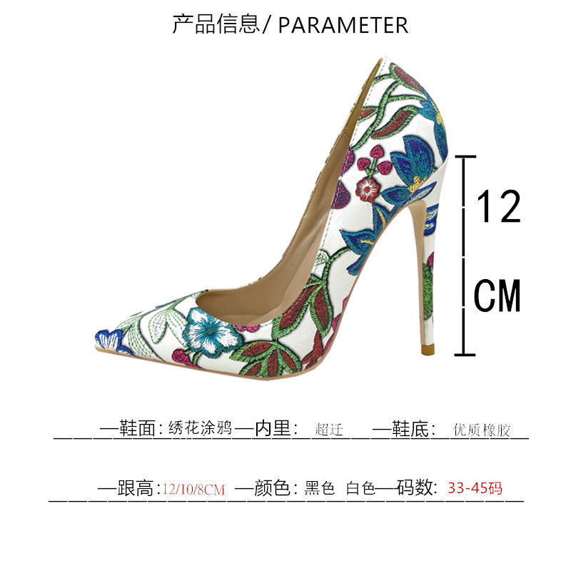Đôi giày này có phần mũi nhọn và gót nhọn cao 12 phân, tạo dáng thanh thoát cho người mang. Chất da mềm giúp ôm chân nhẹ nhàng, dễ di chuyển. Trên thân giày được điểm xuyết những họa tiết thêu và vẽ nguệch ngoạc độc đáo, phù hợp để phối cùng nhiều kiểu trang phục khác nhau. Bạn có thể sử dụng chúng để đi làm, dự tiệc hoặc trong những dịp gặp mặt thông thường. | Tên sản phẩm: Giày Cao Gót Nữ Mũi Nhọn Gót Nhọn Thêu Họa Tiết Hoa - Giày Dép Nữ | Mã sản phẩm: E9529 - Giá: 1.280.000đ | Mã nhà sản xuất: HURYNG-G04Hình ảnh sản phẩm