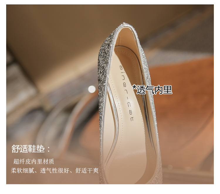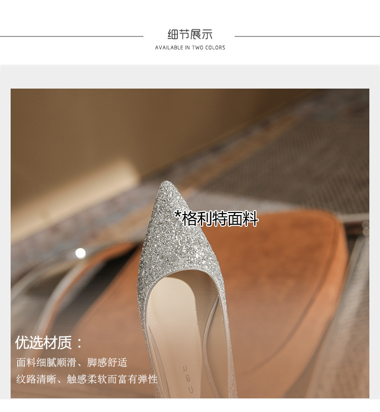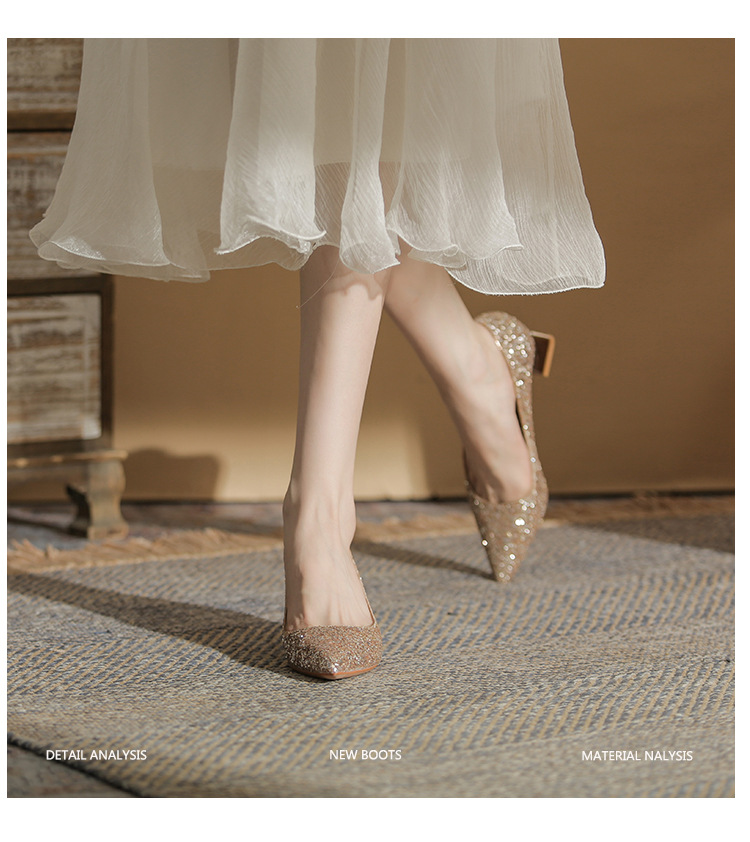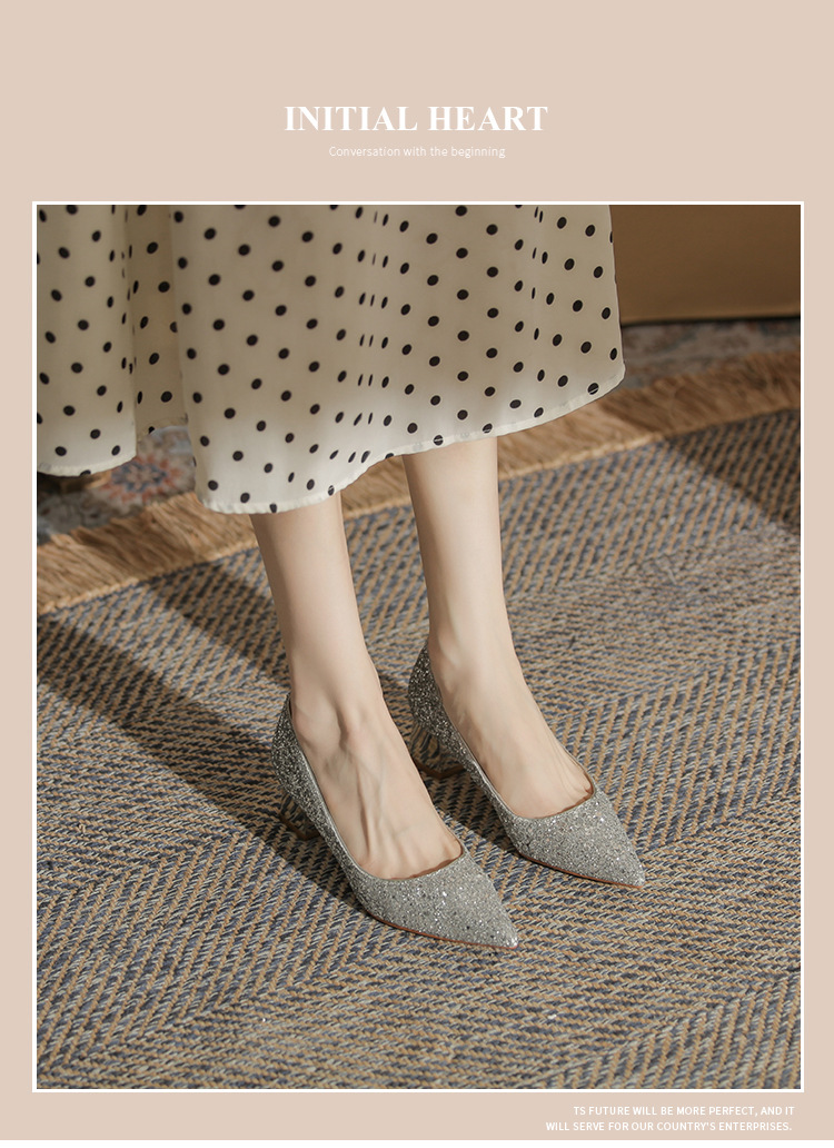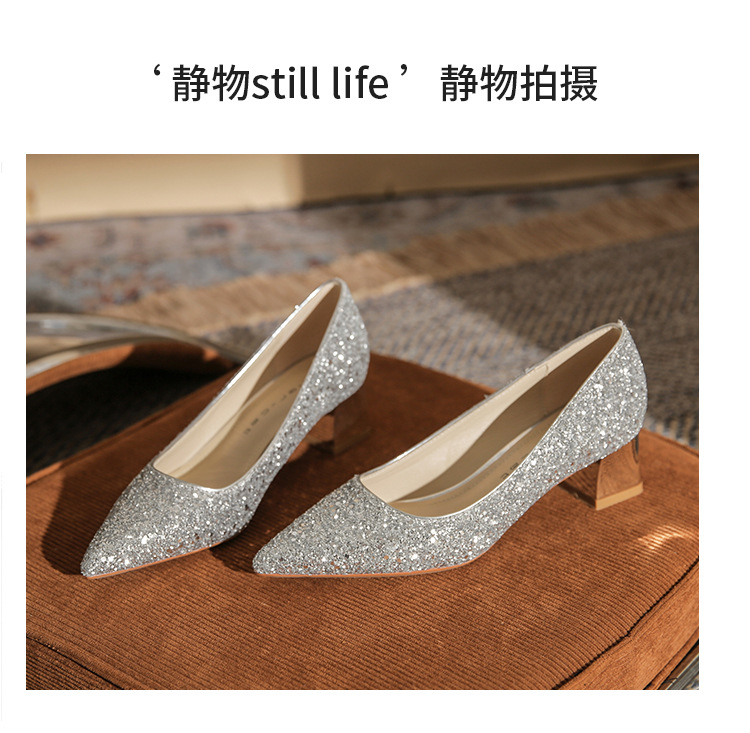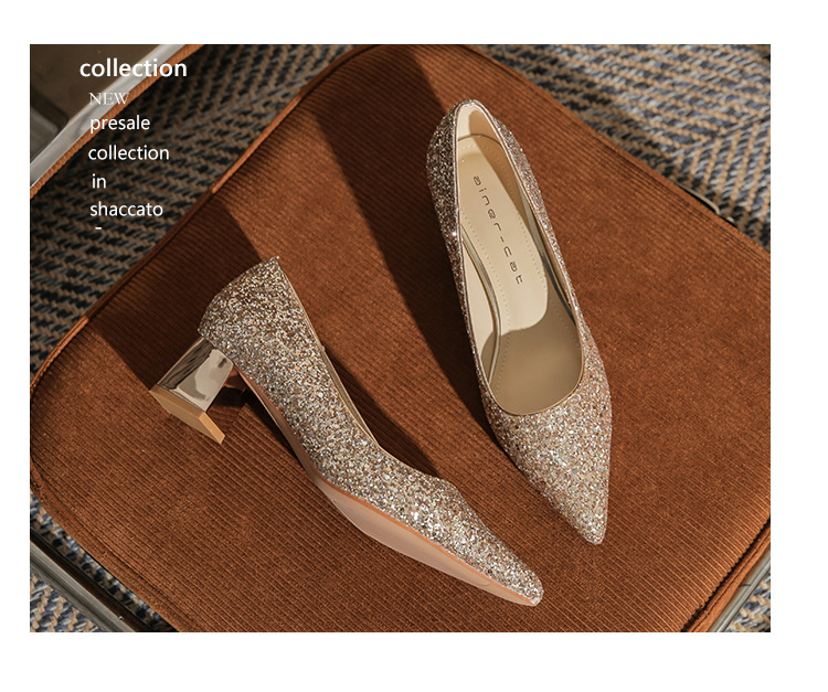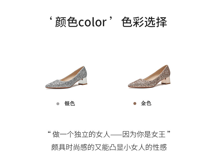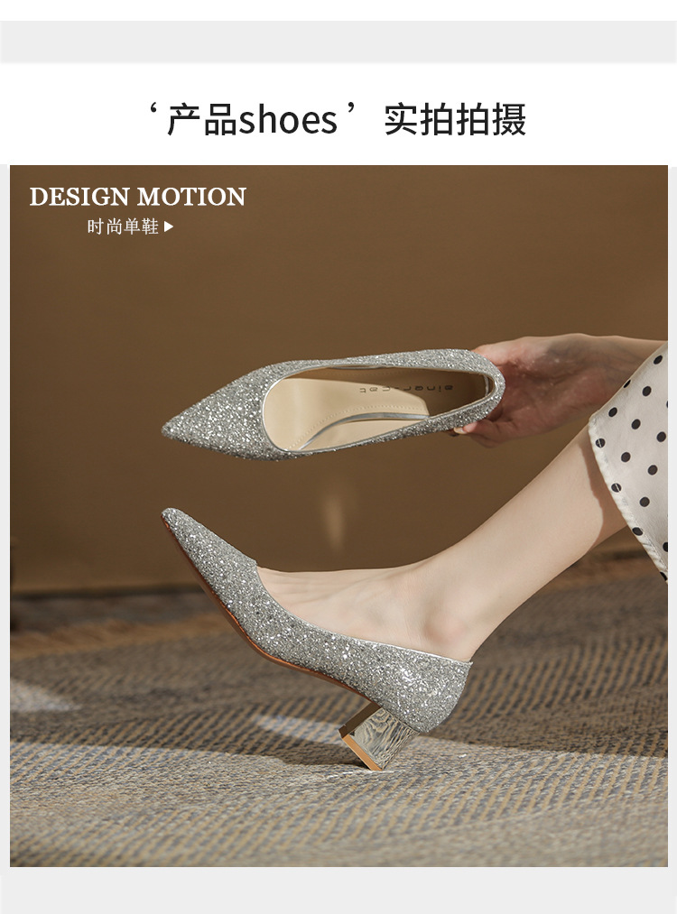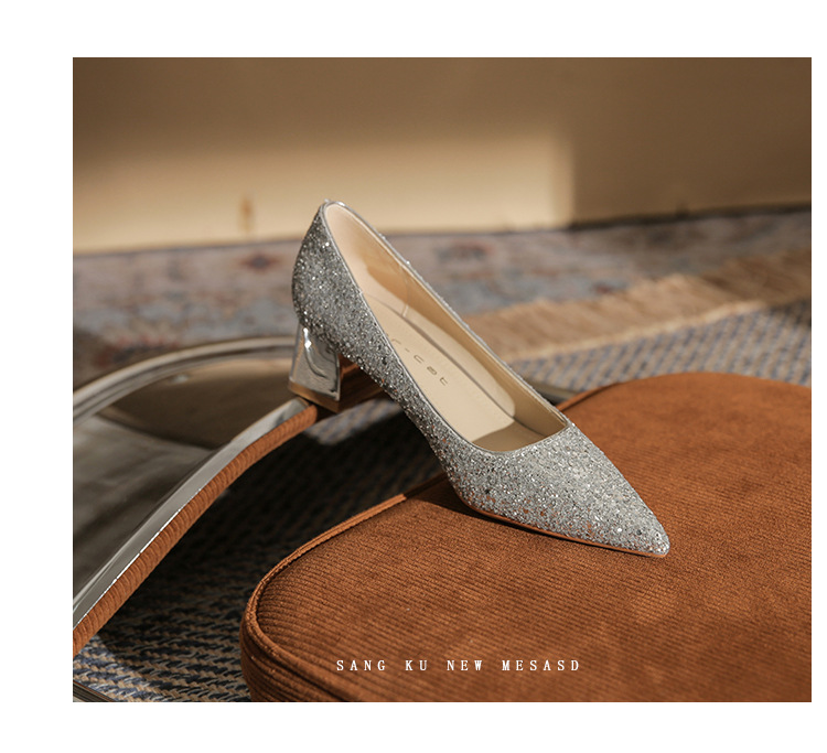 Đôi giày nữ với phần gót thấp vững chãi, kiểu dáng cổ điển dễ phối đồ. Mũi giày nhọn thanh lịch, ôm vừa vặn bàn chân. Chất liệu phủ ánh bạc lấp lánh điểm xuyến những chi tiết trong suốt như pha lê. Thiết kế cổ thấp thoải mái, phù hợp cho nhiều dịp như dự tiệc hay trong ngày trọng đại. Chỉ cần mang vào là bạn đã có ngay vẻ ngoài chỉn chu và nữ tính. | Tên sản phẩm: Giày Cao Gót Nữ Mũi Nhọn Gót Vuông Dùng Trong Lễ Cưới - Giày Dép Nữ | Mã sản phẩm: A1193 - Giá: 780.000đ | Mã nhà sản xuất: HUDS-G02Hình ảnh sản phẩm