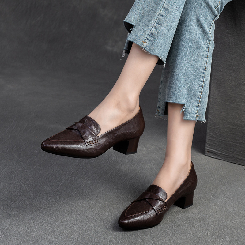 Đôi giày này có kiểu dáng cổ điển phong cách châu Âu, mũi nhọn và phần gót thấp chắc chắn. Sản phẩm được làm từ chất liệu da mềm mại, mang lại cảm giác dễ chịu khi mang cả ngày. Thiết kế cổ thấp gọn gàng, dễ dàng kết hợp với nhiều loại trang phục khác nhau như quần tây, váy hay quần jean. Bạn có thể sử dụng làm giàu đi làm hoặc dùng trong các dịp giao lưu hàng ngày. Đôi giày phù hợp để sử dụng trong mùa xuân và những ngày thời tiết ấm áp. | Tên sản phẩm: Giày Cao Gót Nữ Mũi Nhọn Gót Vuông Hàng Mùa Xuân Thu Đông - Giày Dép Nữ | Mã sản phẩm: B3217 - Giá: 1.900.000đ | Mã nhà sản xuất: SHNTEZ-G05Hình ảnh sản phẩm