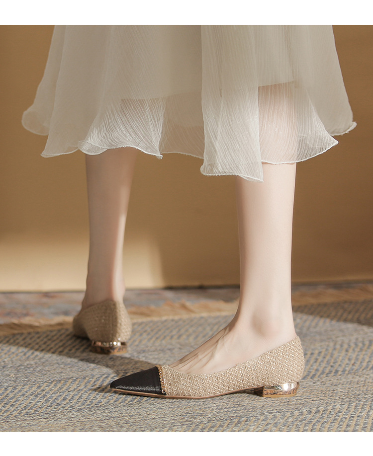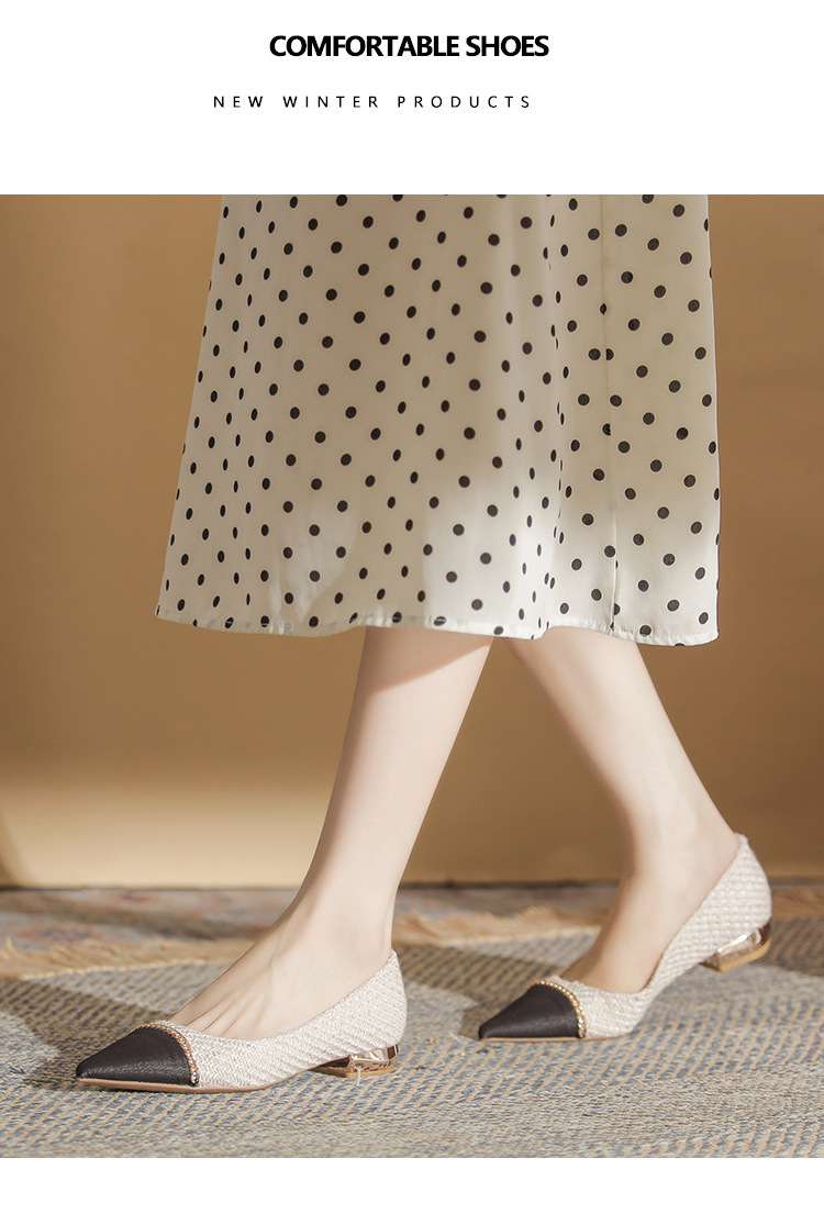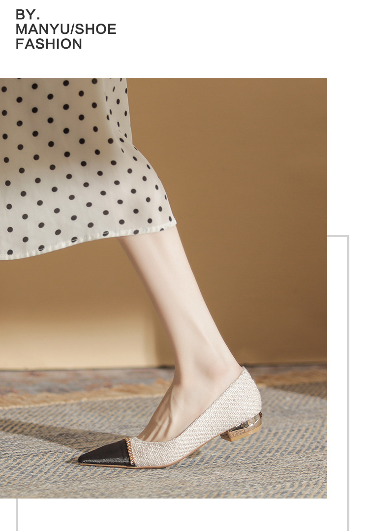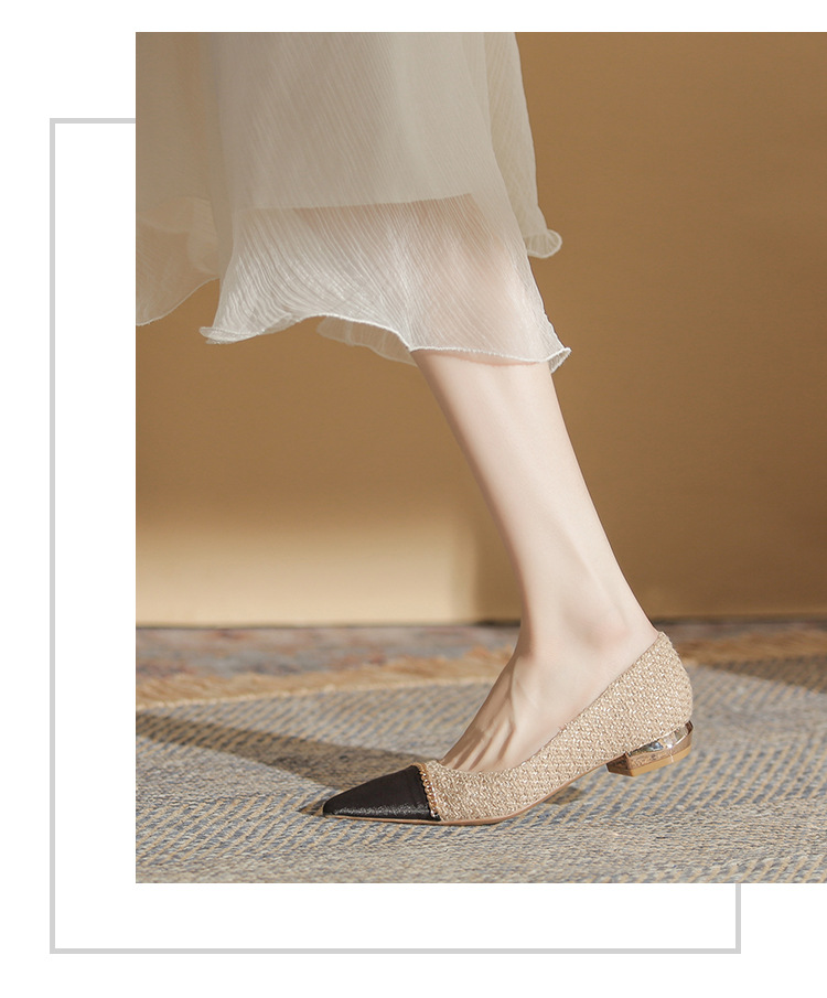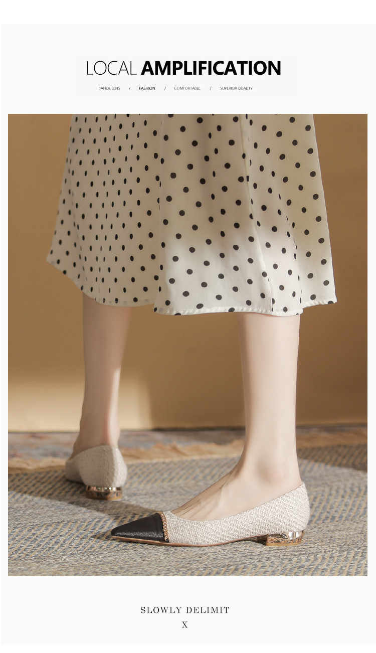 Giày bệt mũi nhọn dành cho nữ, kiểu dáng thanh lịch kết hợp hai tông màu trang nhã. Sản phẩm được làm từ chất liệu da mềm mại, mang lại cảm giác dễ chịu khi mang. Phần gót được thiết kế chắc chắn, tạo dáng đứng và hỗ trợ nâng đỡ bàn chân tốt. Kiểu giày này dễ dàng phối cùng nhiều loại trang phục như quần âu, chân váy để đi làm, đi chơi hoặc dự tiệc nhẹ. Bạn chỉ cần chọn cỡ vừa vặn và vệ sinh bằng khăn mềm để giữ giày bền đẹp. | Tên sản phẩm: Giày Cao Gót Nữ Mũi Nhọn Gót Vuông Hàng Mùa Xuân Thu Đông - Giày Dép Nữ | Mã sản phẩm: A1101 - Giá: 810.000đ | Mã nhà sản xuất: HUDS-G03Hình ảnh sản phẩm