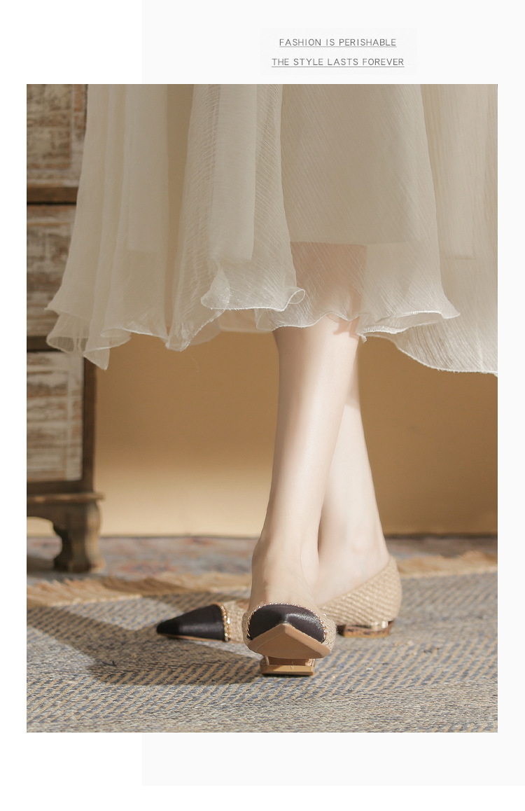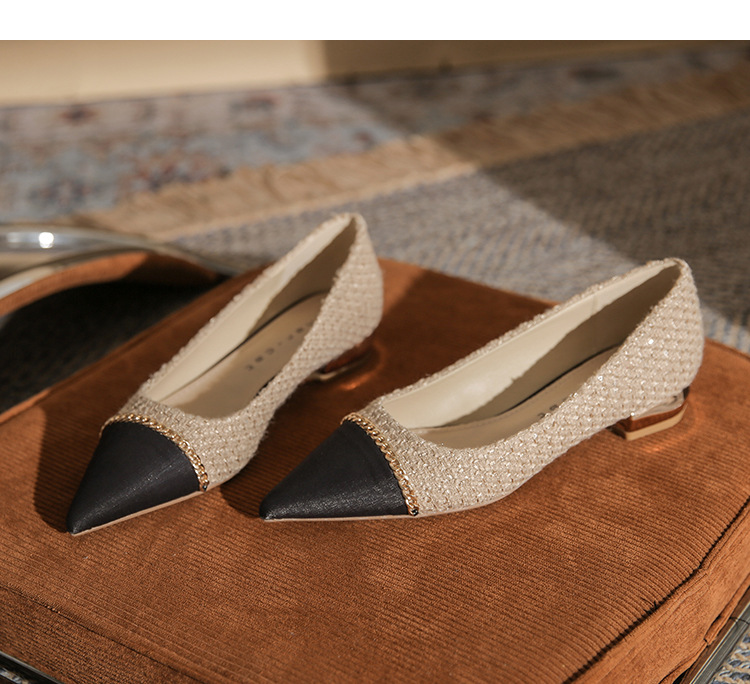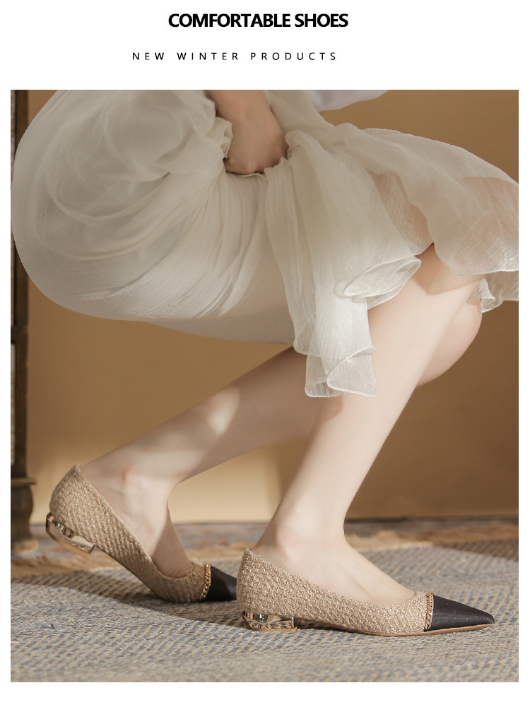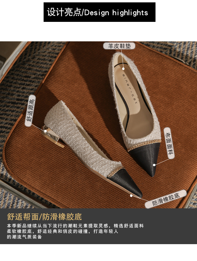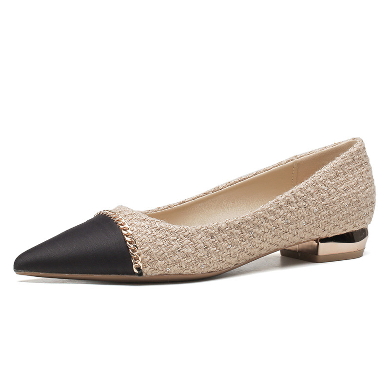 Giày bệt mũi nhọn dành cho nữ, kiểu dáng thanh lịch kết hợp hai tông màu trang nhã. Sản phẩm được làm từ chất liệu da mềm mại, mang lại cảm giác dễ chịu khi mang. Phần gót được thiết kế chắc chắn, tạo dáng đứng và hỗ trợ nâng đỡ bàn chân tốt. Kiểu giày này dễ dàng phối cùng nhiều loại trang phục như quần âu, chân váy để đi làm, đi chơi hoặc dự tiệc nhẹ. Bạn chỉ cần chọn cỡ vừa vặn và vệ sinh bằng khăn mềm để giữ giày bền đẹp. | Tên sản phẩm: Giày Cao Gót Nữ Mũi Nhọn Gót Vuông Hàng Mùa Xuân Thu Đông - Giày Dép Nữ | Mã sản phẩm: A1101 - Giá: 810.000đ | Mã nhà sản xuất: HUDS-G03Hình ảnh sản phẩm