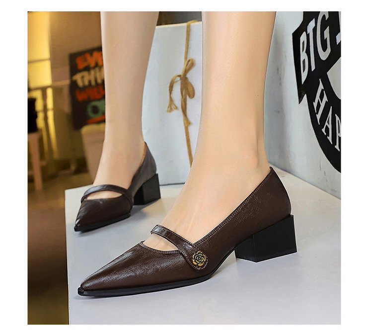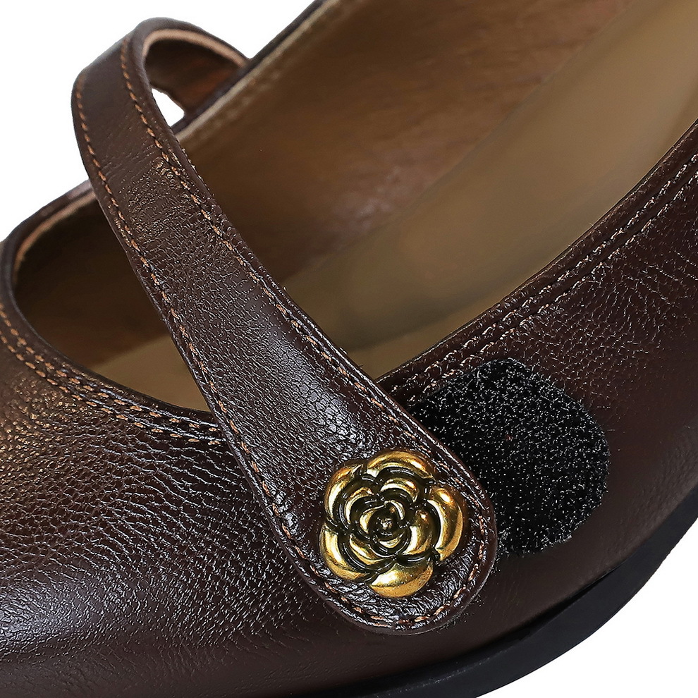 Đôi giày này mang phong cách cổ điển châu Âu với kiểu dáng Mary Jane thanh lịch. Mũi giày nhọn nhẹ nhàng cùng phần đế thấp vững chãi, tạo nên vẻ đẹp dịu dàng và thoải mái khi di chuyển. Phía trước được điểm xuyến họa tiết hoa trà tinh tế kết hợp khóa ngang mảnh m. Thiết kế cổ giày thấp ôm khít bàn chân, phù hợp để phối cùng nhiều loại trang phục khác nhau. Sử dụng bằng cách xỏ chân vào và cài khóa là đã sẵn sàng cho một ngày dài năng động. | Tên sản phẩm: Giày Cao Gót Nữ Mũi Nhọn Gót Vuông Họa Tiết Hoa Phong Cách Âu Mỹ - Giày Dép Nữ | Mã sản phẩm: B0979 - Giá: 610.000đ | Mã nhà sản xuất: PITYIN-G02Hình ảnh sản phẩm