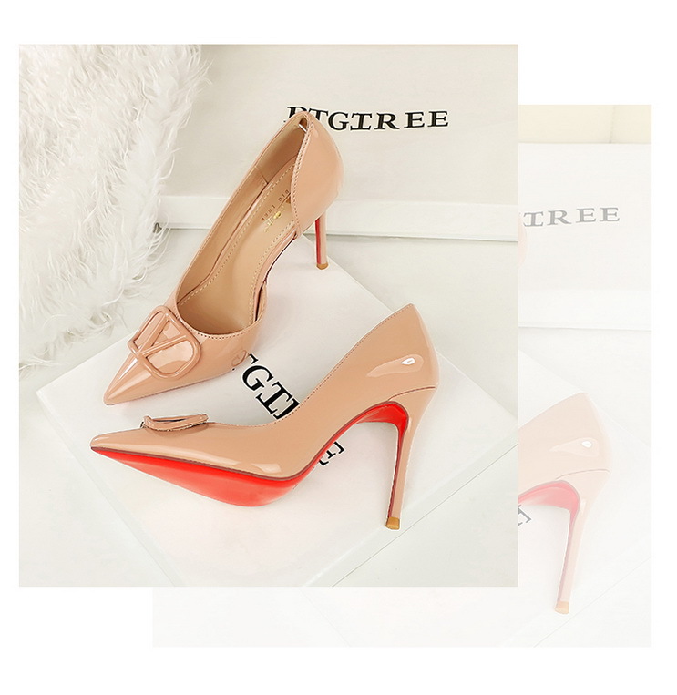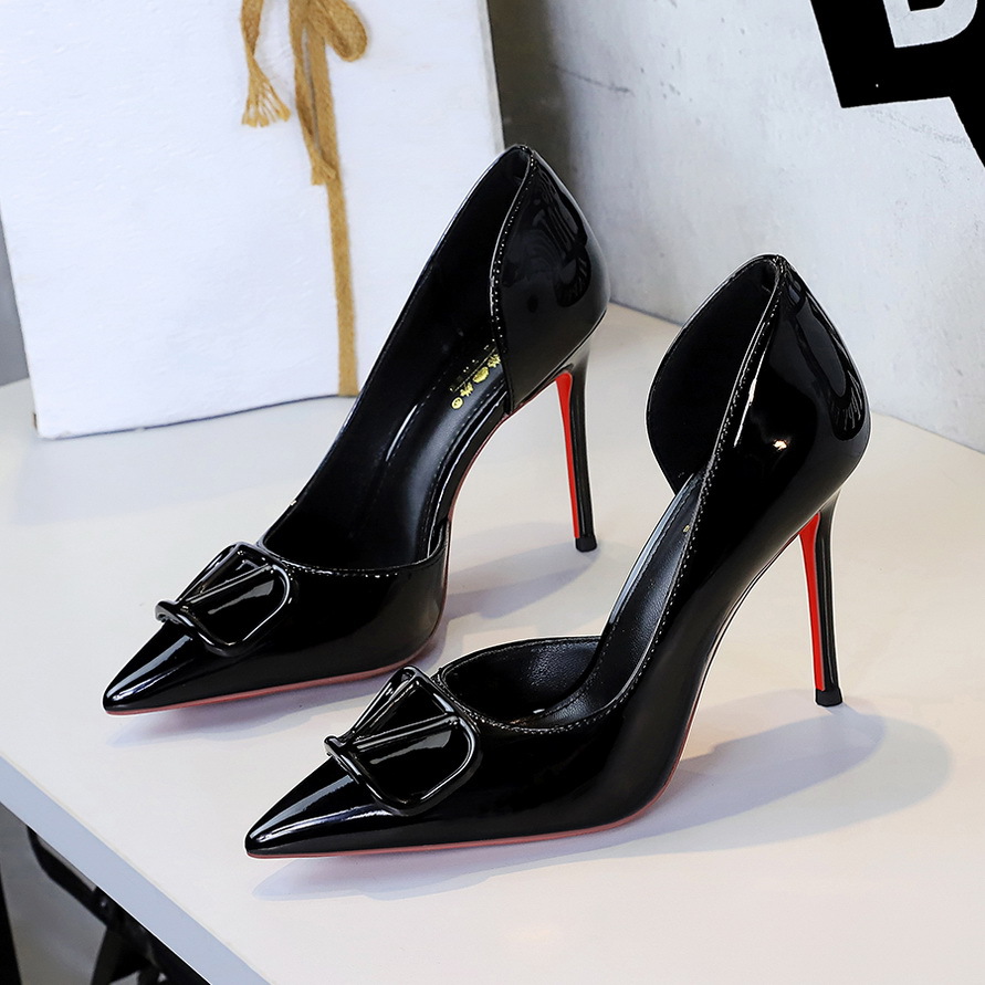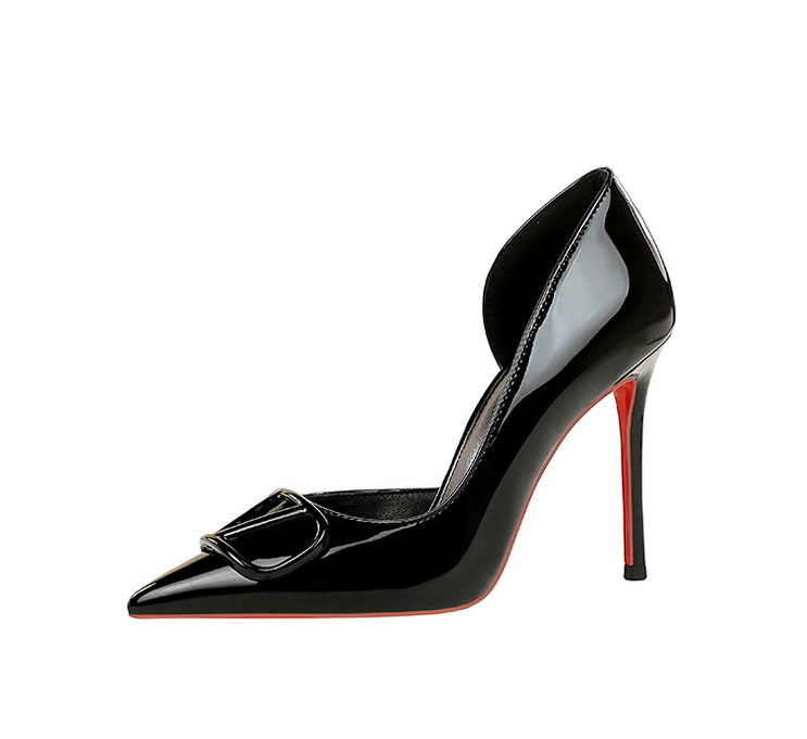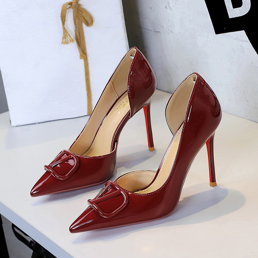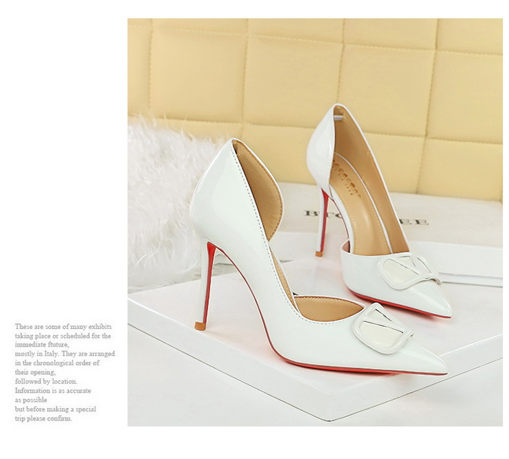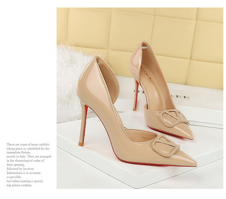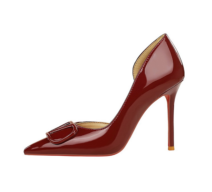 Đôi giày này có phần mũi nhọn vuốt dài tạo dáng thanh thoát. Điểm nhấn là chi tiết khóa chữ V độc đáo ở mặt trước, kết hợp cùng khoét hở tinh tế bên hông. Chất liệu bóng mịn ôm trọn đôi chân, cùng với gót cao vừa phải giúp tôn lên vẻ đẹp của người mang. Kiểu dáng phù hợp để phối cùng nhiều loại trang phục khác nhau. Khi sử dụng, chỉ cần gài khóa chữ V là đã có ngay vẻ ngoài ấn tượng. | Tên sản phẩm: Giày Cao Gót Nữ Mũi Nhọn Phong Cách Âu Mỹ - Giày Dép Nữ | Mã sản phẩm: B1076 - Giá: 700.000đ | Mã nhà sản xuất: PITYIN-G02Hình ảnh sản phẩm