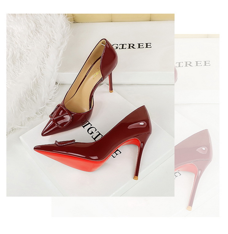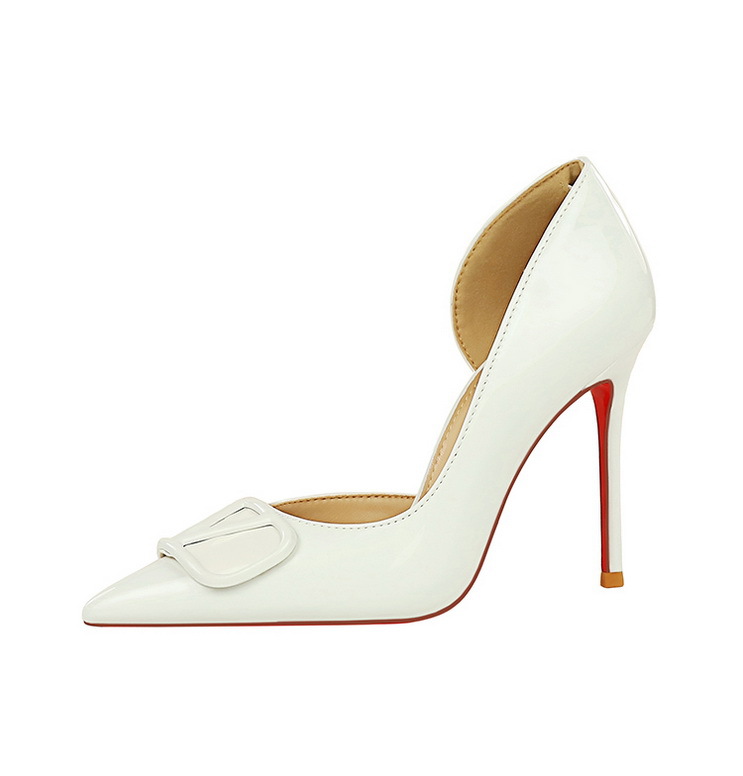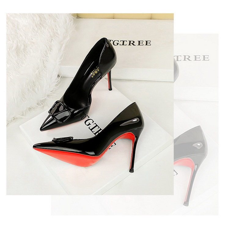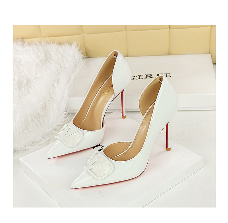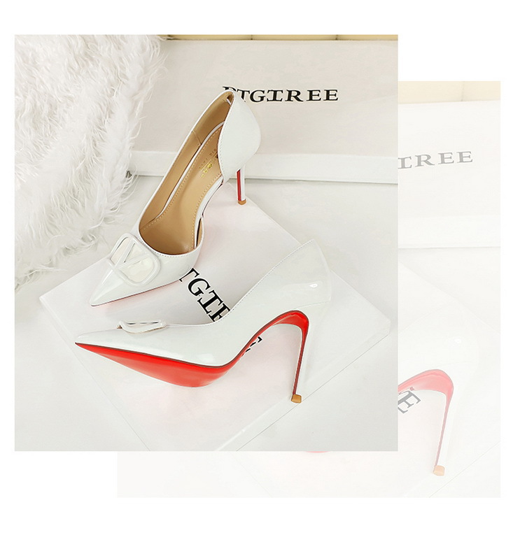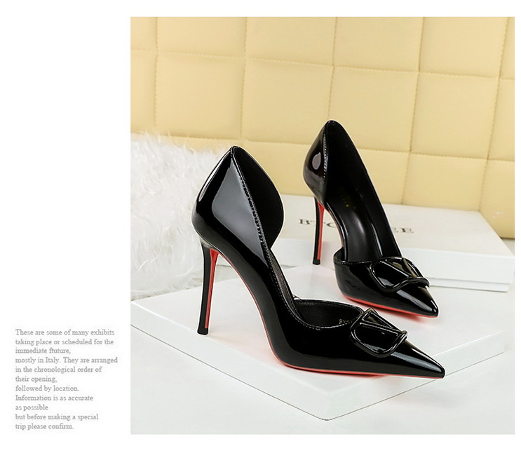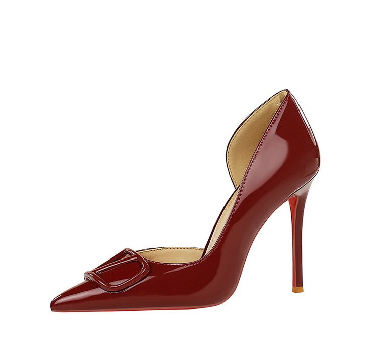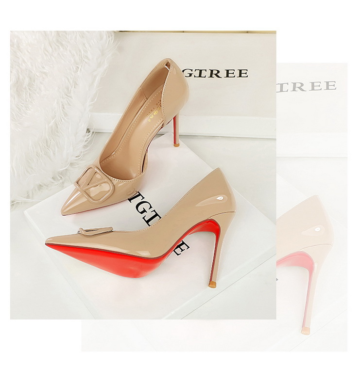 Đôi giày này có phần mũi nhọn vuốt dài tạo dáng thanh thoát. Điểm nhấn là chi tiết khóa chữ V độc đáo ở mặt trước, kết hợp cùng khoét hở tinh tế bên hông. Chất liệu bóng mịn ôm trọn đôi chân, cùng với gót cao vừa phải giúp tôn lên vẻ đẹp của người mang. Kiểu dáng phù hợp để phối cùng nhiều loại trang phục khác nhau. Khi sử dụng, chỉ cần gài khóa chữ V là đã có ngay vẻ ngoài ấn tượng. | Tên sản phẩm: Giày Cao Gót Nữ Mũi Nhọn Phong Cách Âu Mỹ - Giày Dép Nữ | Mã sản phẩm: B1076 - Giá: 700.000đ | Mã nhà sản xuất: PITYIN-G02Hình ảnh sản phẩm