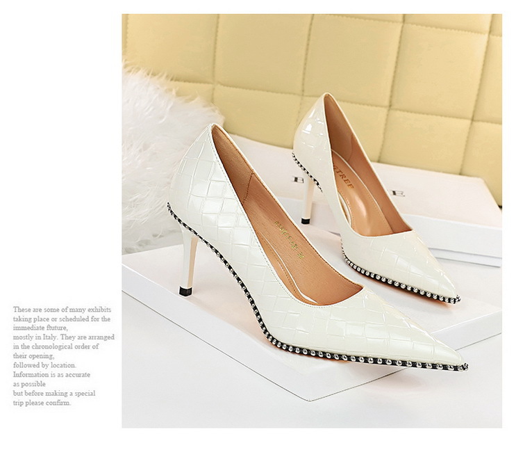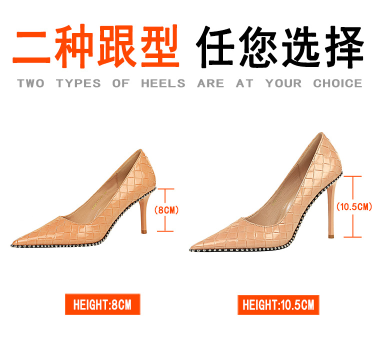 Đôi giày này có kiểu dáng phong cách châu Âu hiện đại, mũi nhọn và cổ thấp tạo dáng thanh lịch. Chất da bóng kết hợp họa tiết dệt cùng dây kim loại nhỏ tăng thêm điểm nhấn. Đế cao vừa phải giúp tôn dáng và dễ dàng phối đồ. Bạn có thể mang nó để đi chơi, dự tiệc hoặc kết hợp với nhiều trang phục khác nhau trong đời sống hằng ngày. | Tên sản phẩm: Giày Cao Gót Nữ Mũi Nhọn Phong Cách Âu Mỹ - Giày Dép Nữ | Mã sản phẩm: G1839 - Giá: 640.000đ | Mã nhà sản xuất: PITYIN-G02Hình ảnh sản phẩm