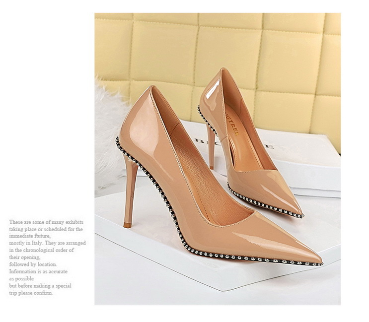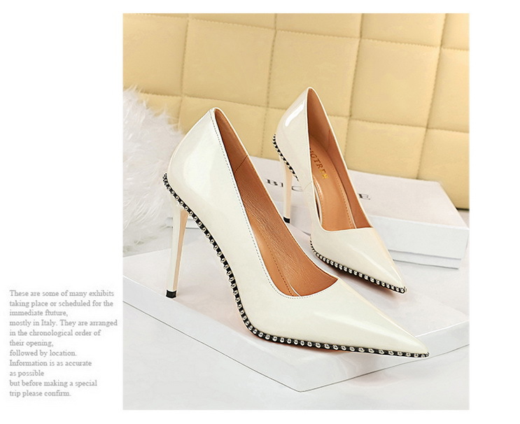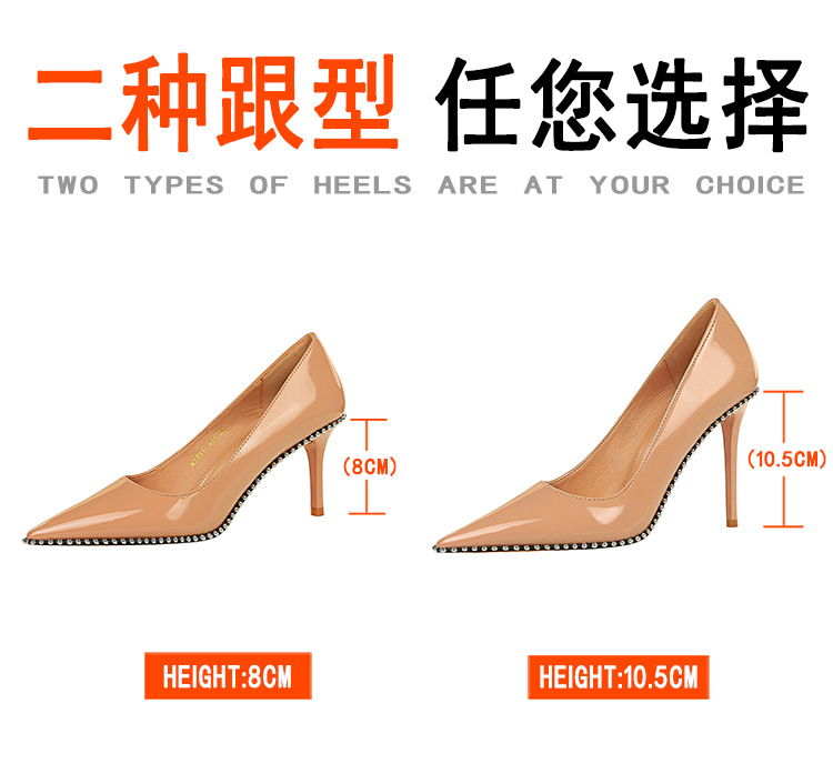 Đôi giày này có kiểu dáng cổ điển với mũi nhọn và phần cổ thấp. Chất liệu bóng bẩy tạo điểm nhấn. Sản phẩm kết hợp các chi tiết như đinh tán và dây xích kim loại, mang đến vẻ ngoài cá tính. Phần gót rất cao giúp tôn dáng người sử dụng. Bạn có thể dễ dàng phối với nhiều trang phục khác nhau để tạo nên phong cách riêng. | Tên sản phẩm: Giày Cao Gót Nữ Mũi Nhọn Phong Cách Âu Mỹ - Giày Dép Nữ | Mã sản phẩm: G1842 - Giá: 640.000đ | Mã nhà sản xuất: PITYIN-G02Hình ảnh sản phẩm