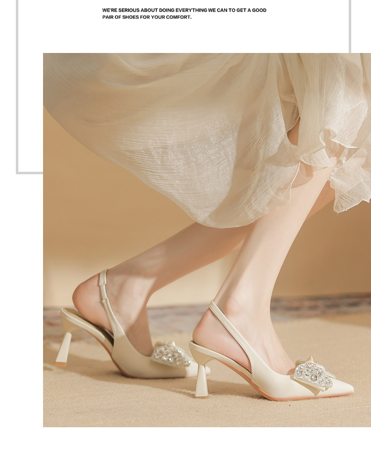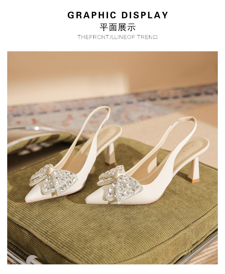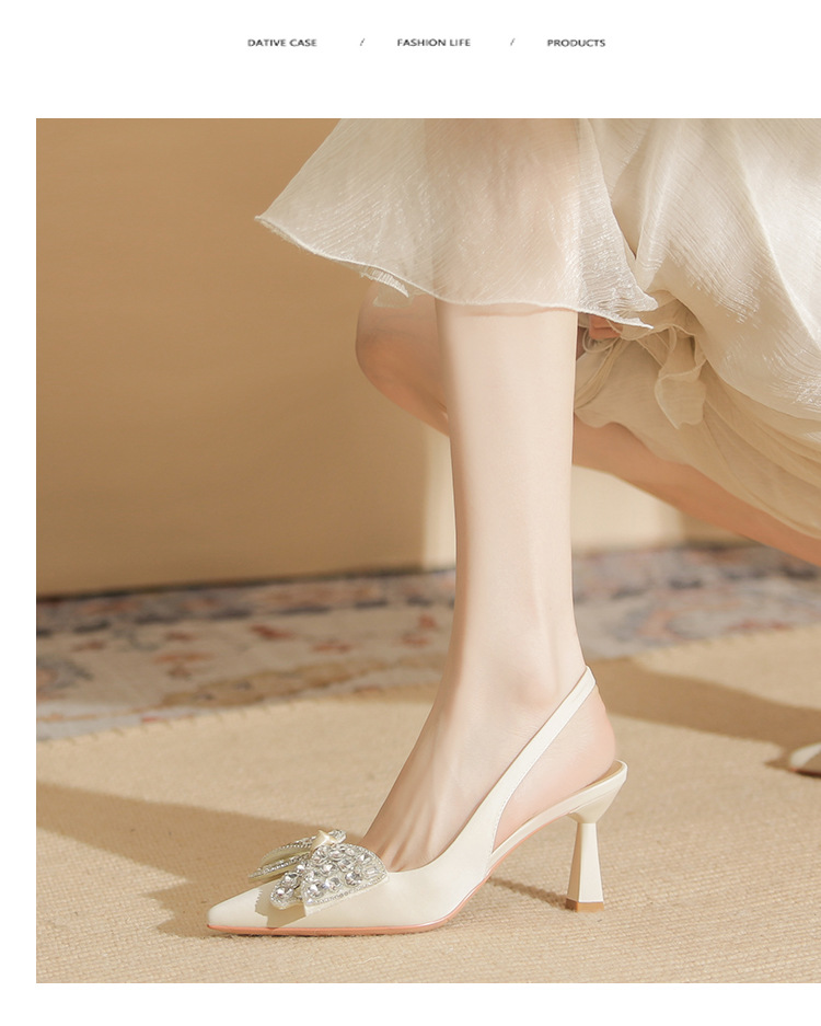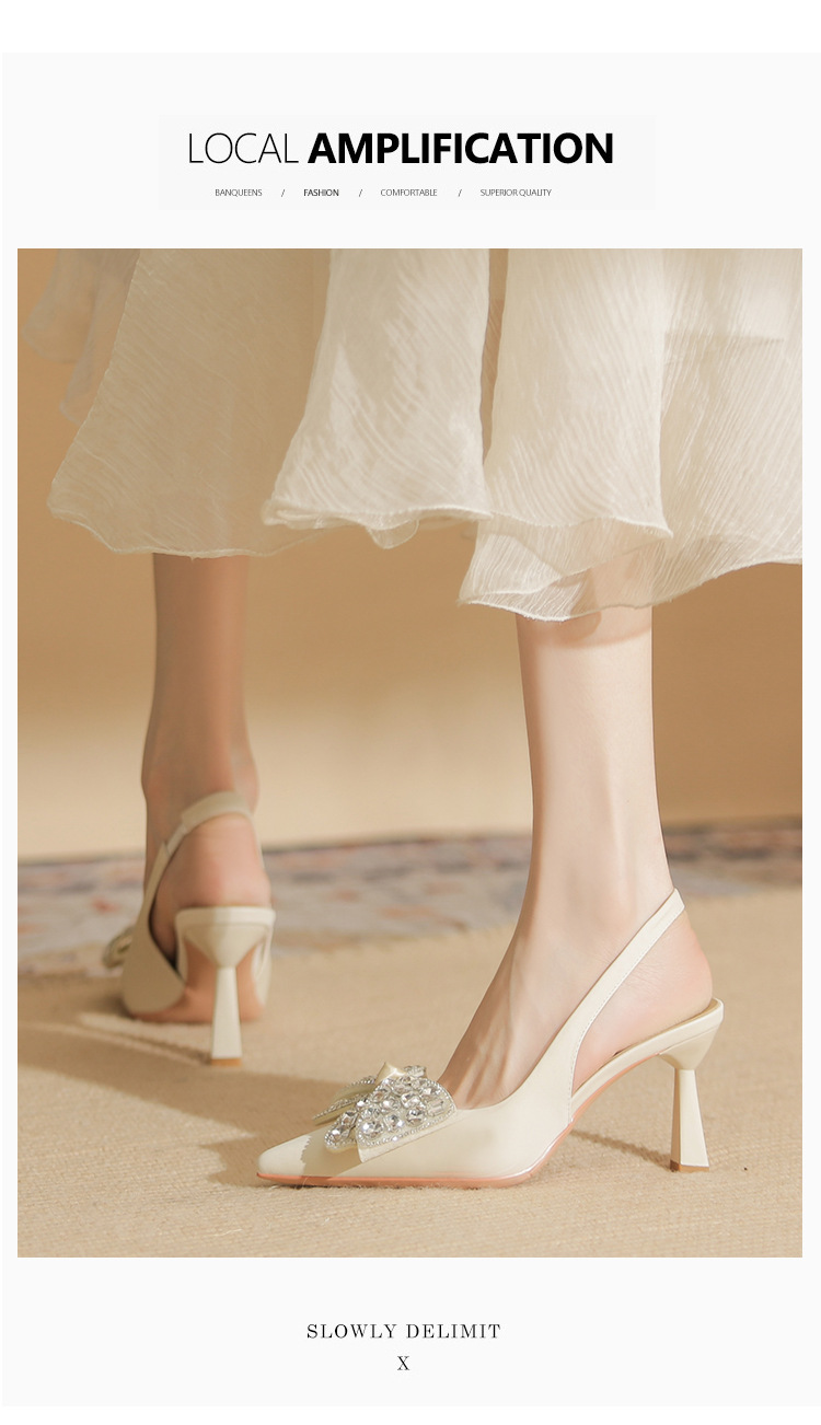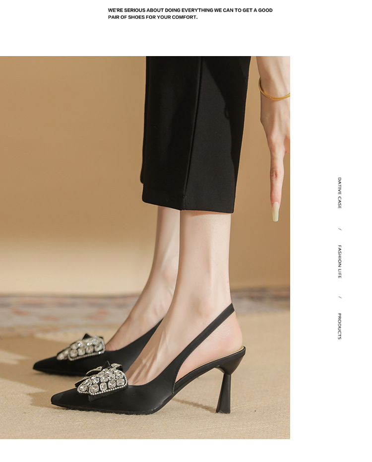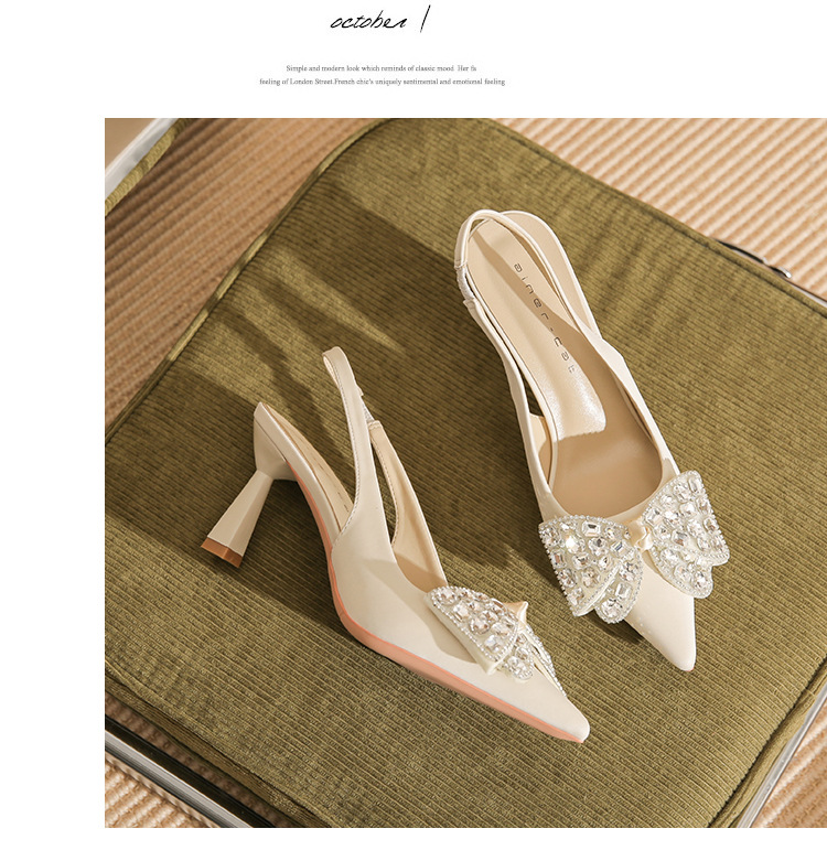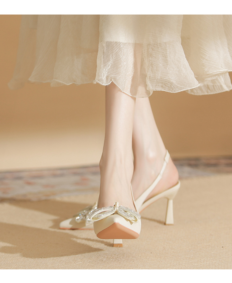 Đôi giày cao gót này có phần mũi nhọn và thiết kế hở gót, tạo nên vẻ thanh thoát. Điểm nhấn là nơ kết hợp đá lấp lánh ở phía trước, thêm phần nữ tính. Gót nhọn vừa phải giúp tôn dáng. Bạn có thể dễ dàng phối cùng váy hoặc quần tây để đi làm, dự tiệc hay những dịp gặp mặt. Chất liệu da mềm mại mang lại cảm giác dễ chịu khi mang. | Tên sản phẩm: Giày Cao Gót Nữ Thắt Nơ Bướm Gắn Đá Mũi Nhọn Gót Nhọn - Giày Dép Nữ | Mã sản phẩm: K2917 - Giá: 980.000đ | Mã nhà sản xuất: HUDS-G03Hình ảnh sản phẩm