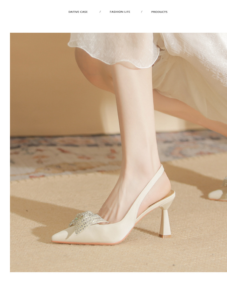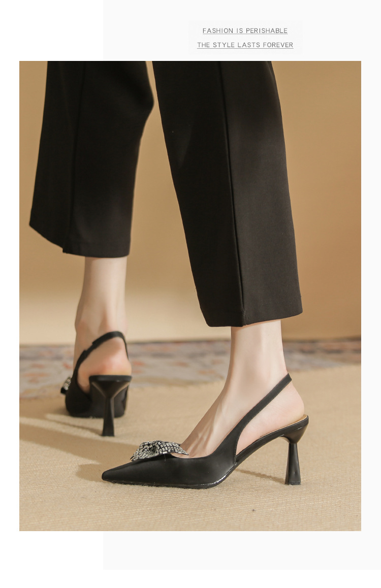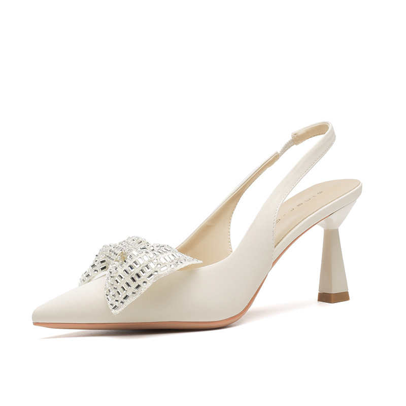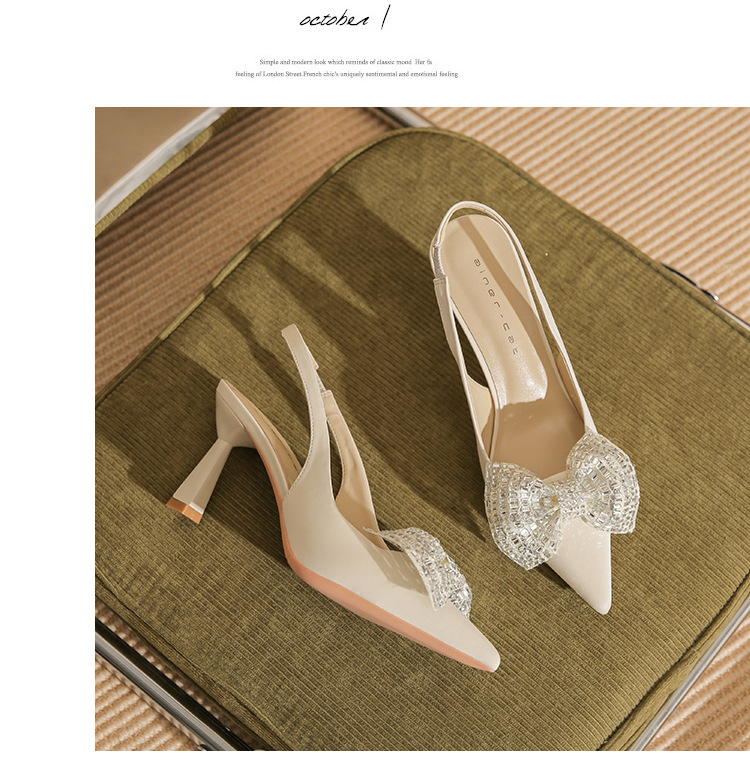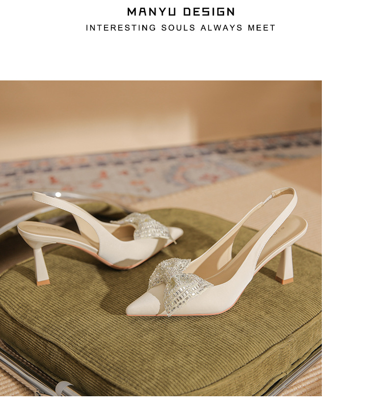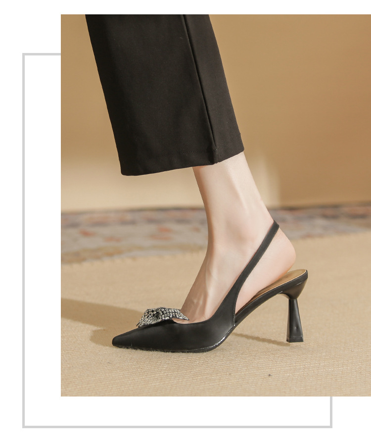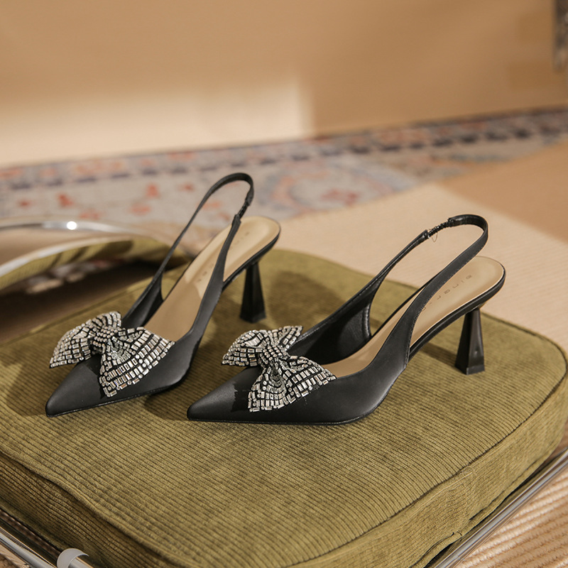 Đôi giày này có phần mũi nhọn và gót nhỏ, tạo dáng thanh thoát. Sản phẩm được làm từ chất liệu da mềm mại, ôm chân nhẹ nhàng. Phía trước có nơ đính kèm hạt ánh lấp lánh, kiểu dáng hở gót mang lại cảm giác thoải mái. Bạn có thể dễ dàng phối cùng nhiều loại trang phục khác nhau để đi làm, dự tiệc hoặc gặp mặt bạn bè. | Tên sản phẩm: Giày Cao Gót Nữ Thắt Nơ Bướm Gắn Đá Mũi Nhọn Gót Nhọn - Giày Dép Nữ | Mã sản phẩm: A7801 - Giá: 910.000đ | Mã nhà sản xuất: HUDS-G03Hình ảnh sản phẩm