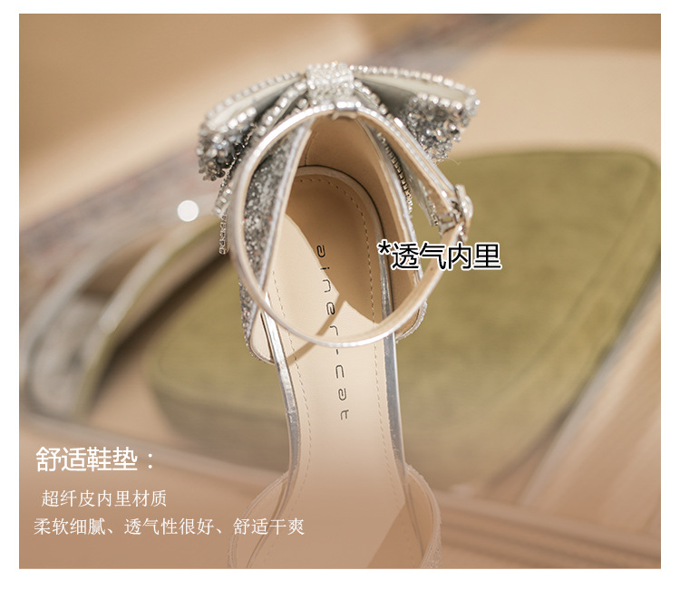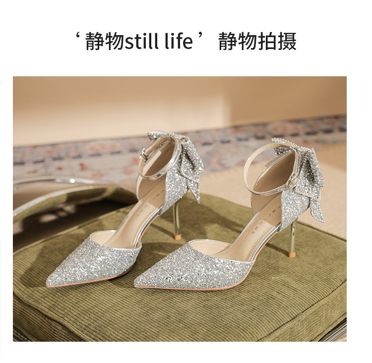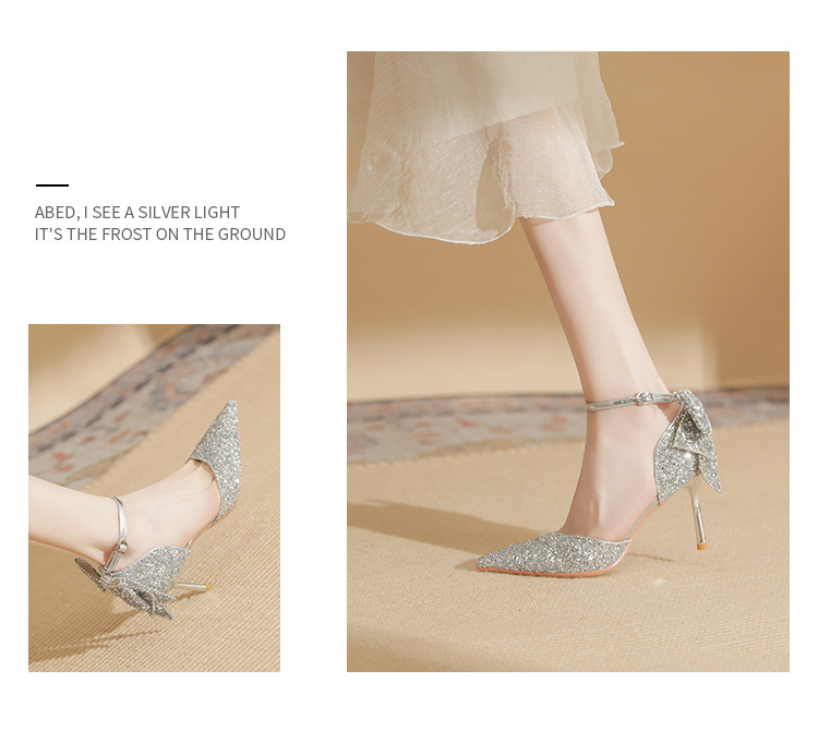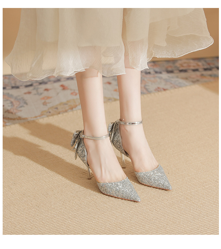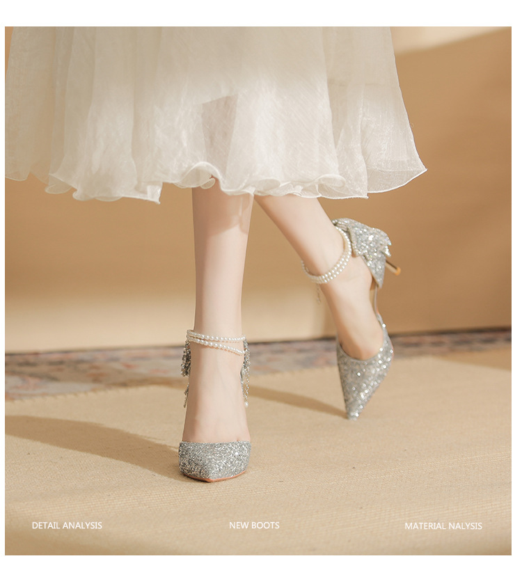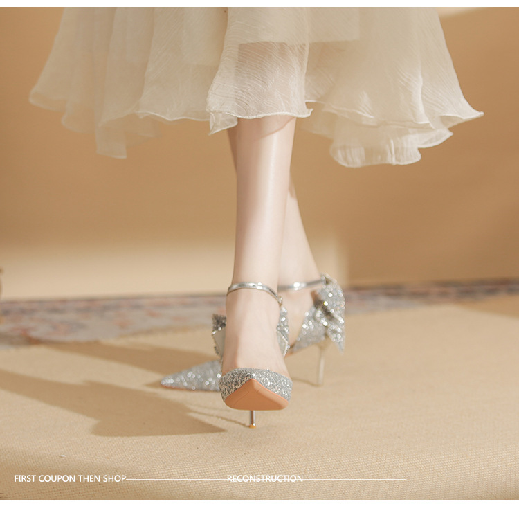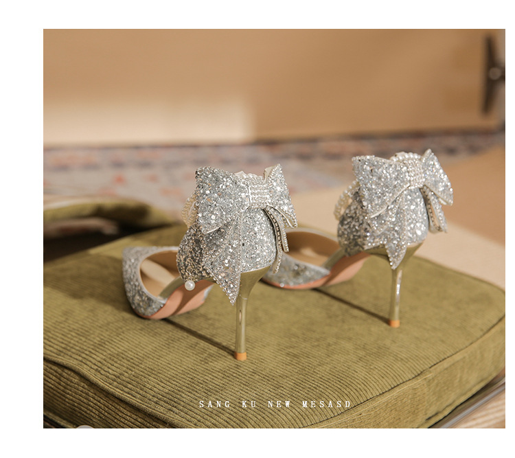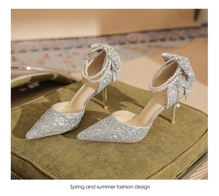Đôi giày này có phần mũi nhọn và gót thanh mảnh, tạo dáng thanh lịch. Điểm nhấn là nơ kết hợp dây xích lấp lánh, có thể tháo rời để biến đổi thành hai kiểu mang khác nhau. Sản phẩm thích hợp để mang trong các dịp như tiệc cưới hay sự kiện. Bạn chỉ cần chọn cỡ giày phù hợp và kết hợp với trang phục để có vẻ ngoài ưng ý. | Tên sản phẩm: Giày Cao Gót Nữ Thắt Nơ Bướm Gắn Đá Mũi Nhọn Gót Nhọn Dùng Trong Lễ Cưới - Giày Dép Nữ | Mã sản phẩm: A1122 - Giá: 940.000đ | Mã nhà sản xuất: HUDS-G03Hình ảnh sản phẩm