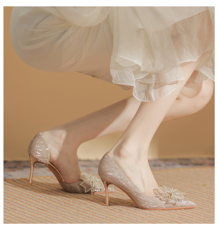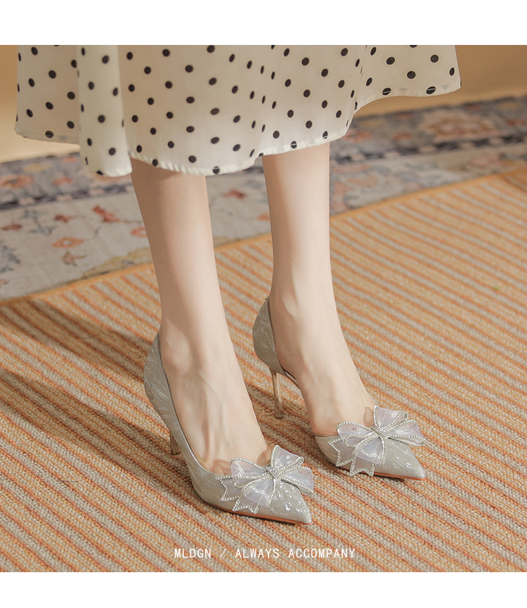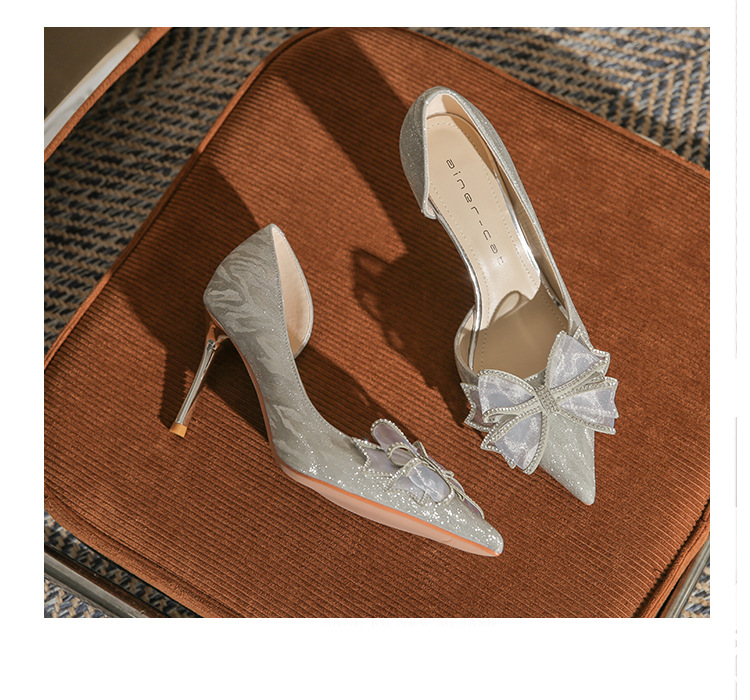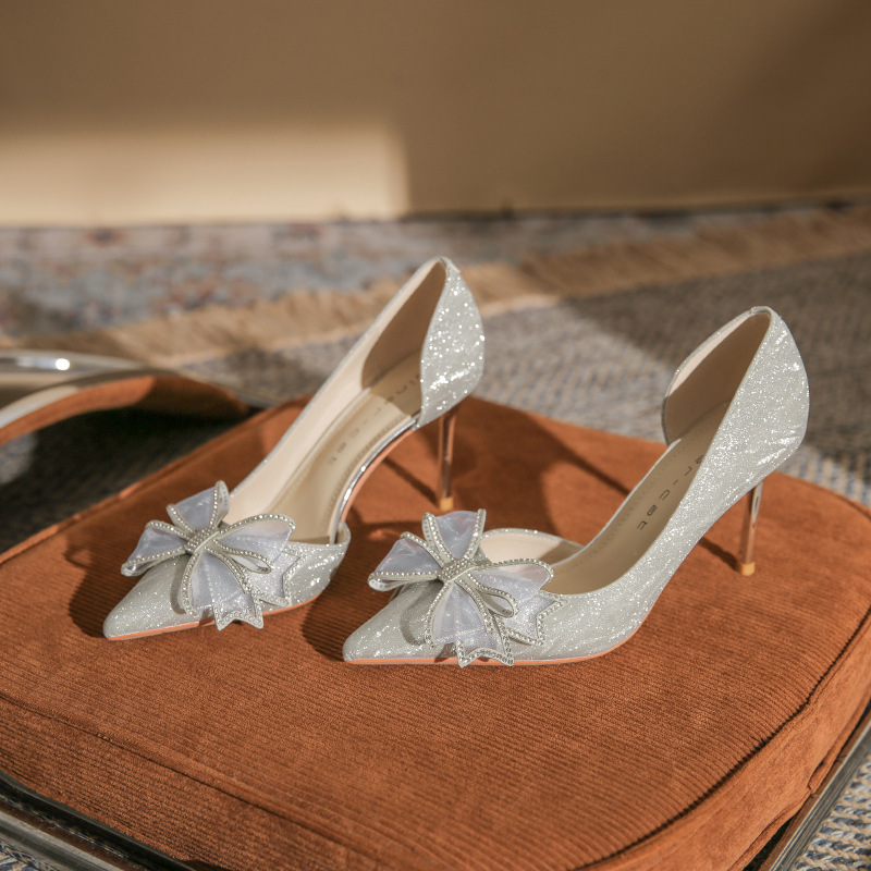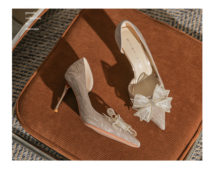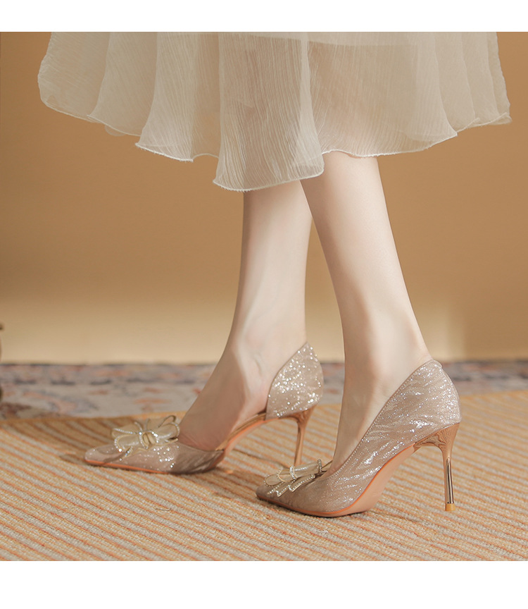 Giày cao gót nữ với mũi nhọn thanh lịch, điểm nhấn là nơ kết hợp đá lấp lánh tạo nên vẻ đẹp duyên dáng. Thiết kế gót nhọn vừa phải giúp tôn dáng, phần khoét eo bên hông mang đến nét thời trang hiện đại. Sản phẩm thích hợp cho các buổi tiệc, sự kiện hoặc ngày trọng đại. Khi sử dụng, nên chọn size phù hợp và kết hợp cùng trang phục dạ hội, đầm ôm body để tôn vẻ nữ tính. | Tên sản phẩm: Giày Cao Gót Nữ Thắt Nơ Bướm Gắn Đá Mũi Nhọn Gót Nhọn Dùng Trong Lễ Cưới - Giày Dép Nữ | Mã sản phẩm: A1227 - Giá: 890.000đ | Mã nhà sản xuất: HUDS-G03Hình ảnh sản phẩm