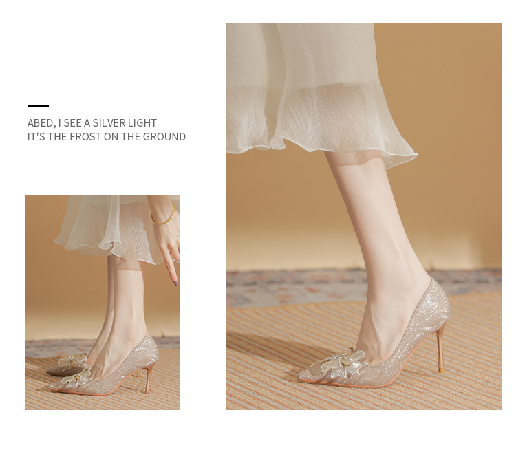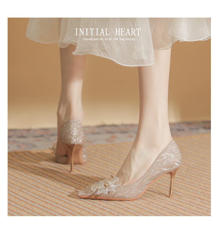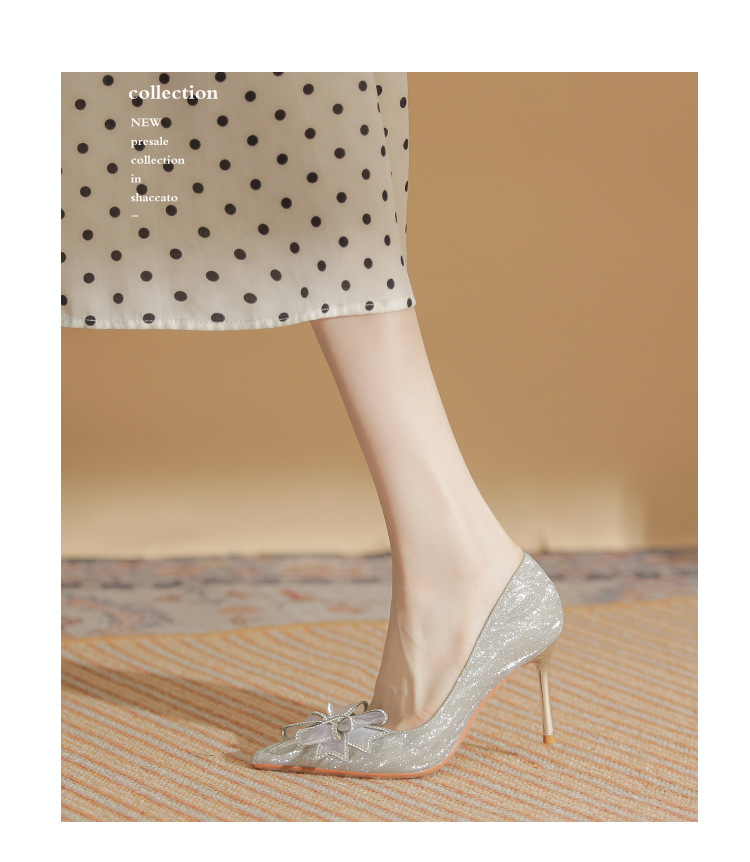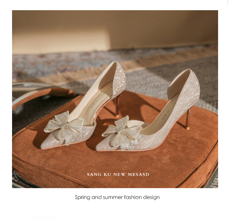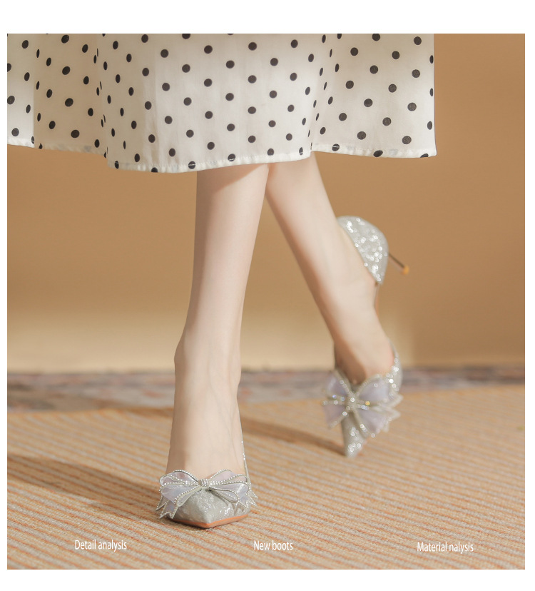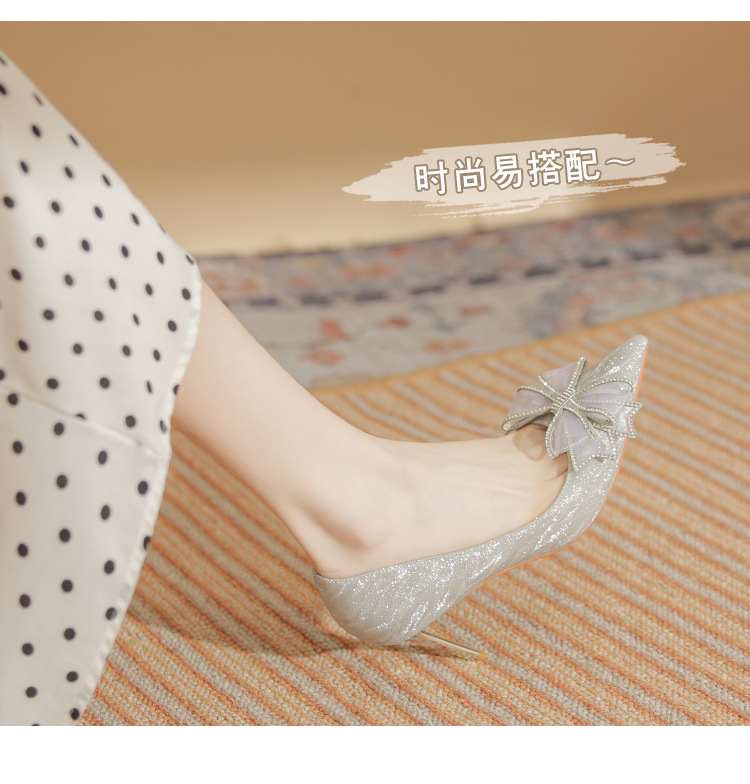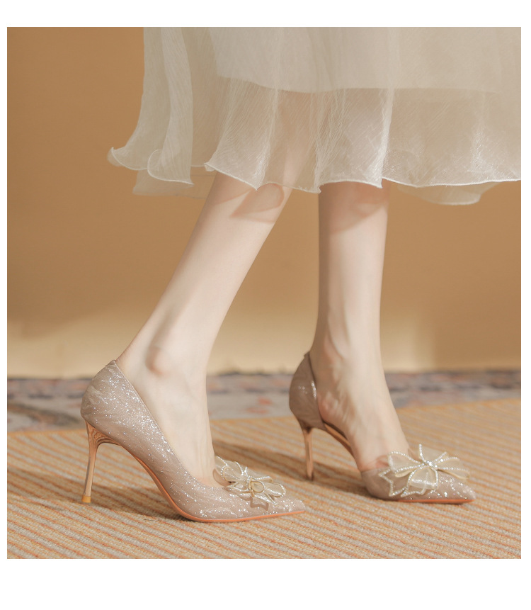 Giày cao gót nữ với mũi nhọn thanh lịch, điểm nhấn là nơ kết hợp đá lấp lánh tạo nên vẻ đẹp duyên dáng. Thiết kế gót nhọn vừa phải giúp tôn dáng, phần khoét eo bên hông mang đến nét thời trang hiện đại. Sản phẩm thích hợp cho các buổi tiệc, sự kiện hoặc ngày trọng đại. Khi sử dụng, nên chọn size phù hợp và kết hợp cùng trang phục dạ hội, đầm ôm body để tôn vẻ nữ tính. | Tên sản phẩm: Giày Cao Gót Nữ Thắt Nơ Bướm Gắn Đá Mũi Nhọn Gót Nhọn Dùng Trong Lễ Cưới - Giày Dép Nữ | Mã sản phẩm: A1227 - Giá: 890.000đ | Mã nhà sản xuất: HUDS-G03Hình ảnh sản phẩm