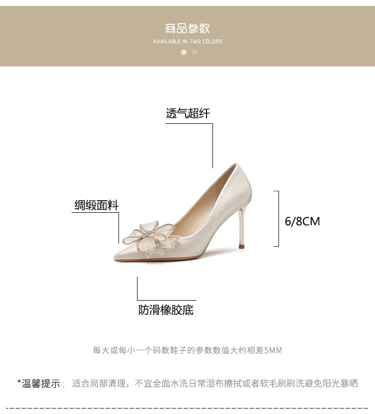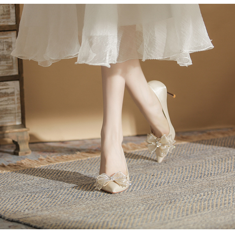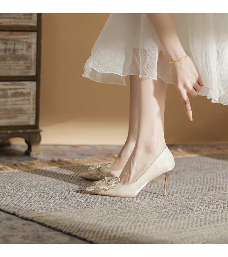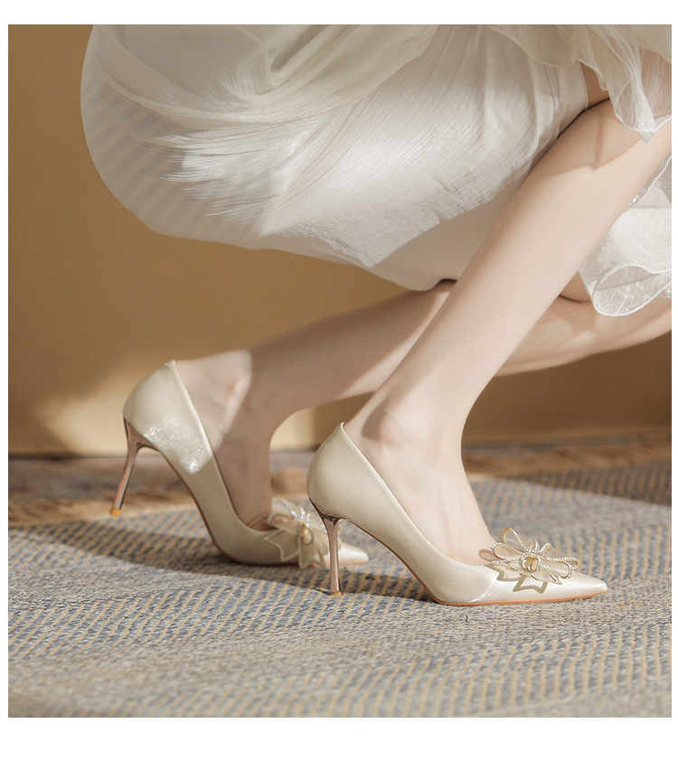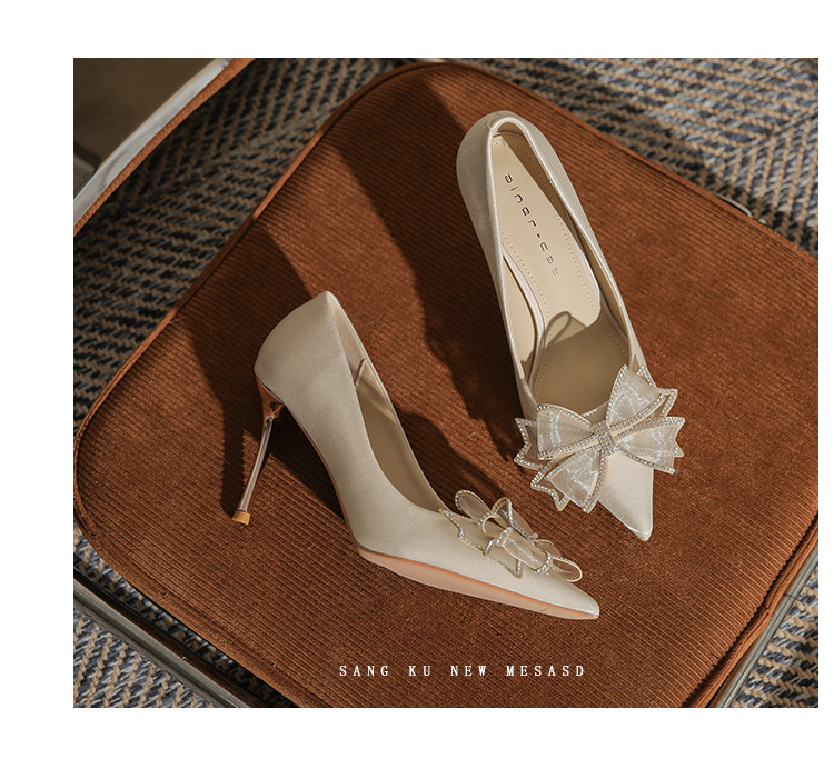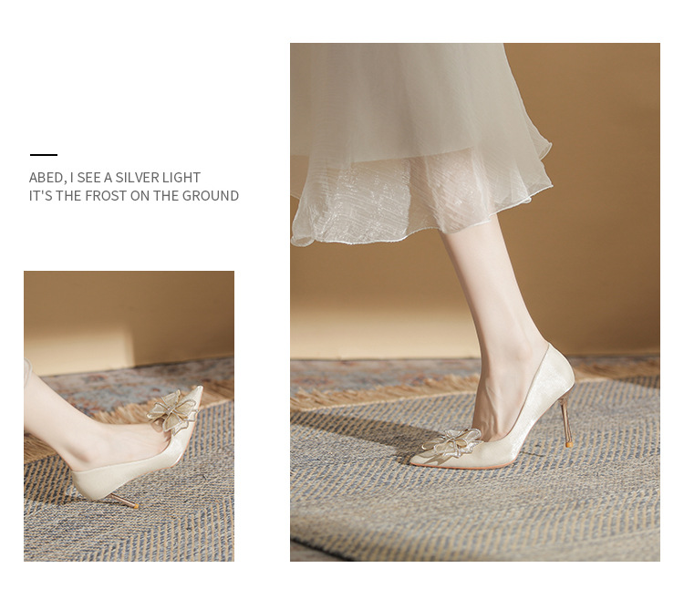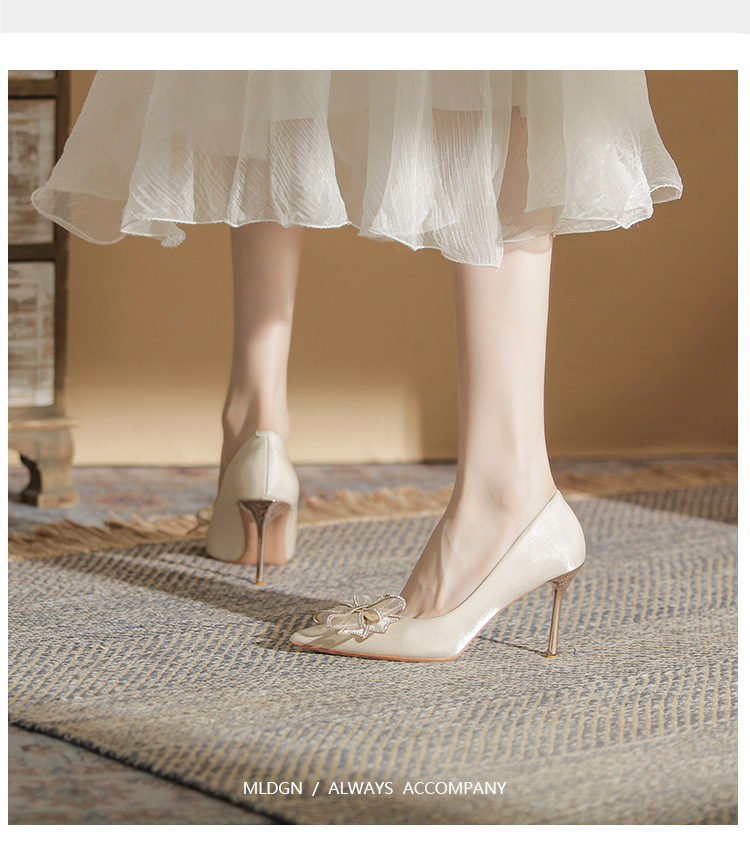 Đôi giày này mang phong cách thời trang Pháp, dành riêng cho các cô dâu trong ngày trọng đại. Mũi giày nhọn cùng gót thanh mảnh tôn lên vẻ duyên dáng. Điểm nhấn là nơ kết hợp đá lấp lánh tinh tế ở phía trước. Sản phẩm thích hợp để mang trong các tiệc cưới hoặc sự kiện. Bạn có thể phối cùng váy dài hoặc đầm dự tiệc để tạo nên vẻ ngoài hoàn chỉnh. | Tên sản phẩm: Giày Cao Gót Nữ Thắt Nơ Bướm Gắn Đá Mũi Nhọn Gót Nhọn Dùng Trong Lễ Cưới - Giày Dép Nữ | Mã sản phẩm: A1385 - Giá: 830.000đ | Mã nhà sản xuất: HUDS-G03Hình ảnh sản phẩm