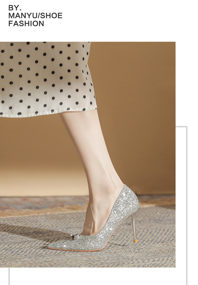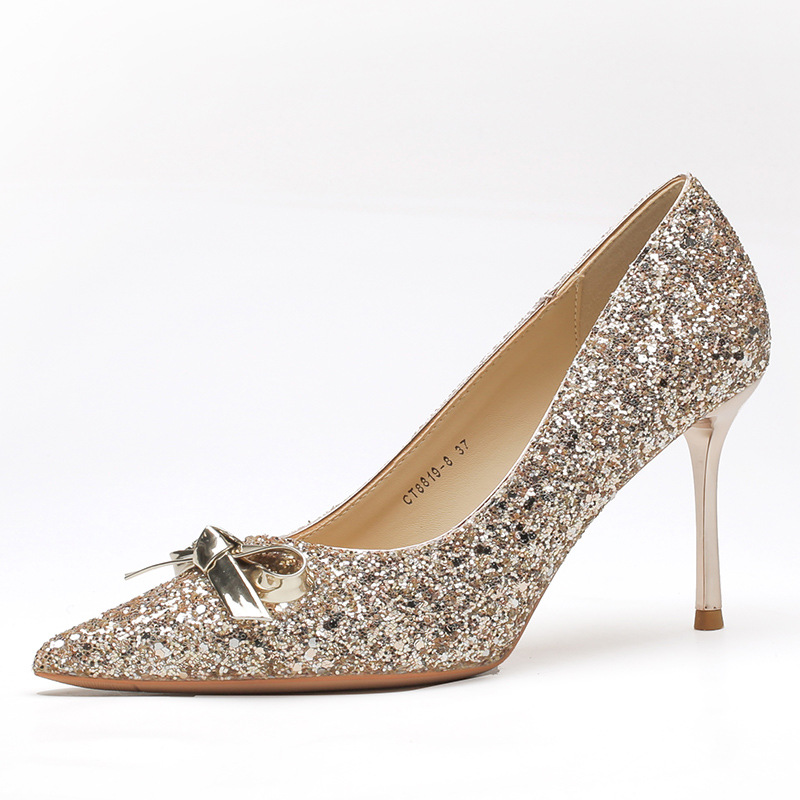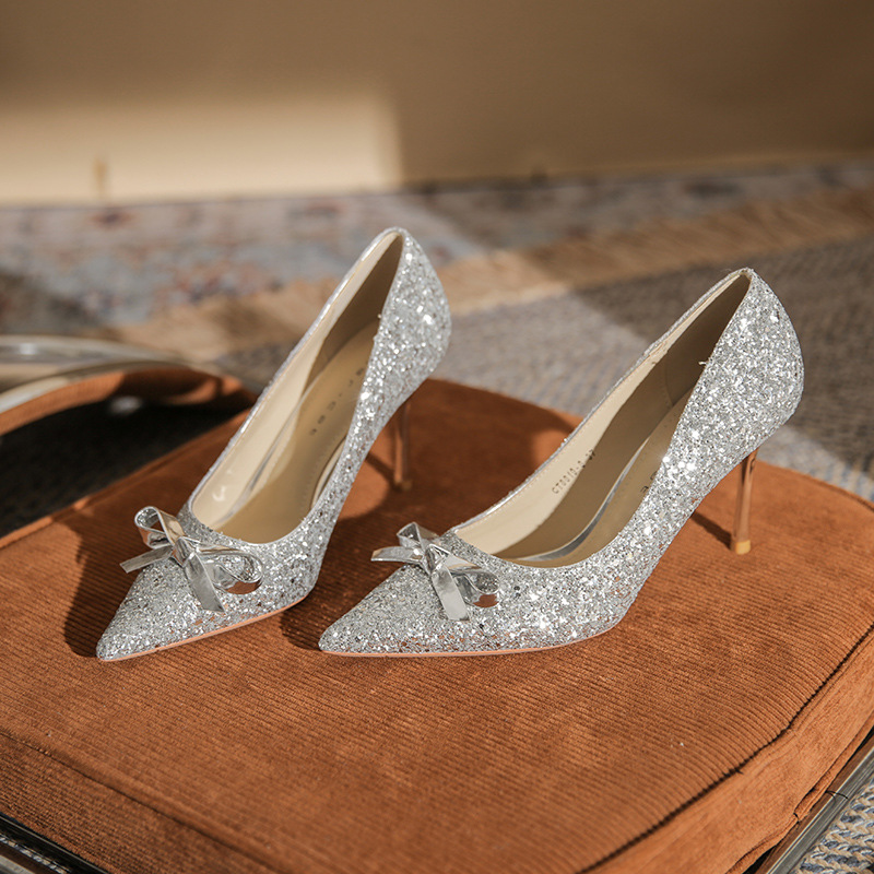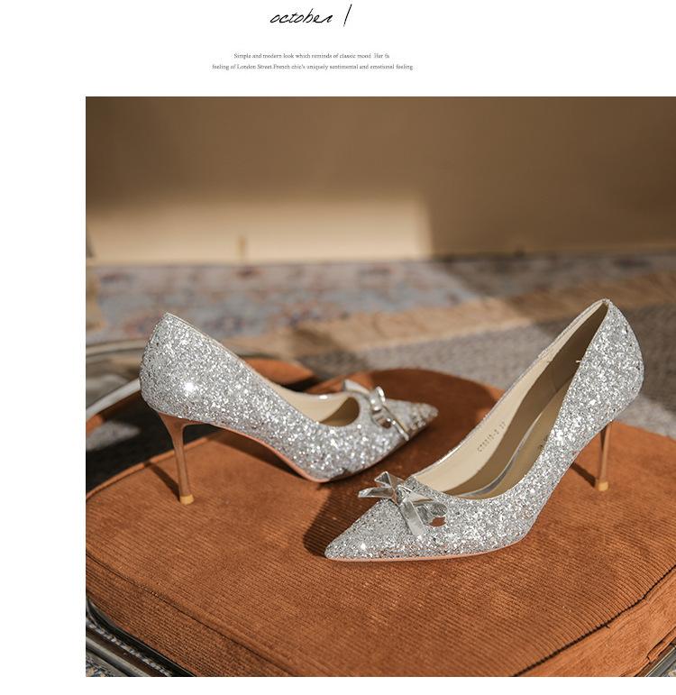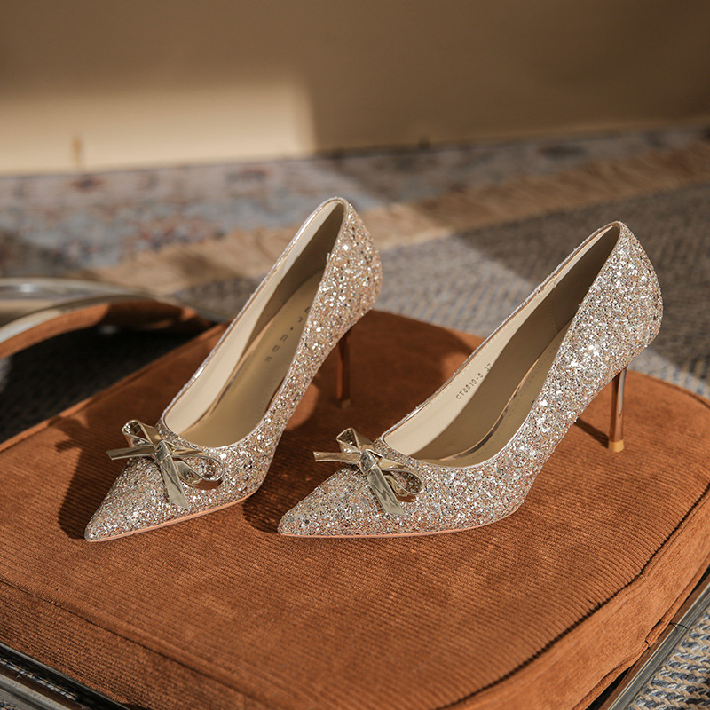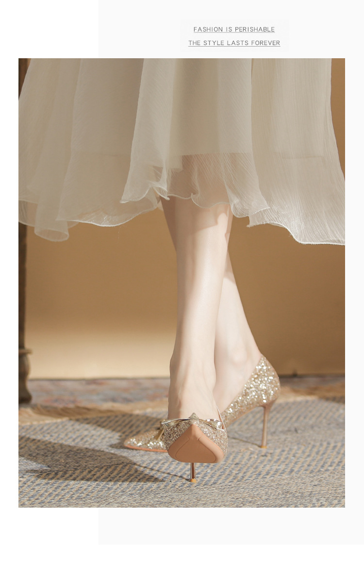 Đôi giày này có phần gót thon và mũi nhọn, tạo dáng thanh thoát. Kiểu dáng cổ thấp phù hợp cho các dịp như cô dâu trong ngày cưới. Trên thân giày được điểm xuyết những chi tiết óng ánh và nơ nhỏ xinh, thêm phần nổi bật. Sản phẩm dễ dàng phối cùng nhiều trang phục khác nhau. Bạn chỉ cần xỏ chân vào và cài nơ hoặc khóa cho vừa vặn là có thể sử dụng ngay. | Tên sản phẩm: Giày Cao Gót Nữ Thắt Nơ Bướm Mũi Nhọn Gót Nhọn Dùng Trong Lễ Cưới - Giày Dép Nữ | Mã sản phẩm: A1380 - Giá: 800.000đ | Mã nhà sản xuất: HUDS-G02Hình ảnh sản phẩm