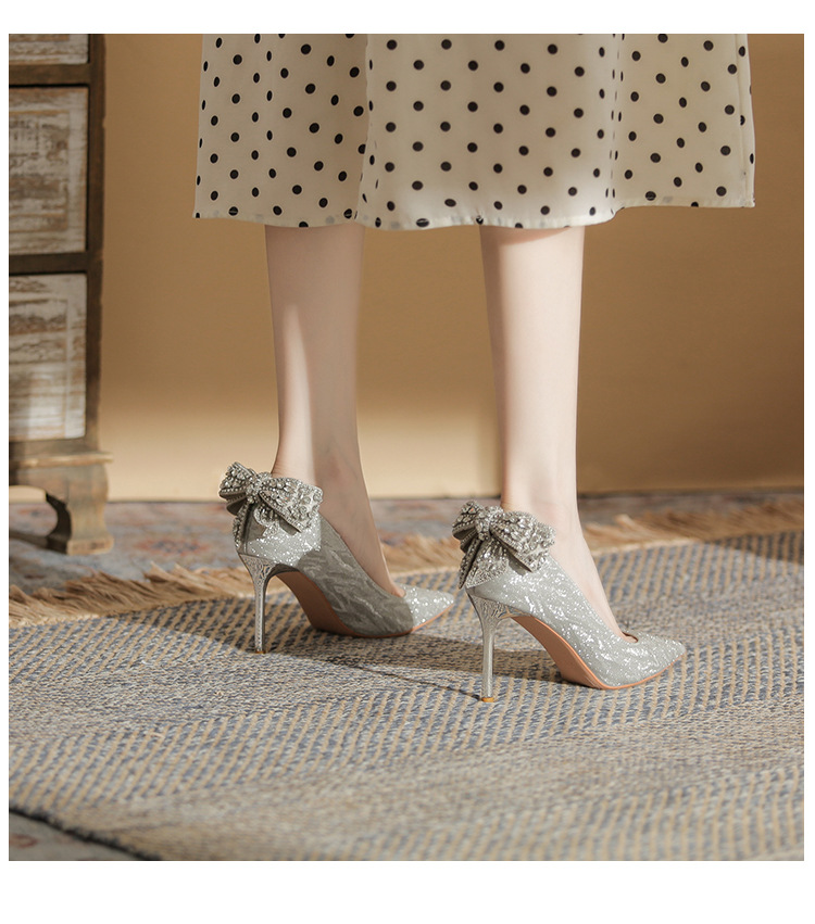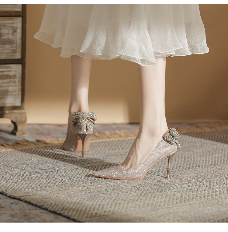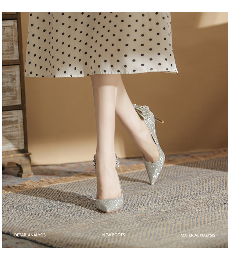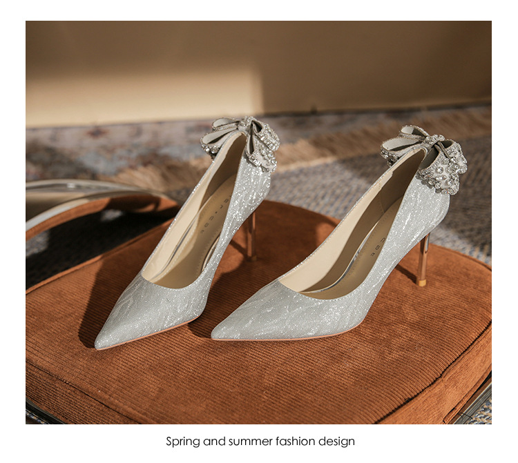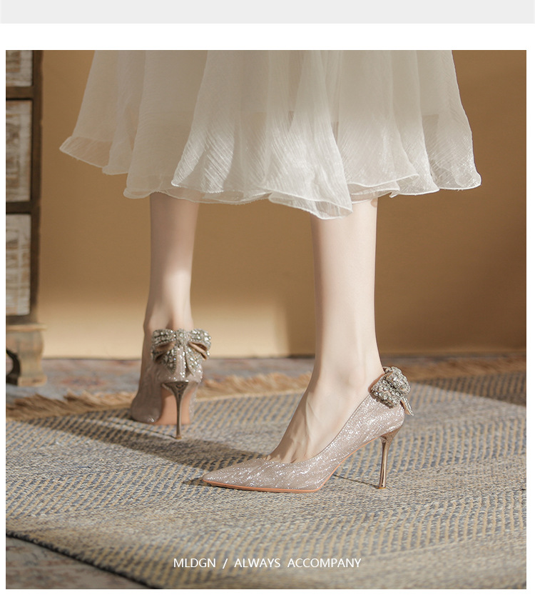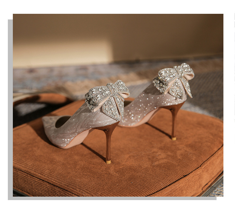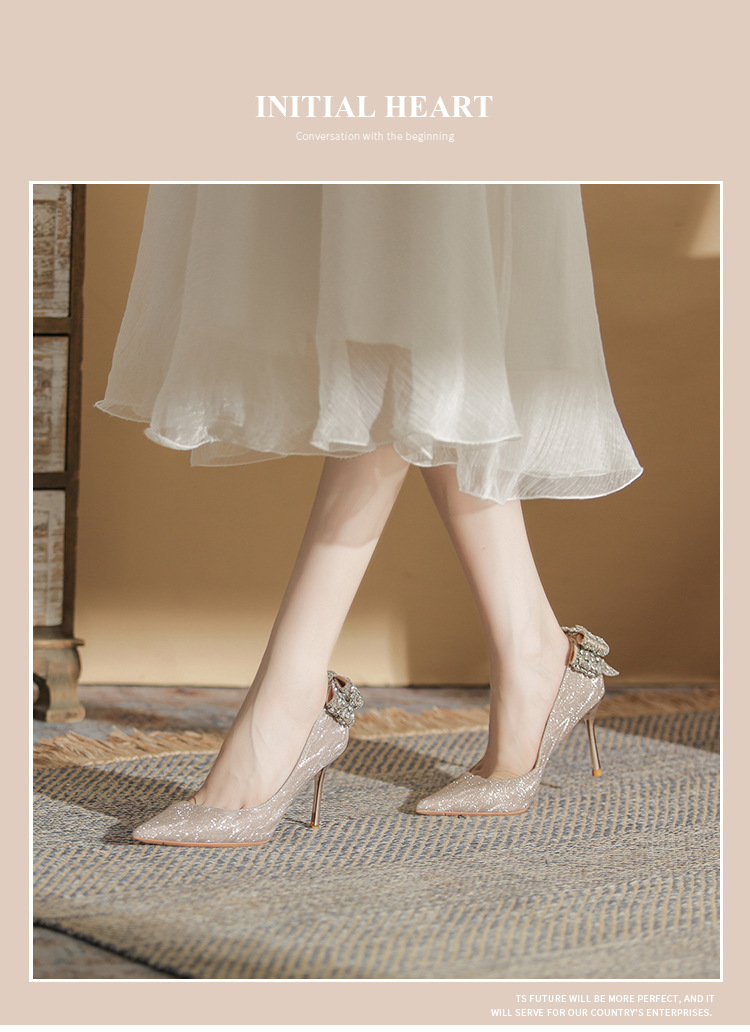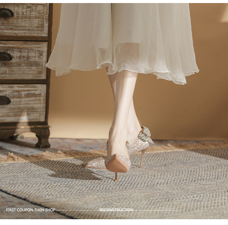 Đôi giày này có phần gót nhọn thanh thoát, kiểu dáng mũi nhọn và cổ thấp tạo cảm giác duyên dáng. Điểm nhấn là chiếc nơ xinh xắn được trang trí phía trước. Chất liệu trong suốt như pha lê ở gót chân mang đến vẻ đẹp tinh tế, phù hợp cho các dịp đặc biệt. Bạn có thể kết hợp cùng váy dự tiệc hoặc trang phục công sở để tạo điểm nhấn. Khi sử dụng, nên chọn size vừa vặn và đi những bước ngắn để làm quen với gót. | Tên sản phẩm: Giày Cao Gót Nữ Thắt Nơ Bướm Mũi Nhọn Gót Nhọn Dùng Trong Lễ Cưới - Giày Dép Nữ | Mã sản phẩm: A1391 - Giá: 1.020.000đ | Mã nhà sản xuất: HUDS-G03Hình ảnh sản phẩm