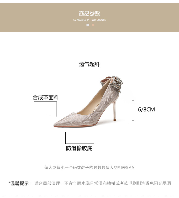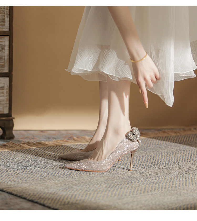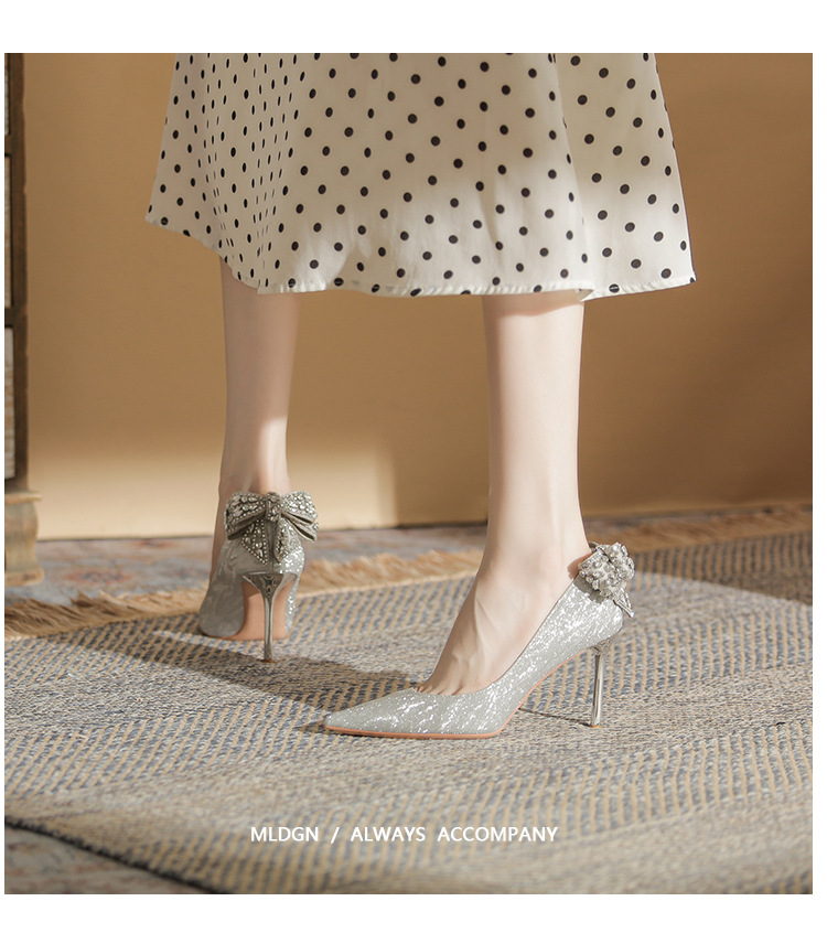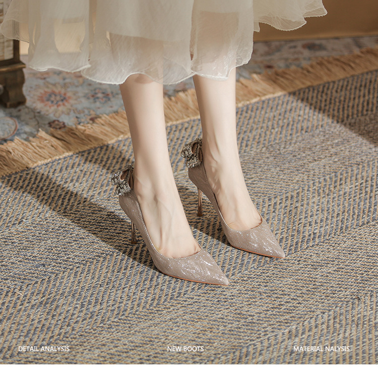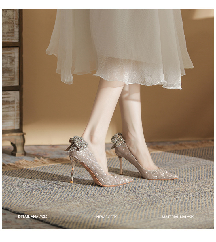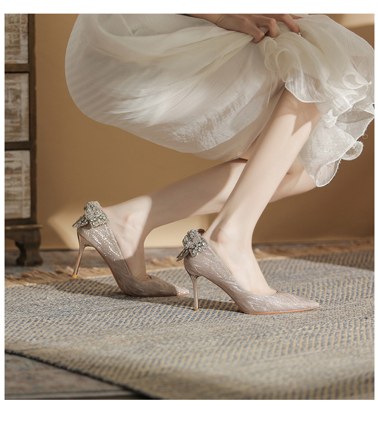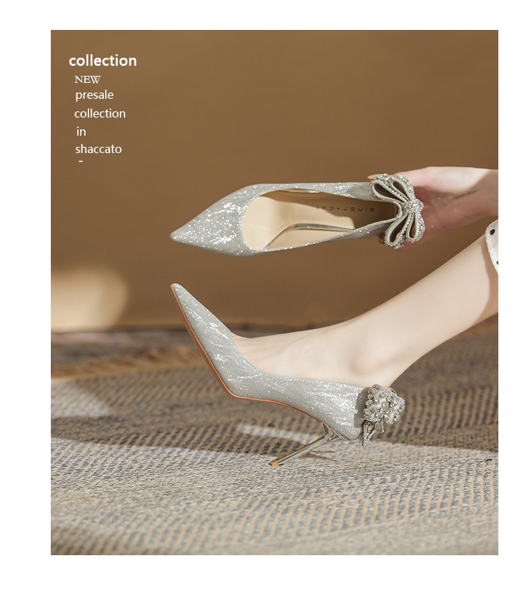 Đôi giày này có phần gót nhọn thanh thoát, kiểu dáng mũi nhọn và cổ thấp tạo cảm giác duyên dáng. Điểm nhấn là chiếc nơ xinh xắn được trang trí phía trước. Chất liệu trong suốt như pha lê ở gót chân mang đến vẻ đẹp tinh tế, phù hợp cho các dịp đặc biệt. Bạn có thể kết hợp cùng váy dự tiệc hoặc trang phục công sở để tạo điểm nhấn. Khi sử dụng, nên chọn size vừa vặn và đi những bước ngắn để làm quen với gót. | Tên sản phẩm: Giày Cao Gót Nữ Thắt Nơ Bướm Mũi Nhọn Gót Nhọn Dùng Trong Lễ Cưới - Giày Dép Nữ | Mã sản phẩm: A1391 - Giá: 1.020.000đ | Mã nhà sản xuất: HUDS-G03Hình ảnh sản phẩm