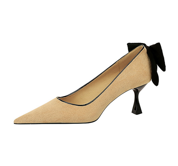 Đôi giày này có phần mũi nhọn và cổ thấp, tạo nên vẻ thanh lịch. Form giày ôm chân với phần gót vừa phải, giúp bạn di chuyển thoải mái. Chất liệu bề mặt mềm mại kết hợp điểm nhấn là nơ trang trí phía sau. Kiểu dáng phù hợp để đi làm hoặc dự tiệc. Bạn có thể phối cùng nhiều loại trang phục khác nhau để tạo điểm nhấn. | Tên sản phẩm: Giày Cao Gót Nữ Thắt Nơ Bướm Mũi Nhọn Gót Nhọn Phong Cách Hàn Quốc - Giày Dép Nữ | Mã sản phẩm: L0072 - Giá: 640.000đ | Mã nhà sản xuất: PITYIN-G02Hình ảnh sản phẩm