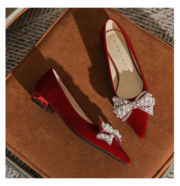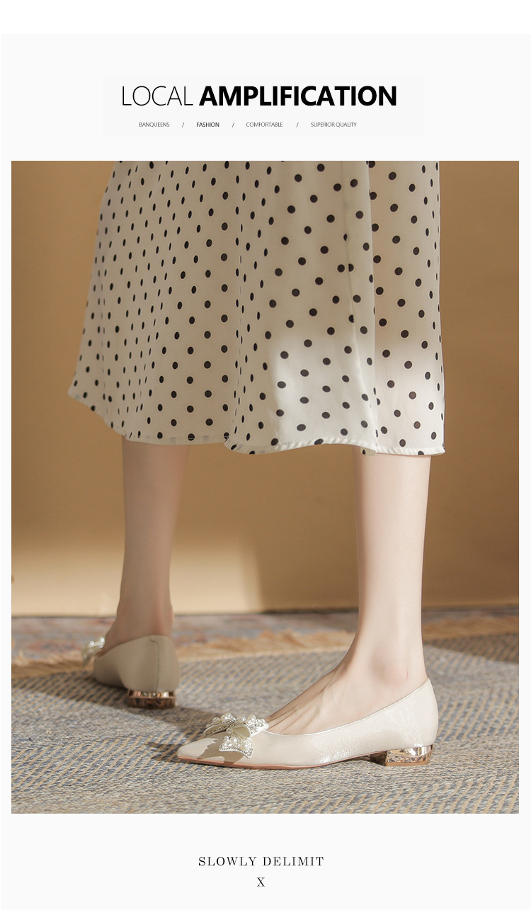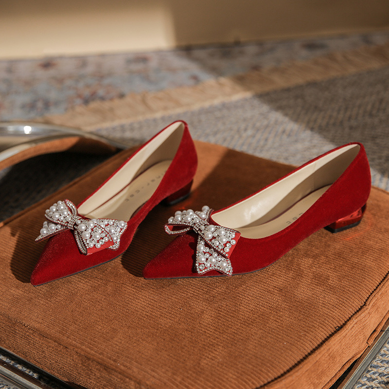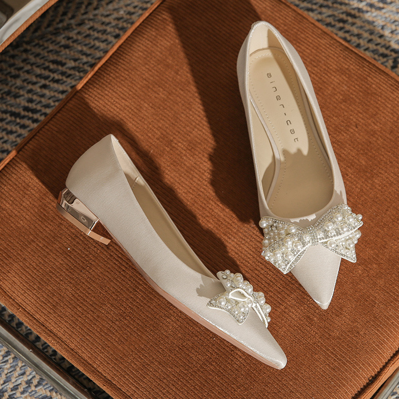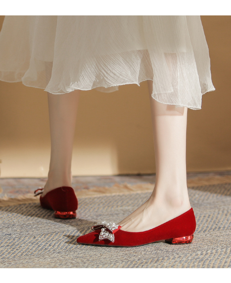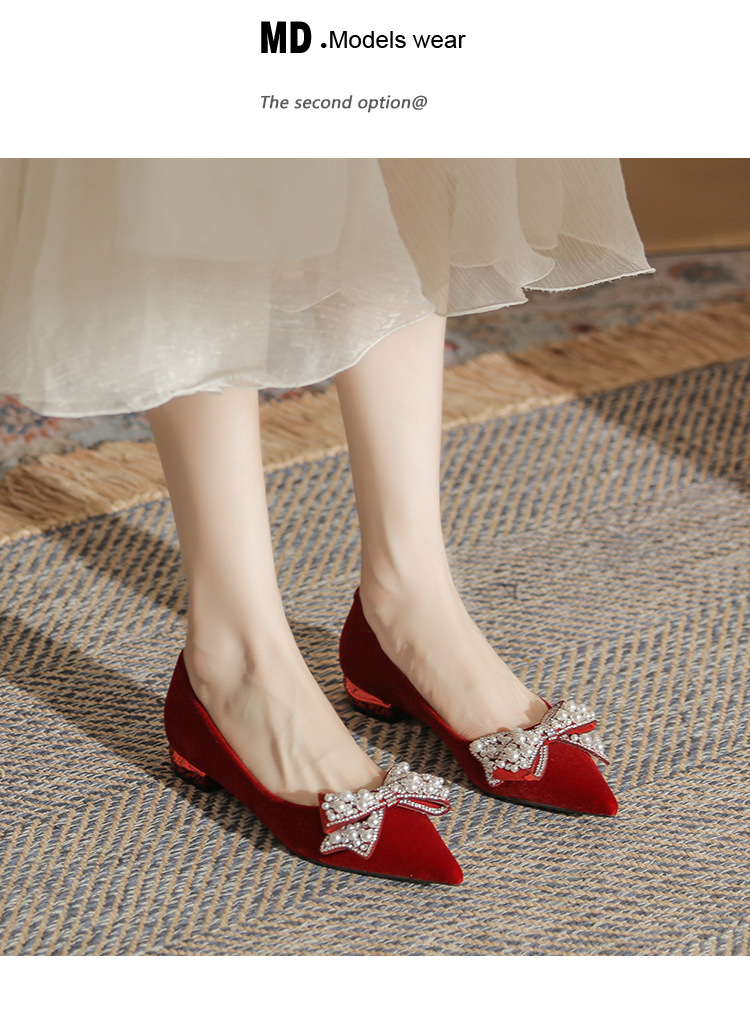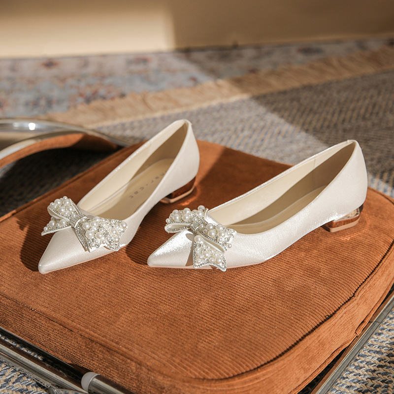 Đôi giày đế thấp dành cho cô dâu với phần mũi nhọn thanh thoát. Form giày ôm chân vừa vặn, kết hợp cùng đế bằng vững chãi giúp nâng đỡ bàn chân suốt ngày dài. Điểm nhấn là chiếc nơ xinh xắn ở phía trước, tạo nét duyên dáng và dịu dàng. Sản phẩm phù hợp cho các buổi tiệc, sự kiện quan trọng. Để sử dụng, bạn chỉ cần xỏ chân vào và điều chỉnh dây cho vừa vặn. | Tên sản phẩm: Giày Cao Gót Nữ Thắt Nơ Bướm Mũi Nhọn Gót Vuông Dùng Trong Lễ Cưới - Giày Dép Nữ | Mã sản phẩm: A1313 - Giá: 890.000đ | Mã nhà sản xuất: HUDS-G03Hình ảnh sản phẩm